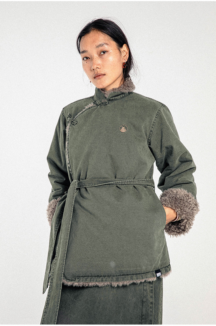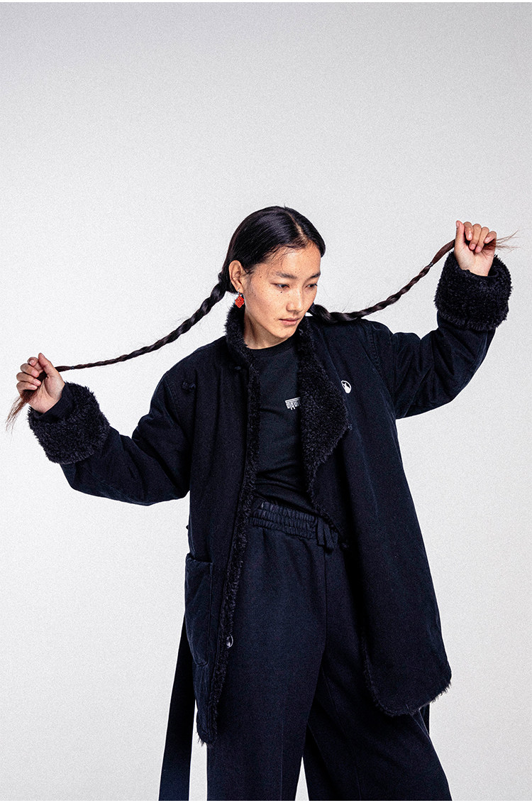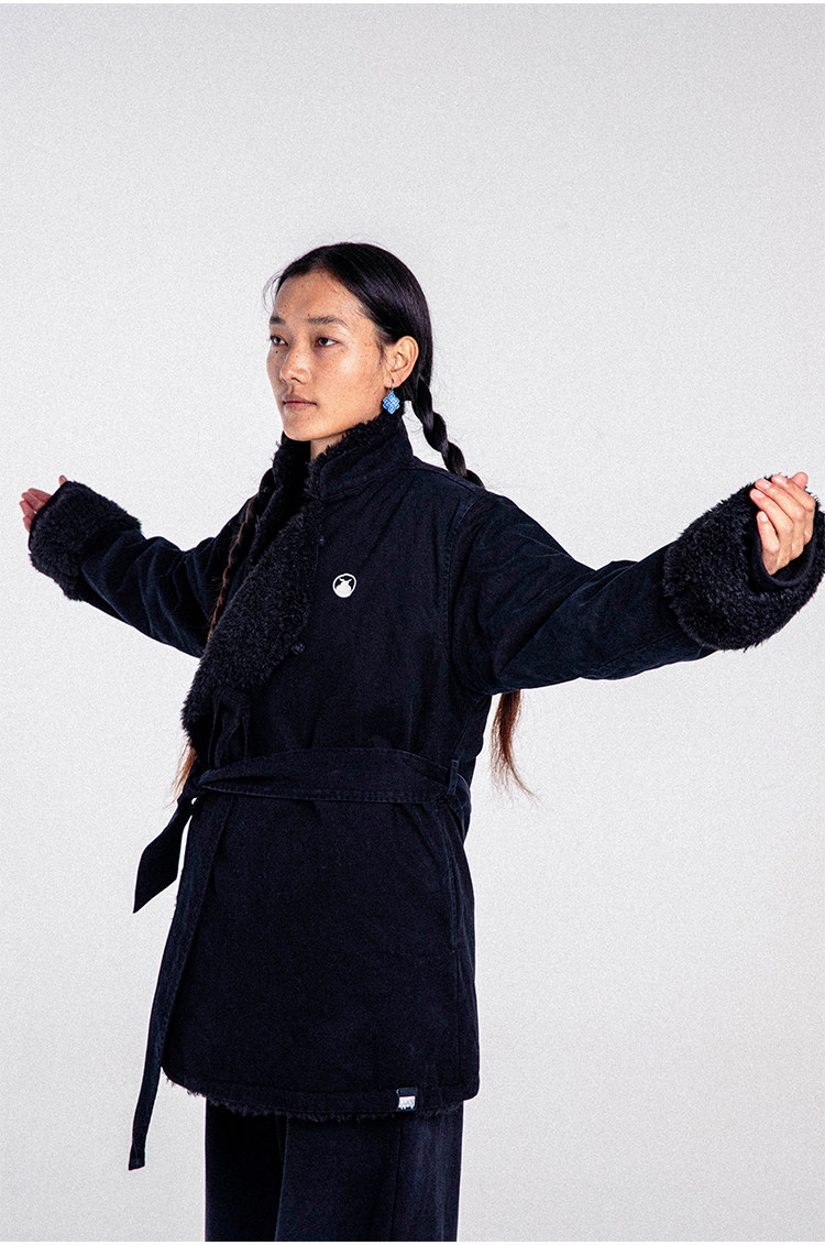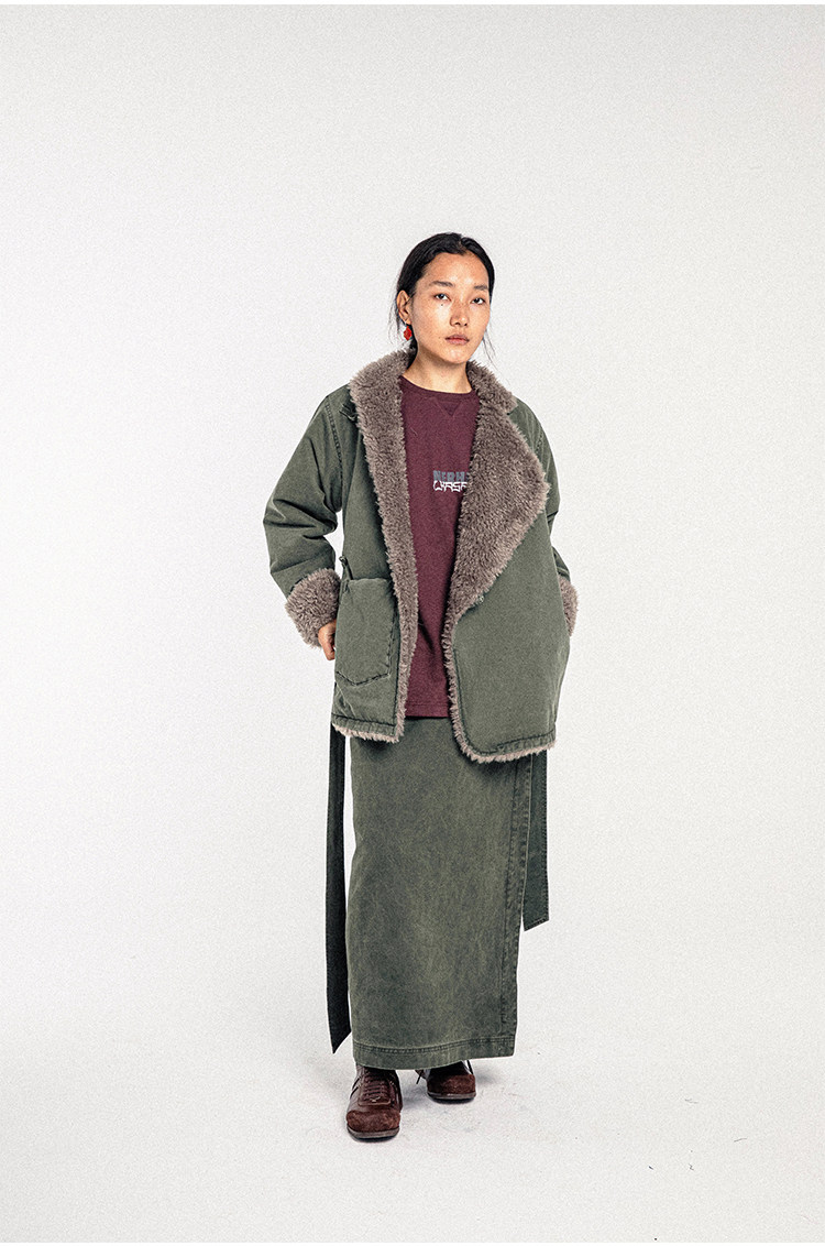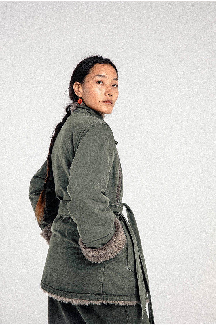 圣山服饰原创设计中长版藏式斜襟绑带毛绒秋冬潮流时装外套通勤 [Original Page Link]