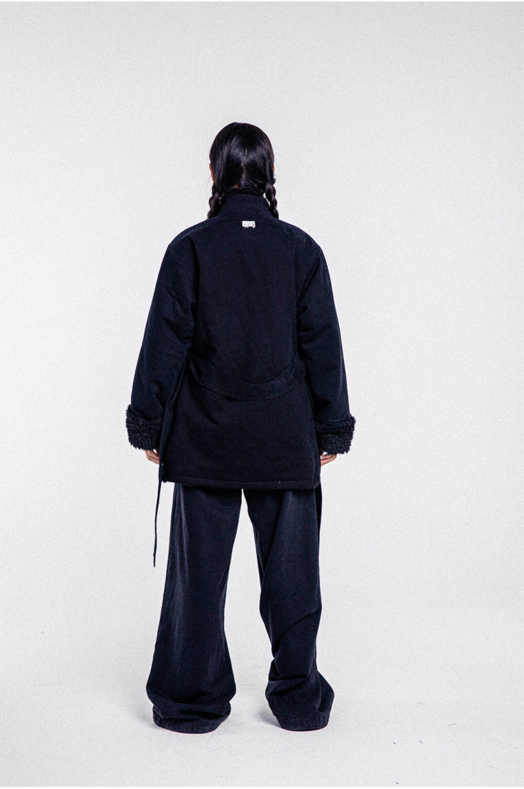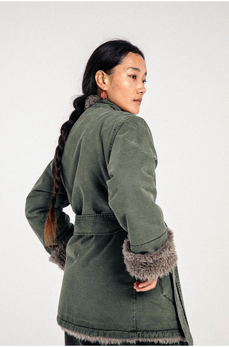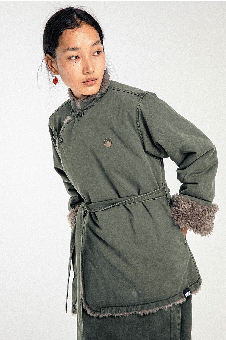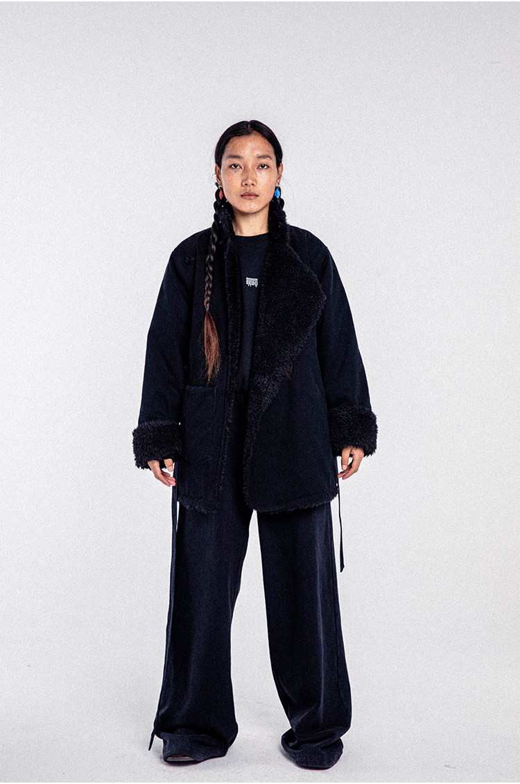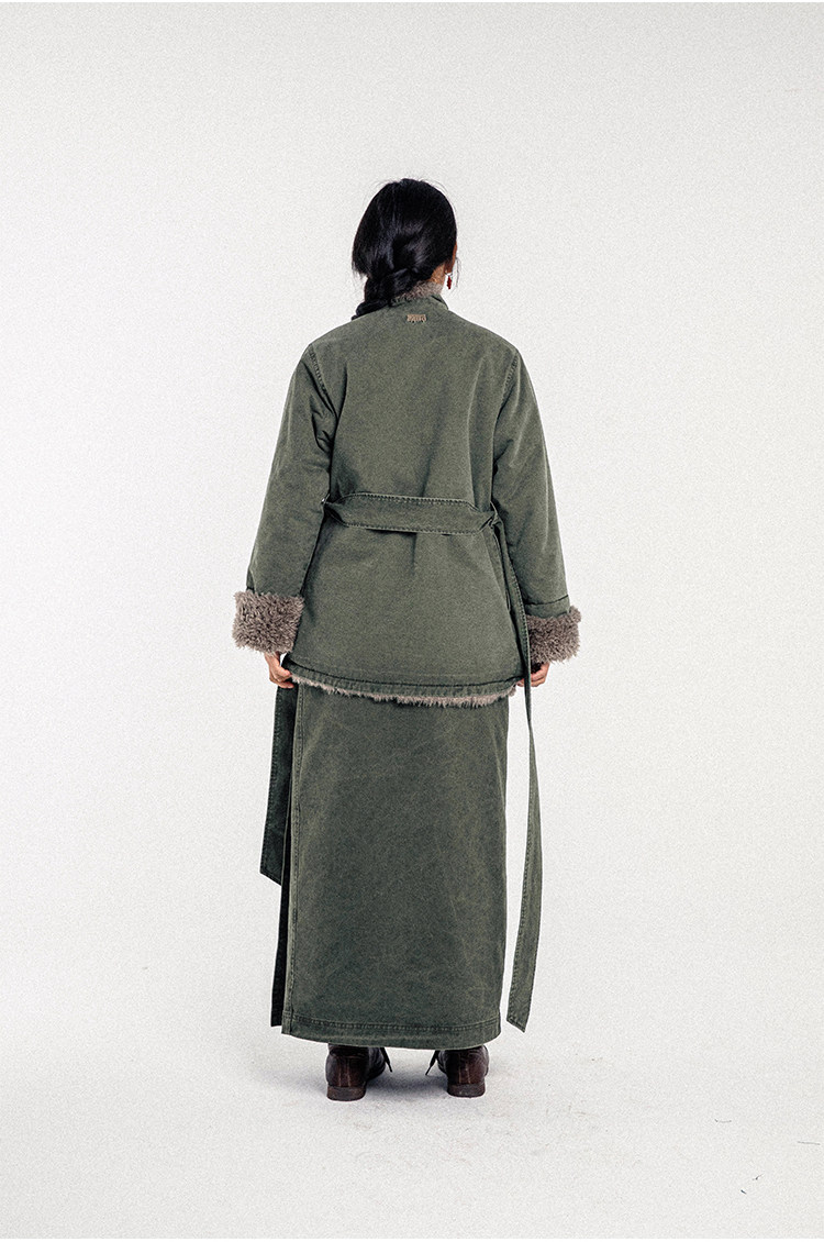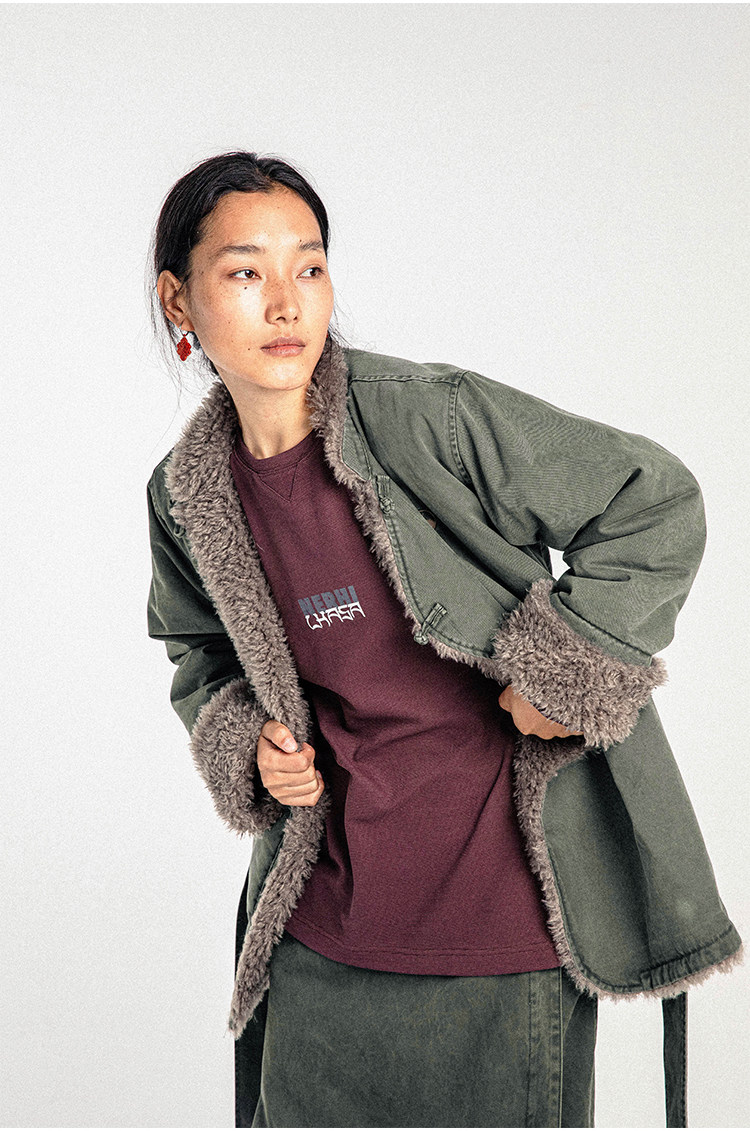 圣山服饰原创设计中长版藏式斜襟绑带毛绒秋冬潮流时装外套通勤 [Original Page Link]