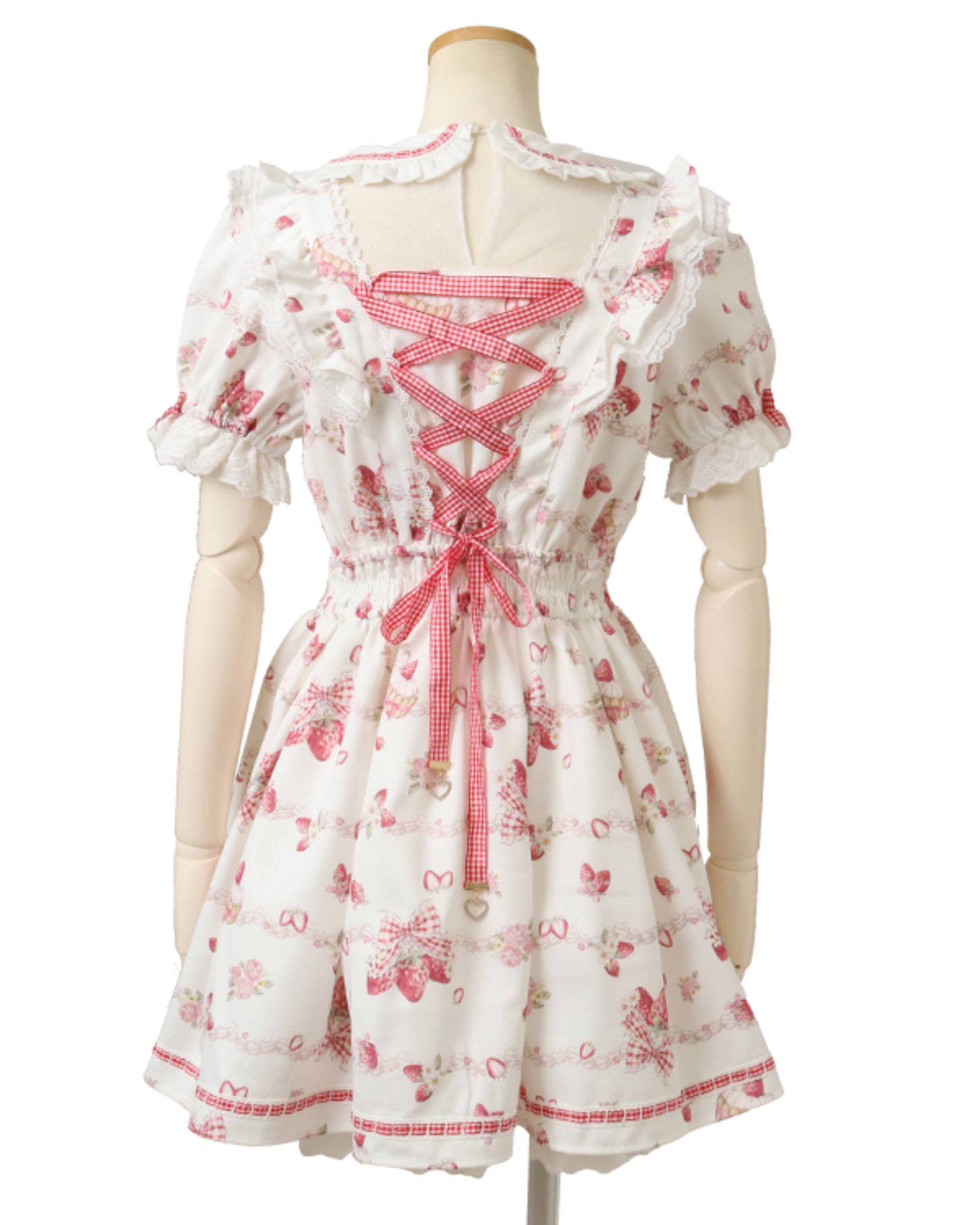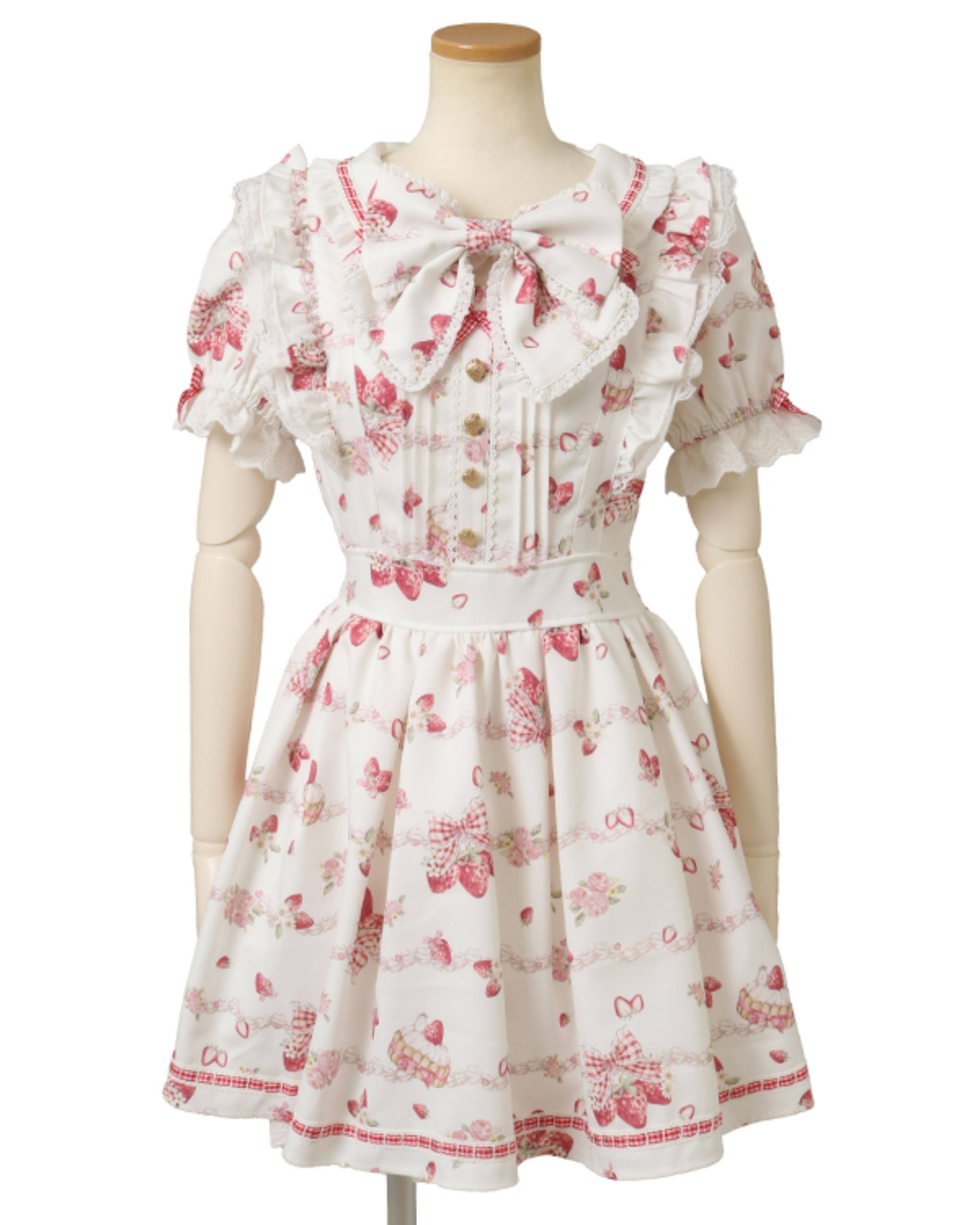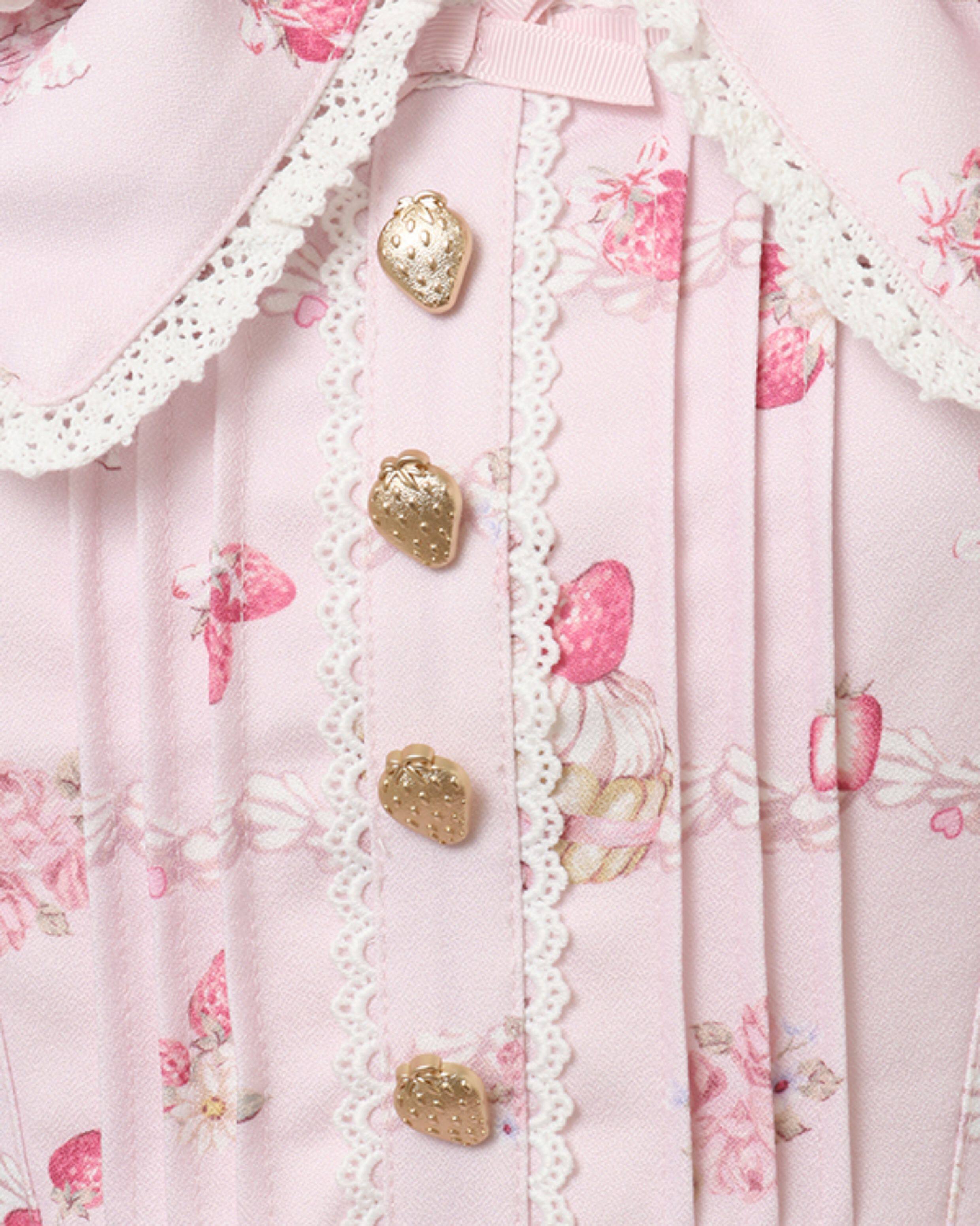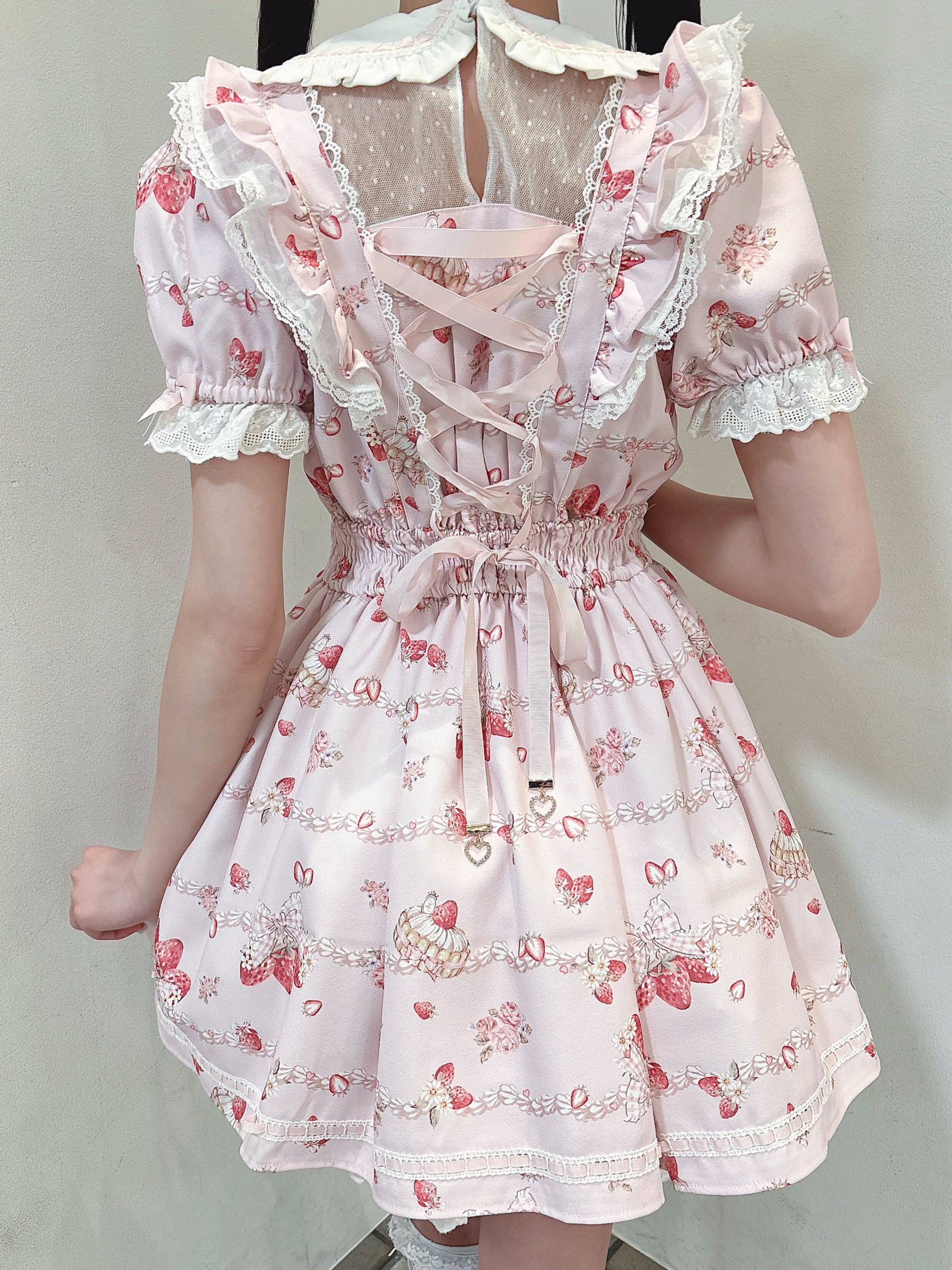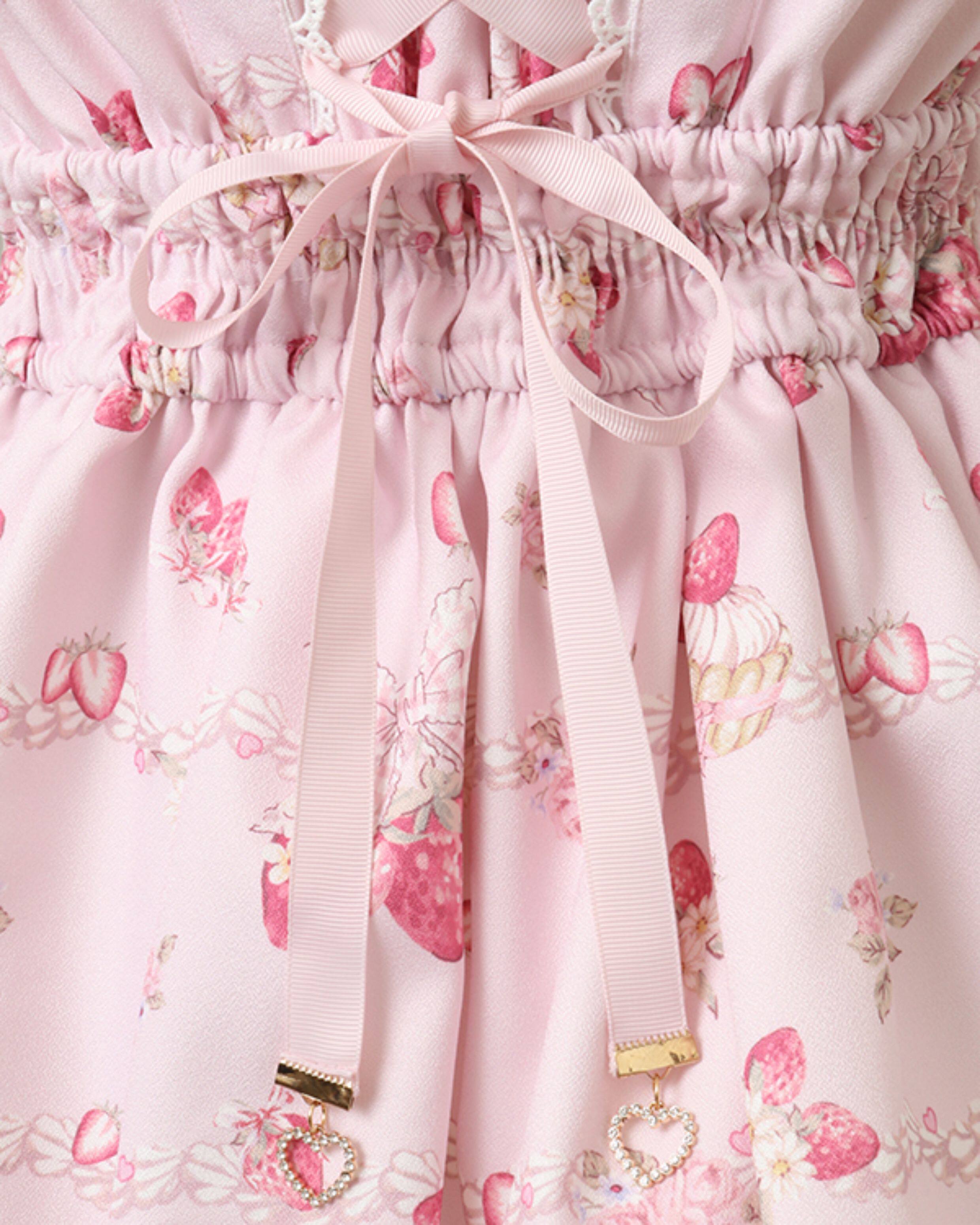 搬仓清货Meowchan日系夏季奶油草莓柄甜美量产型印花短袖连衣裙 [Original Page Link]