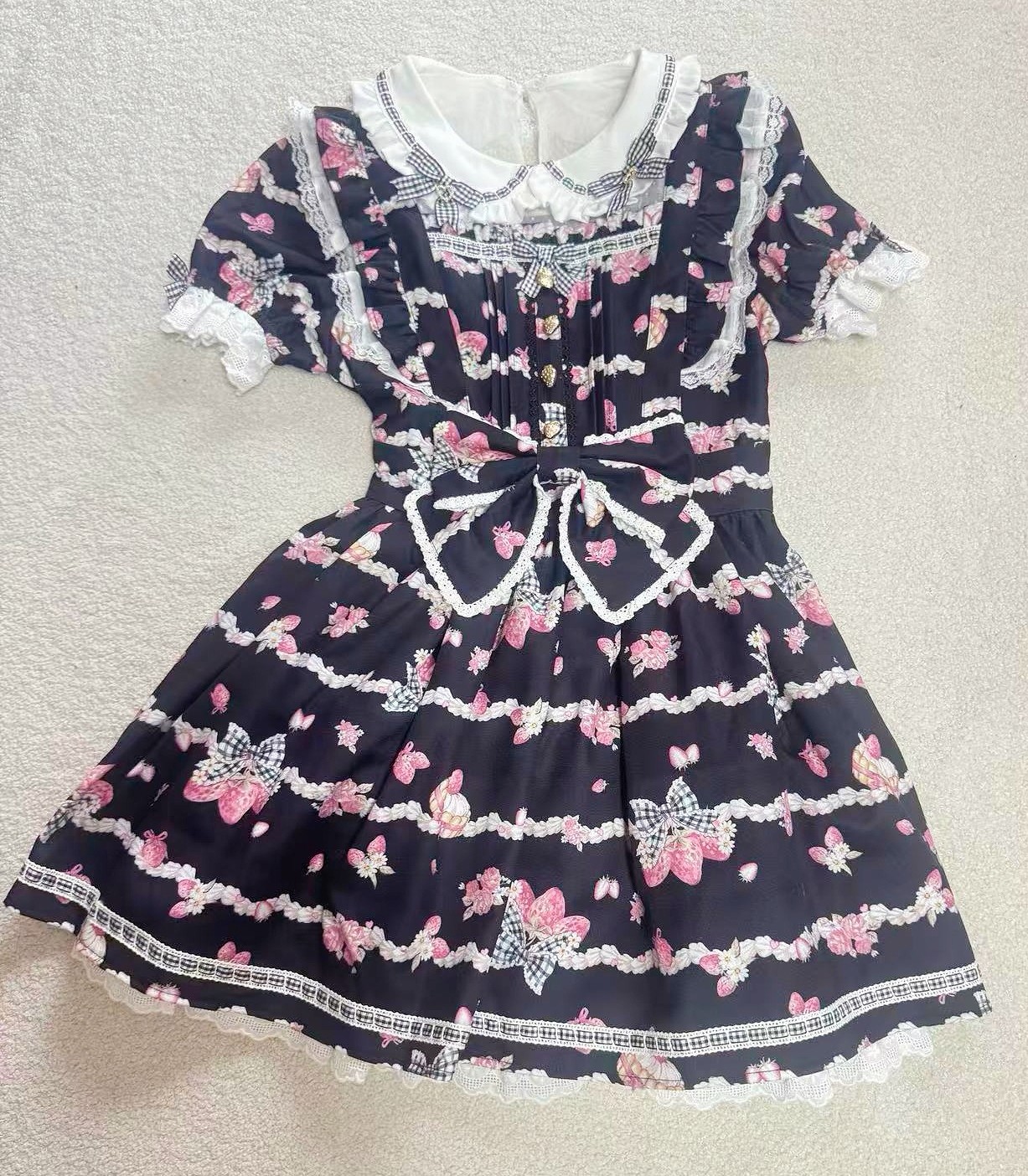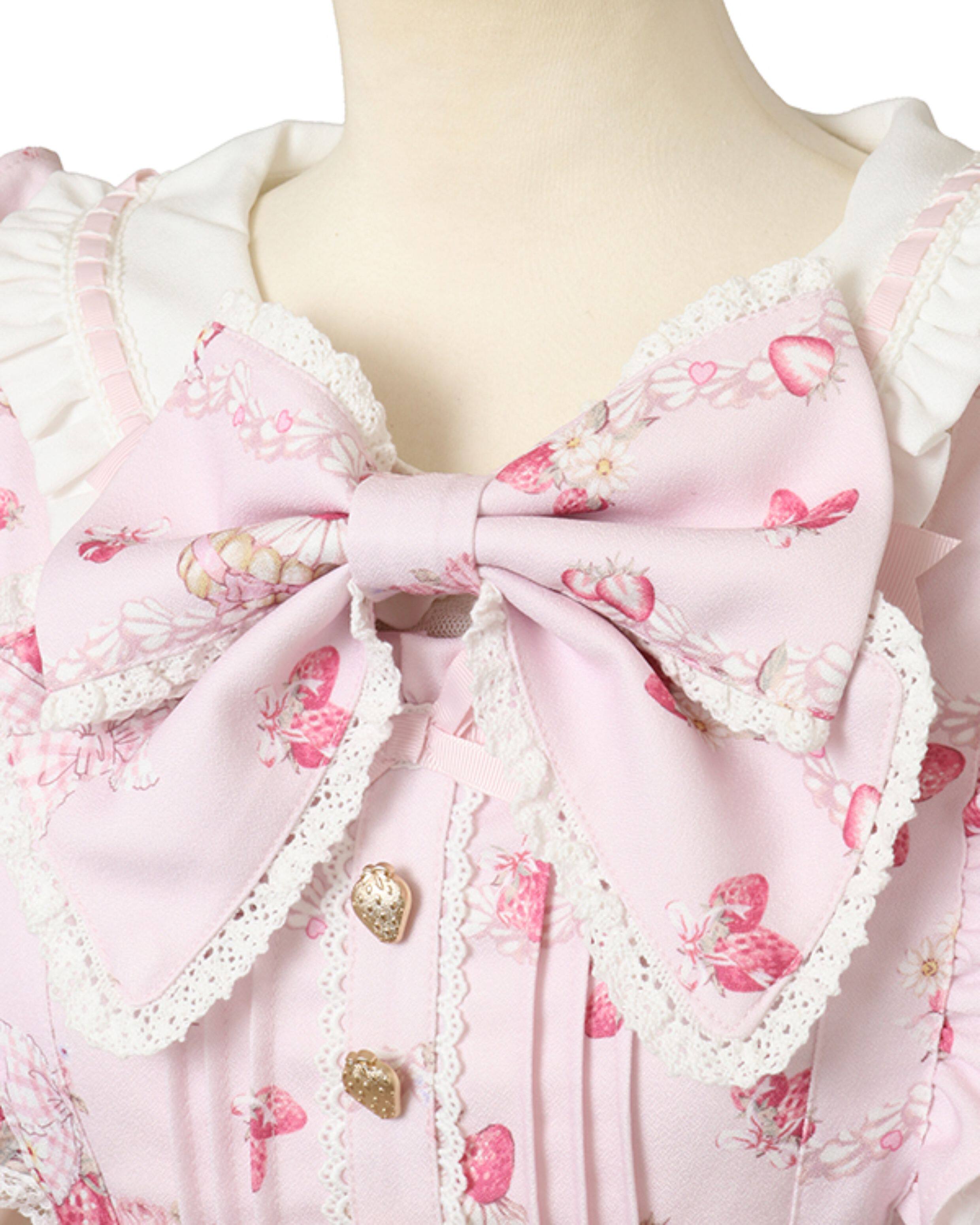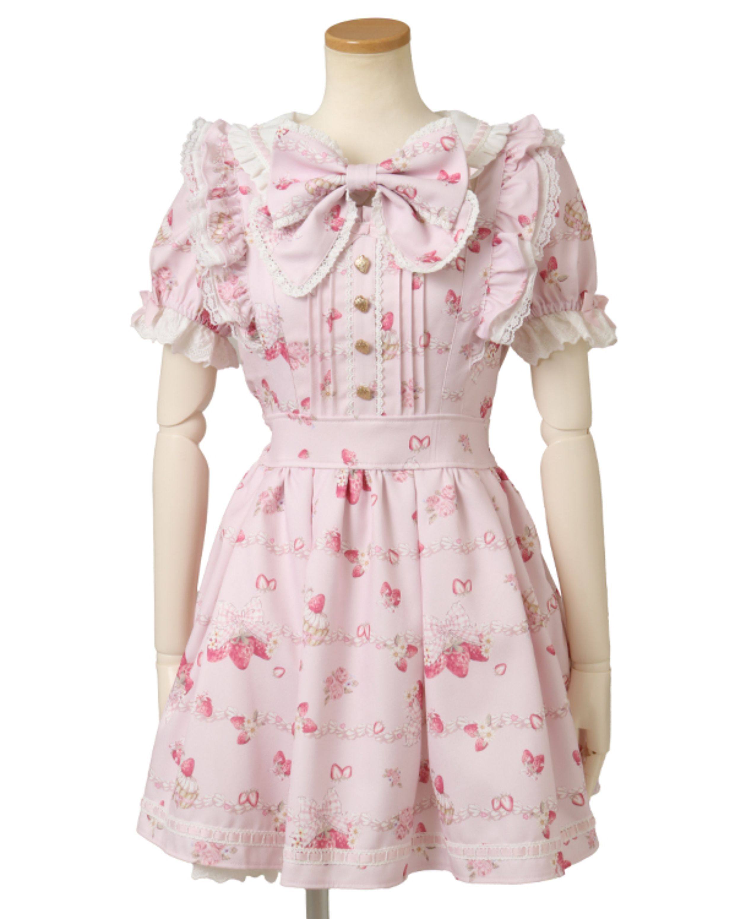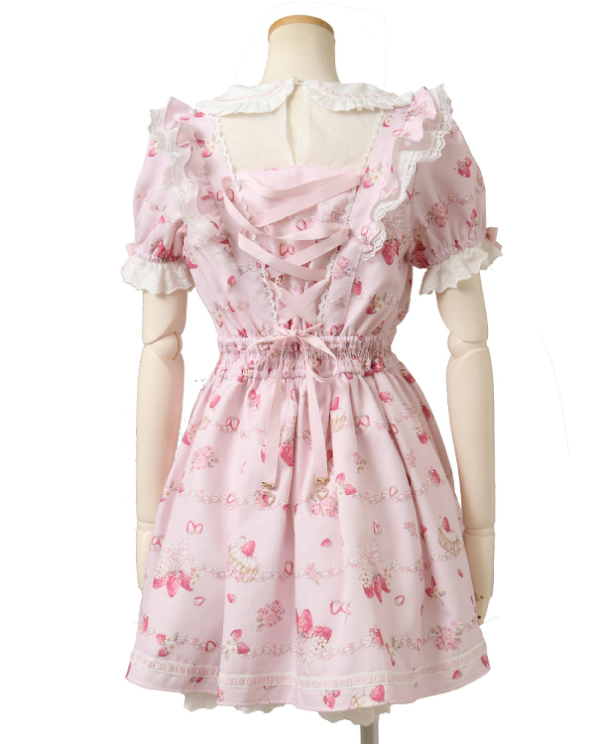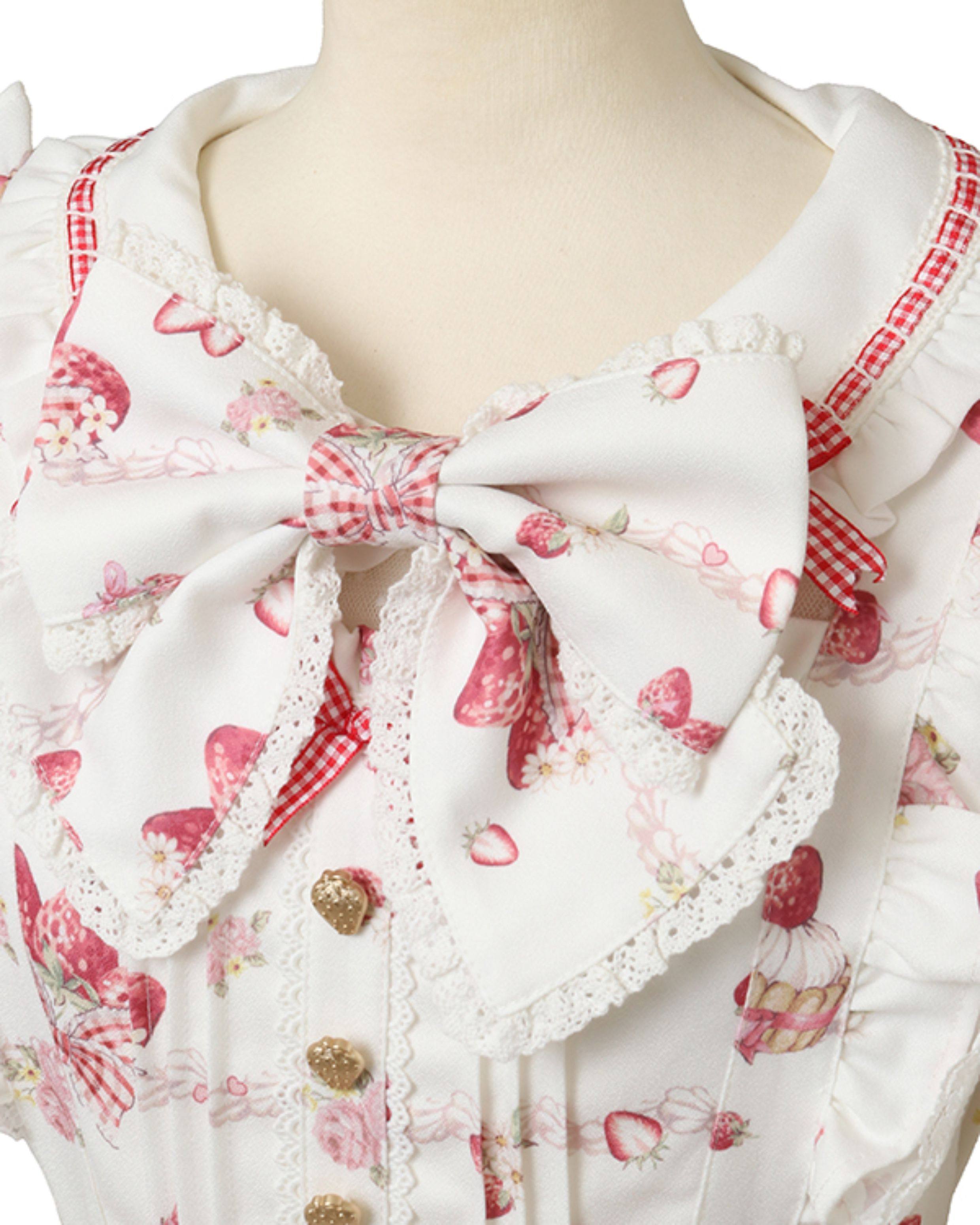 搬仓清货Meowchan日系夏季奶油草莓柄甜美量产型印花短袖连衣裙 [Original Page Link]