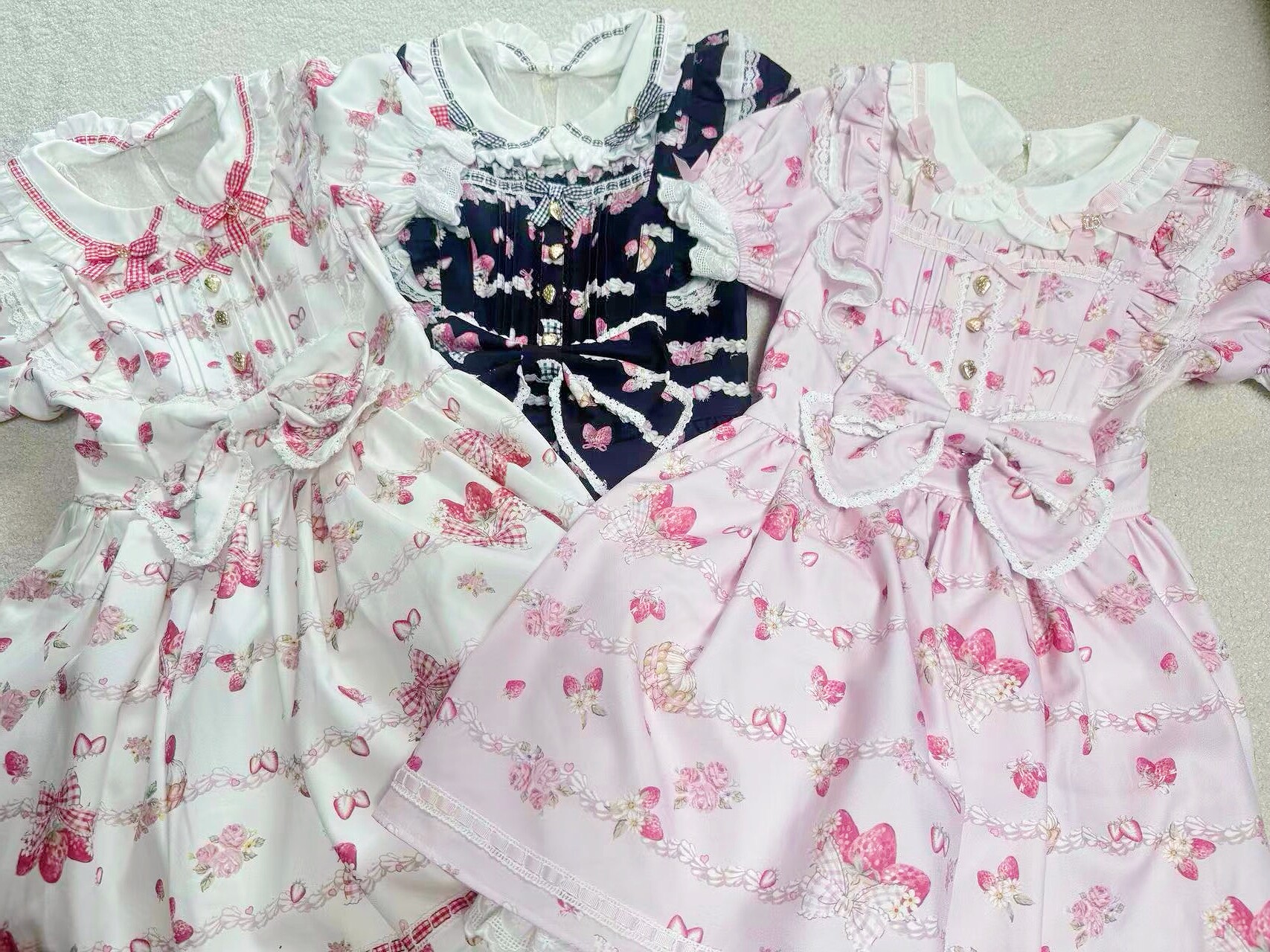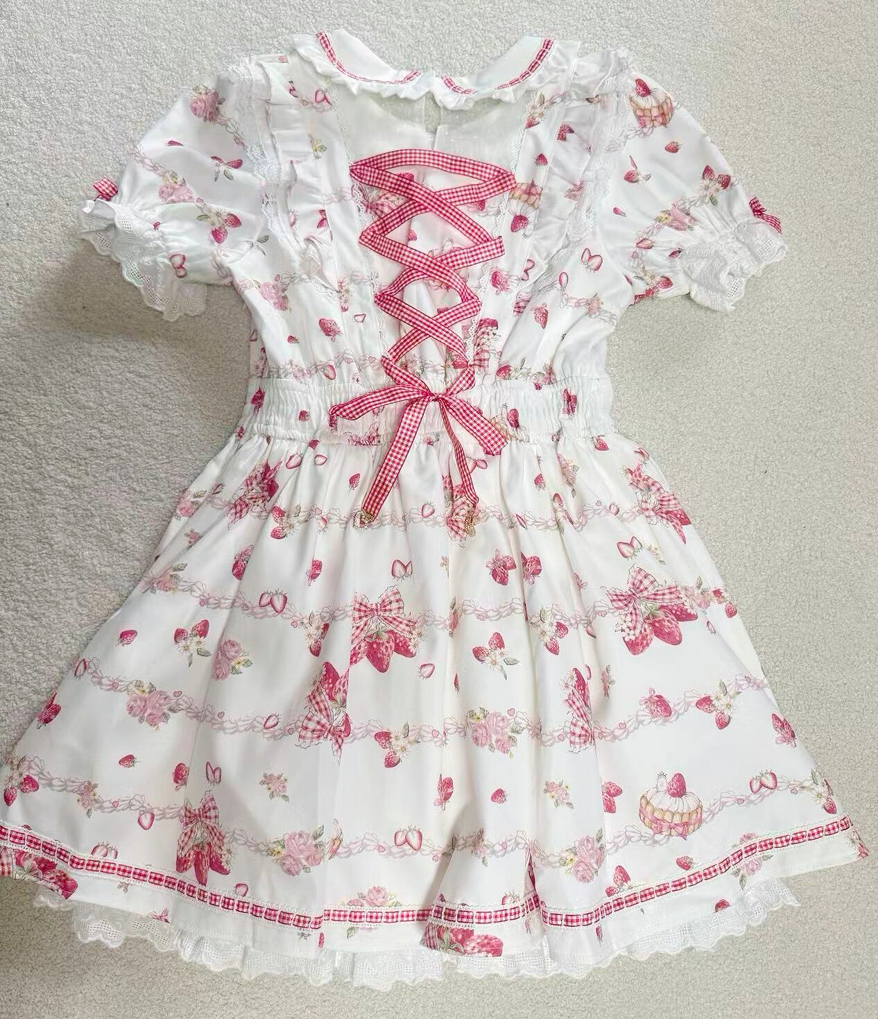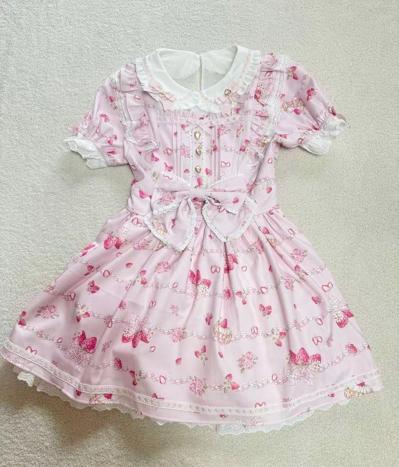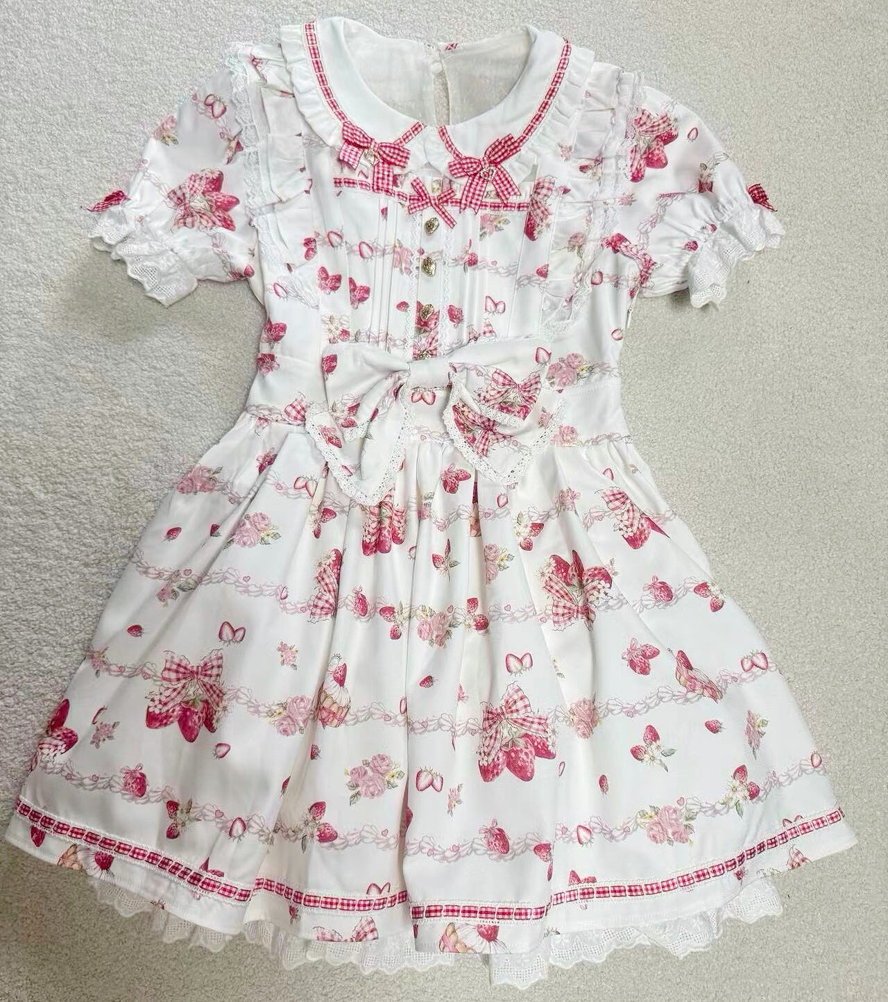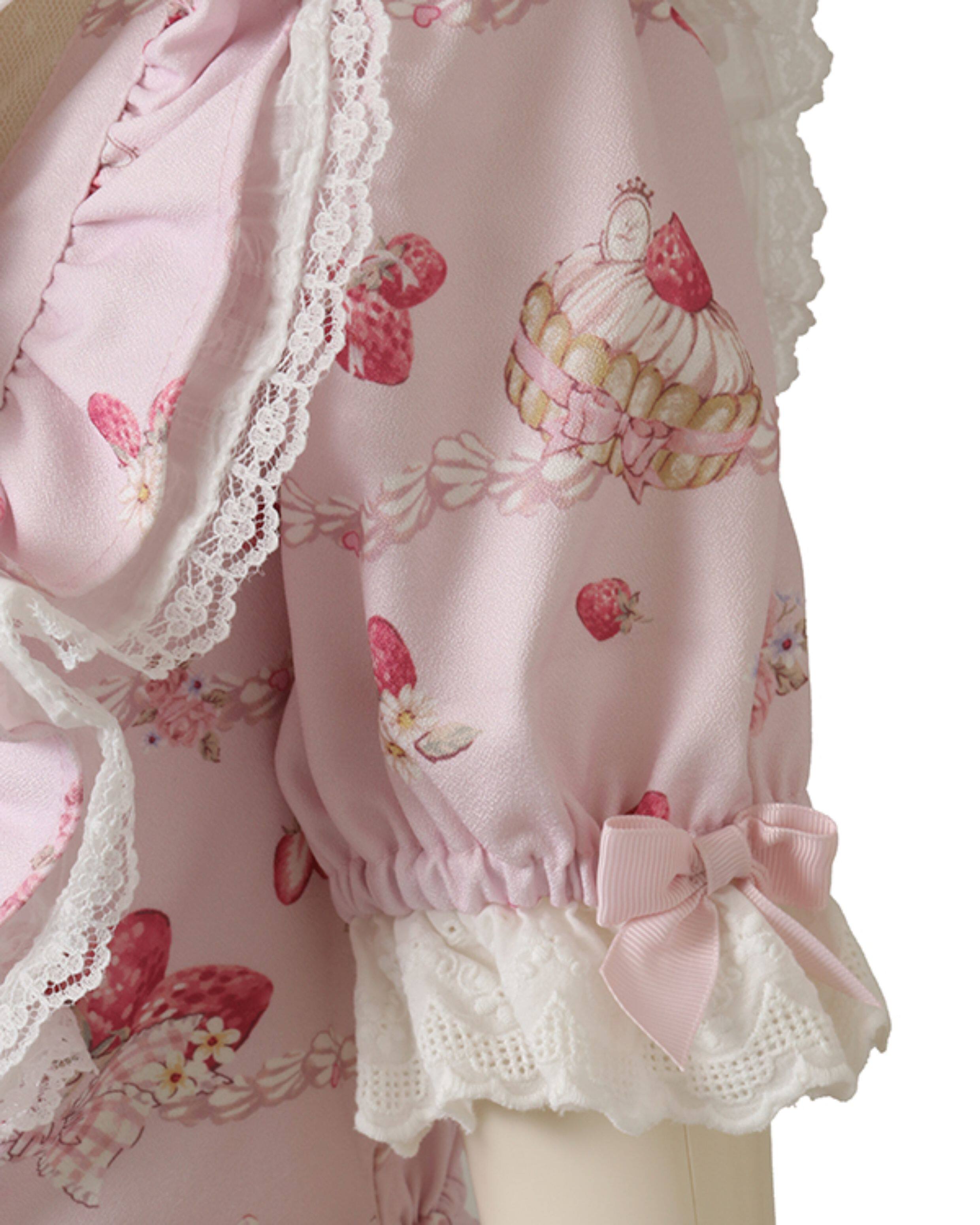 搬仓清货Meowchan日系夏季奶油草莓柄甜美量产型印花短袖连衣裙 [Original Page Link]