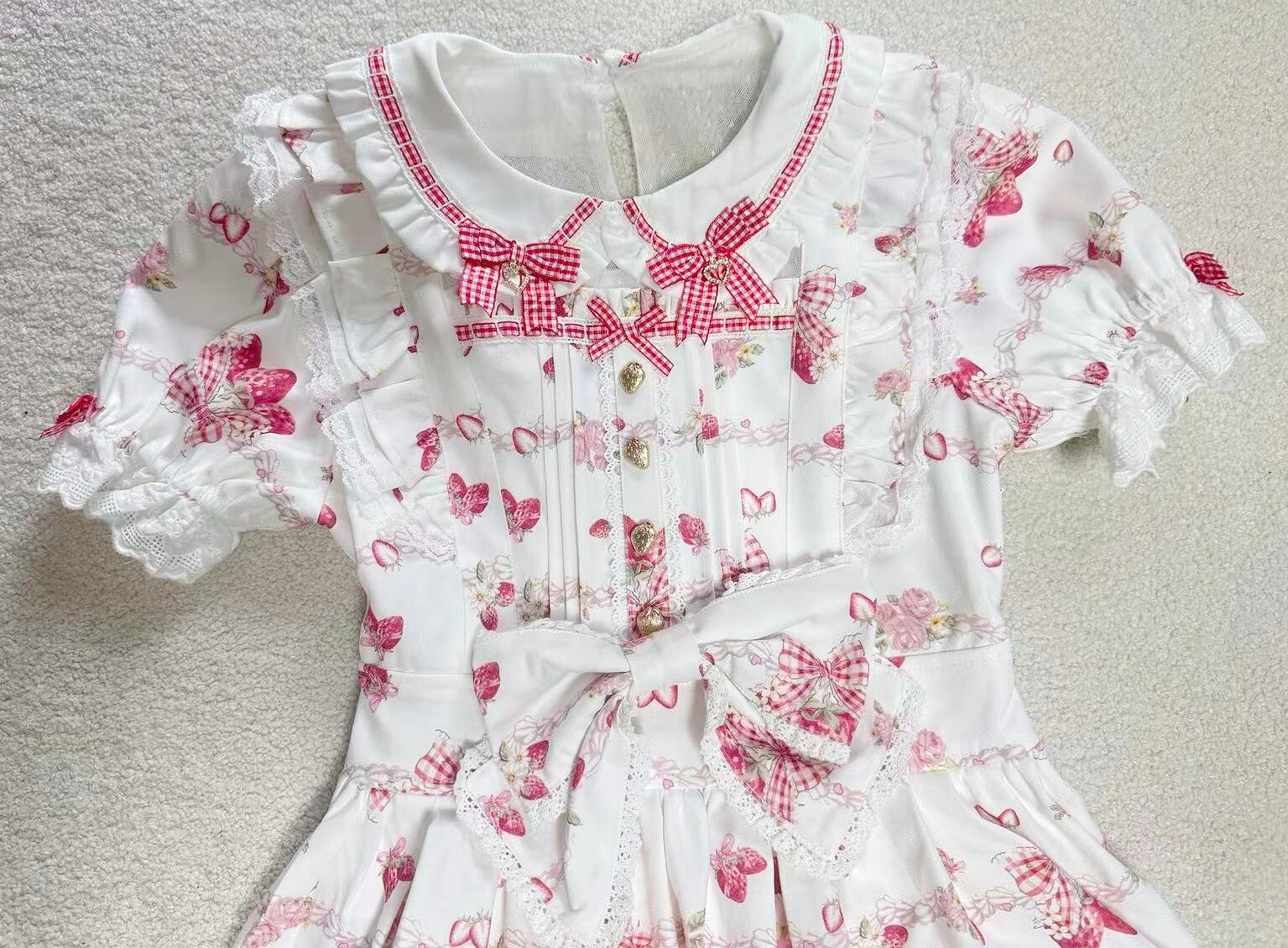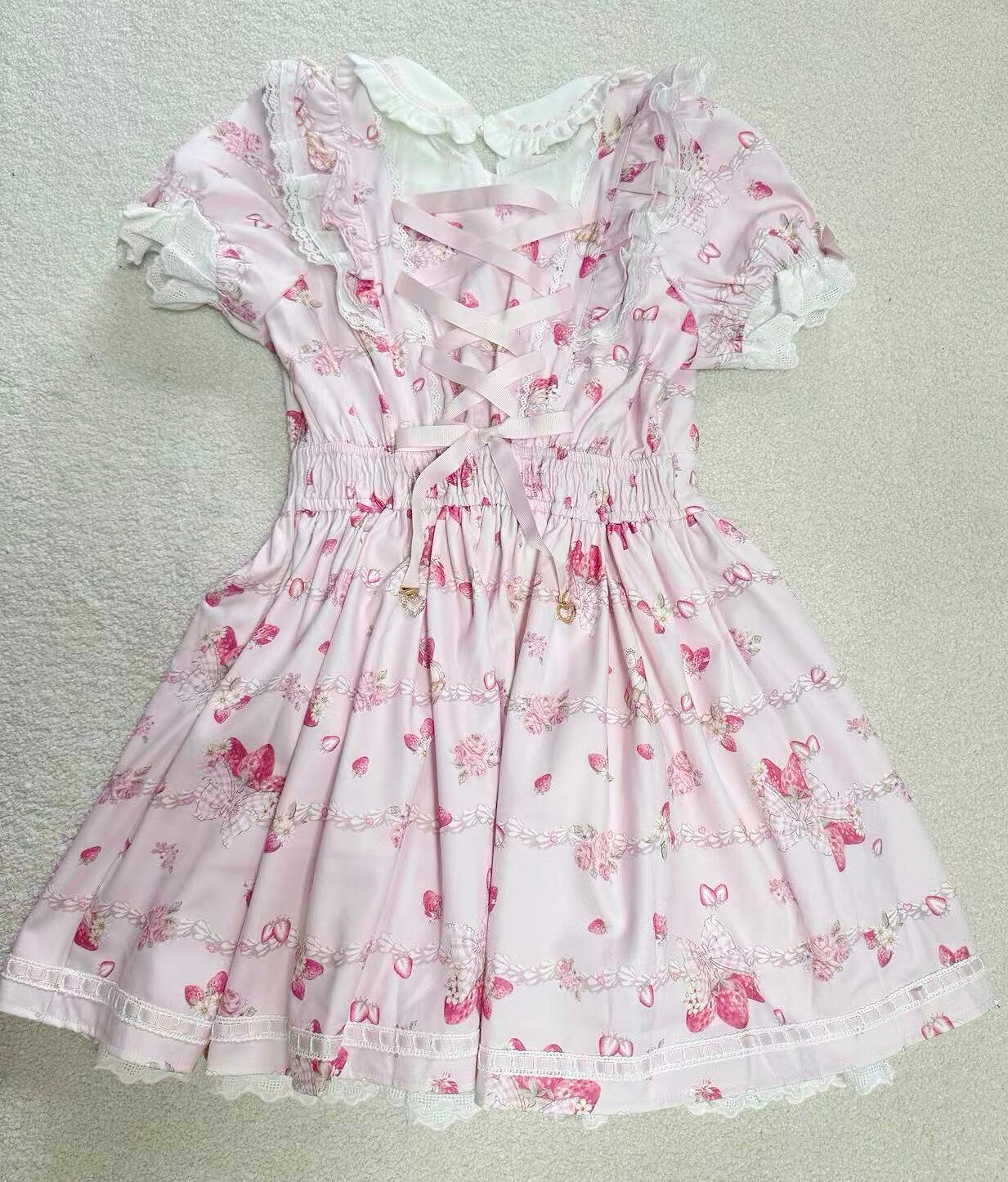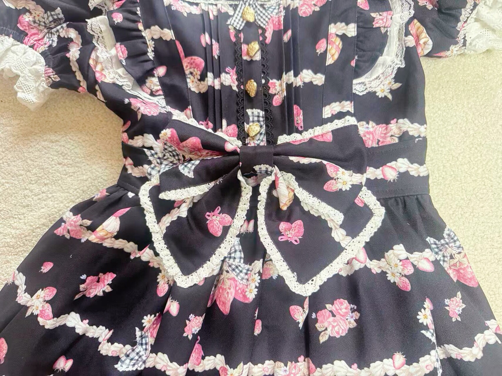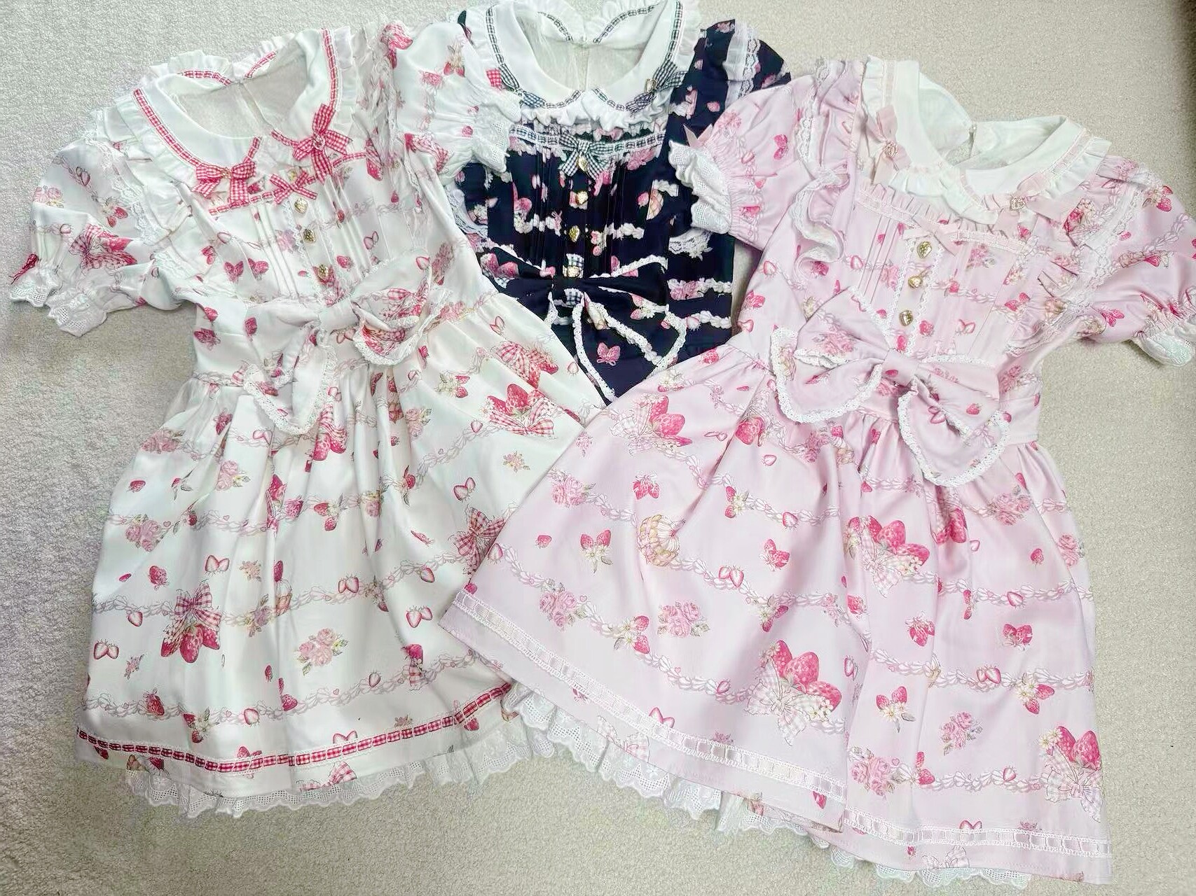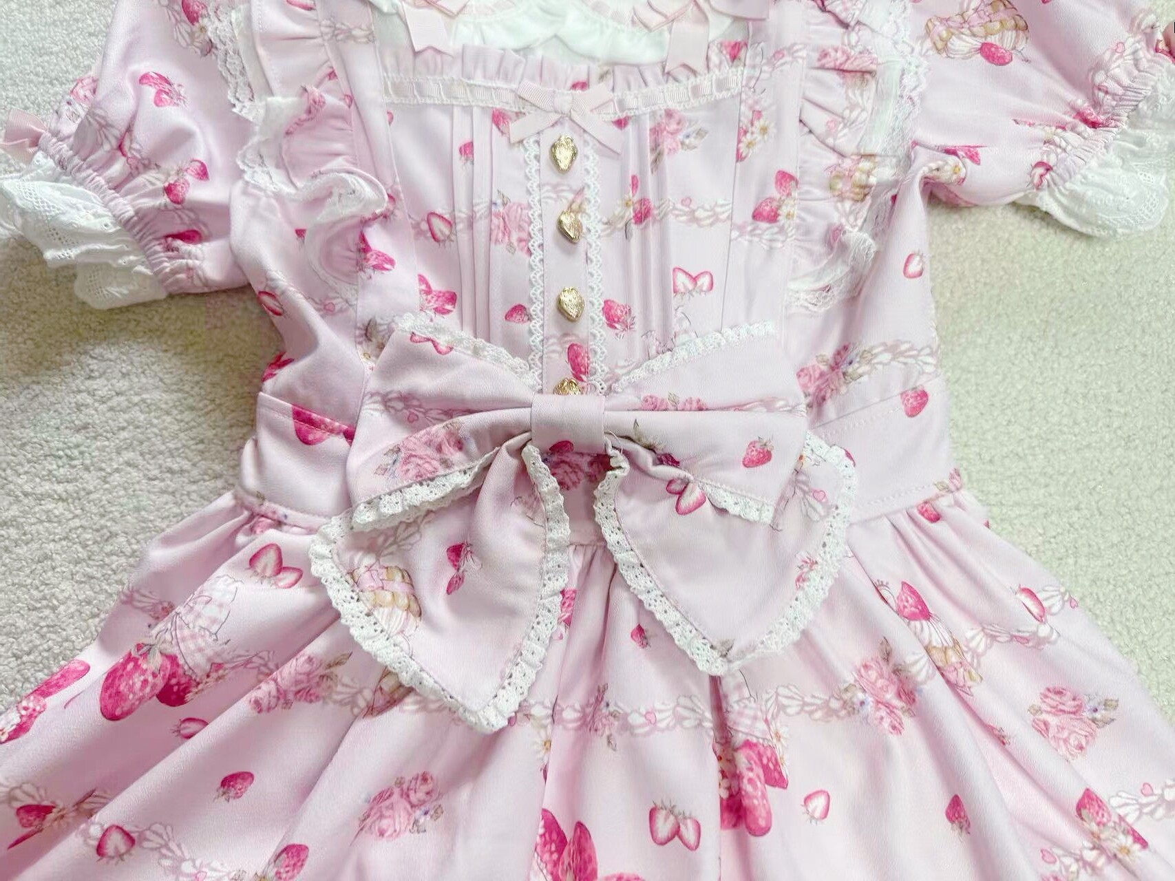 搬仓清货Meowchan日系夏季奶油草莓柄甜美量产型印花短袖连衣裙 [Original Page Link]