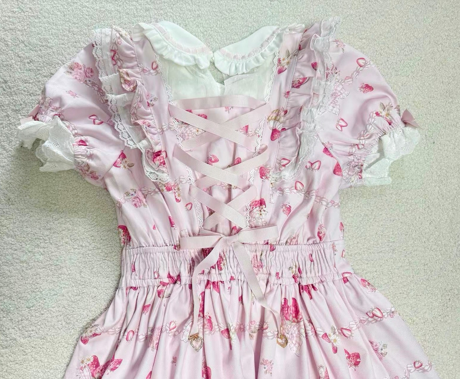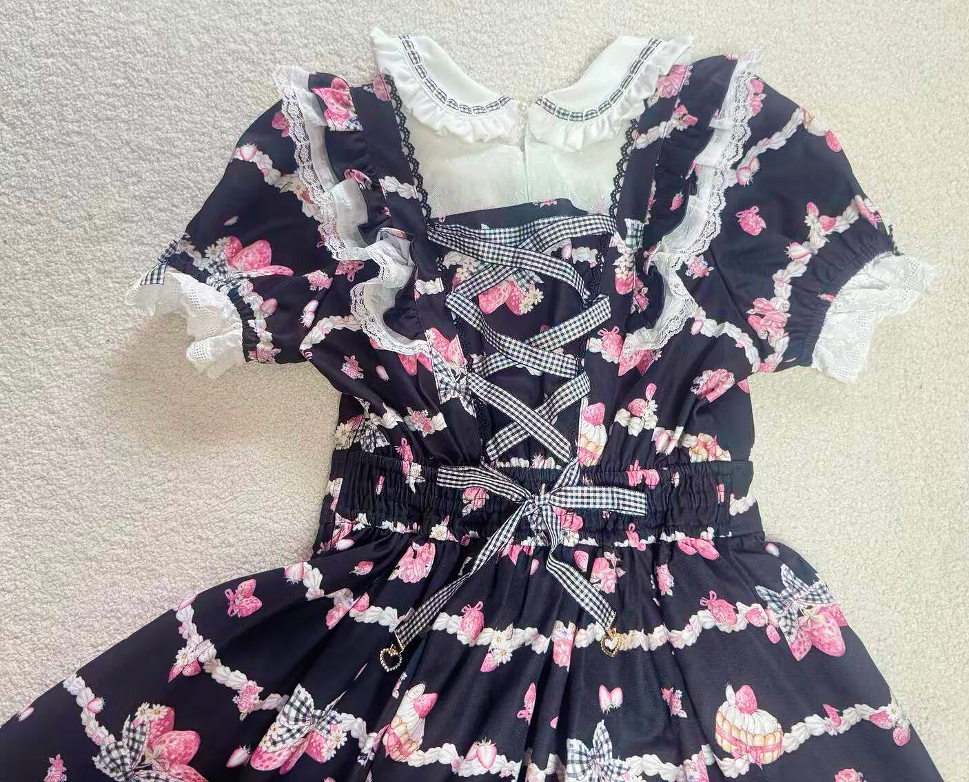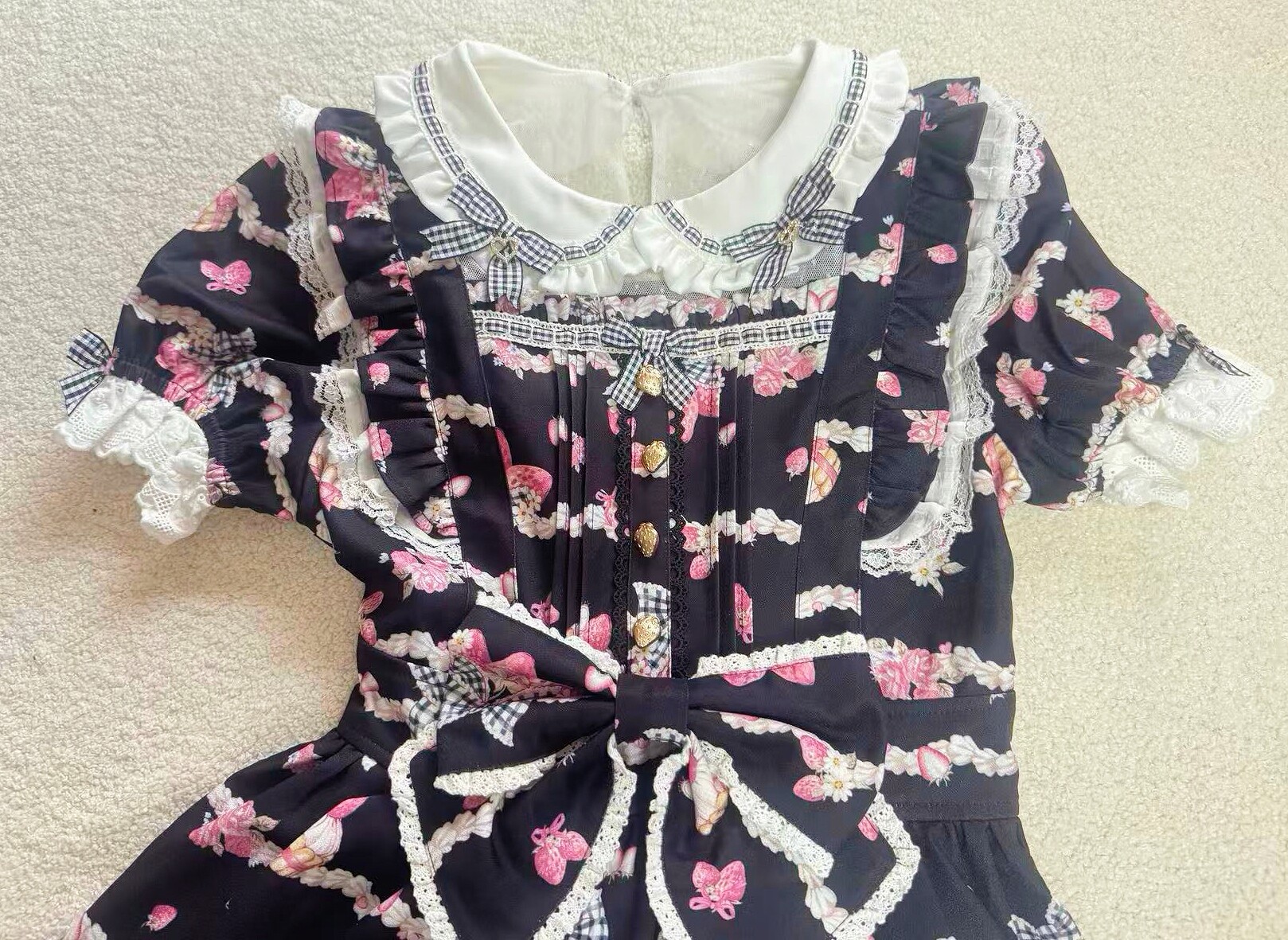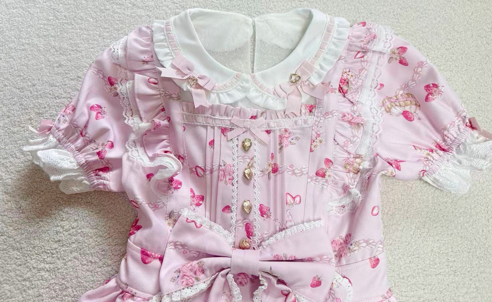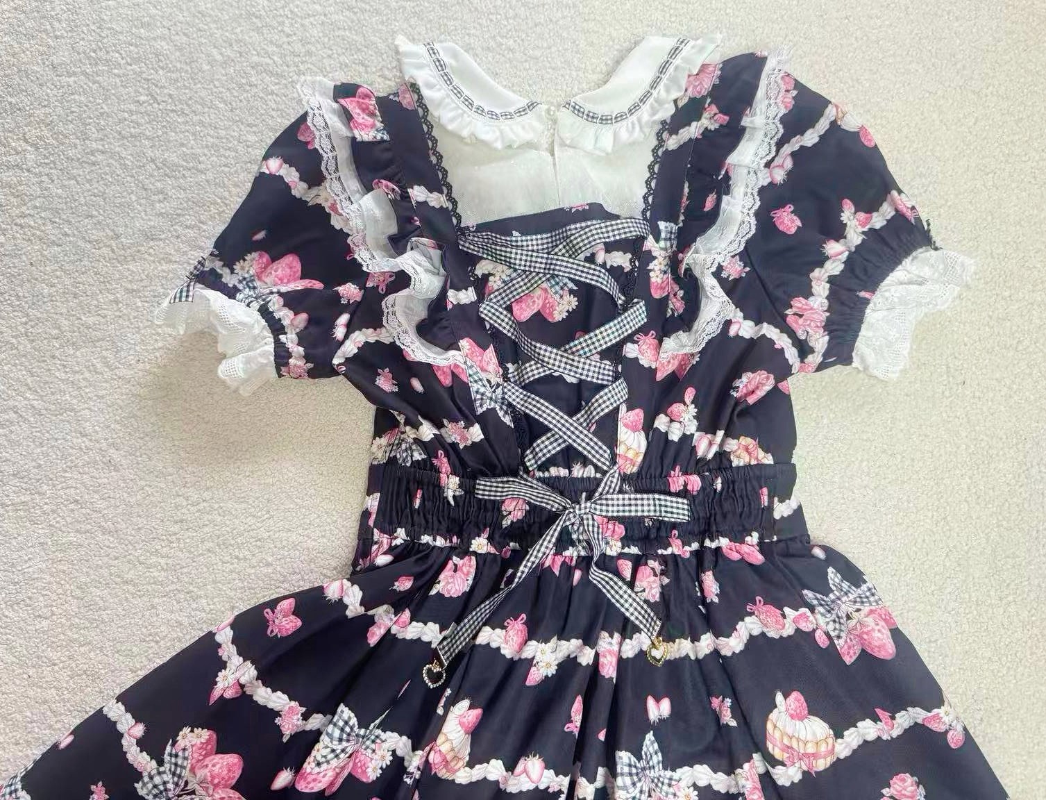 搬仓清货Meowchan日系夏季奶油草莓柄甜美量产型印花短袖连衣裙 [Original Page Link]