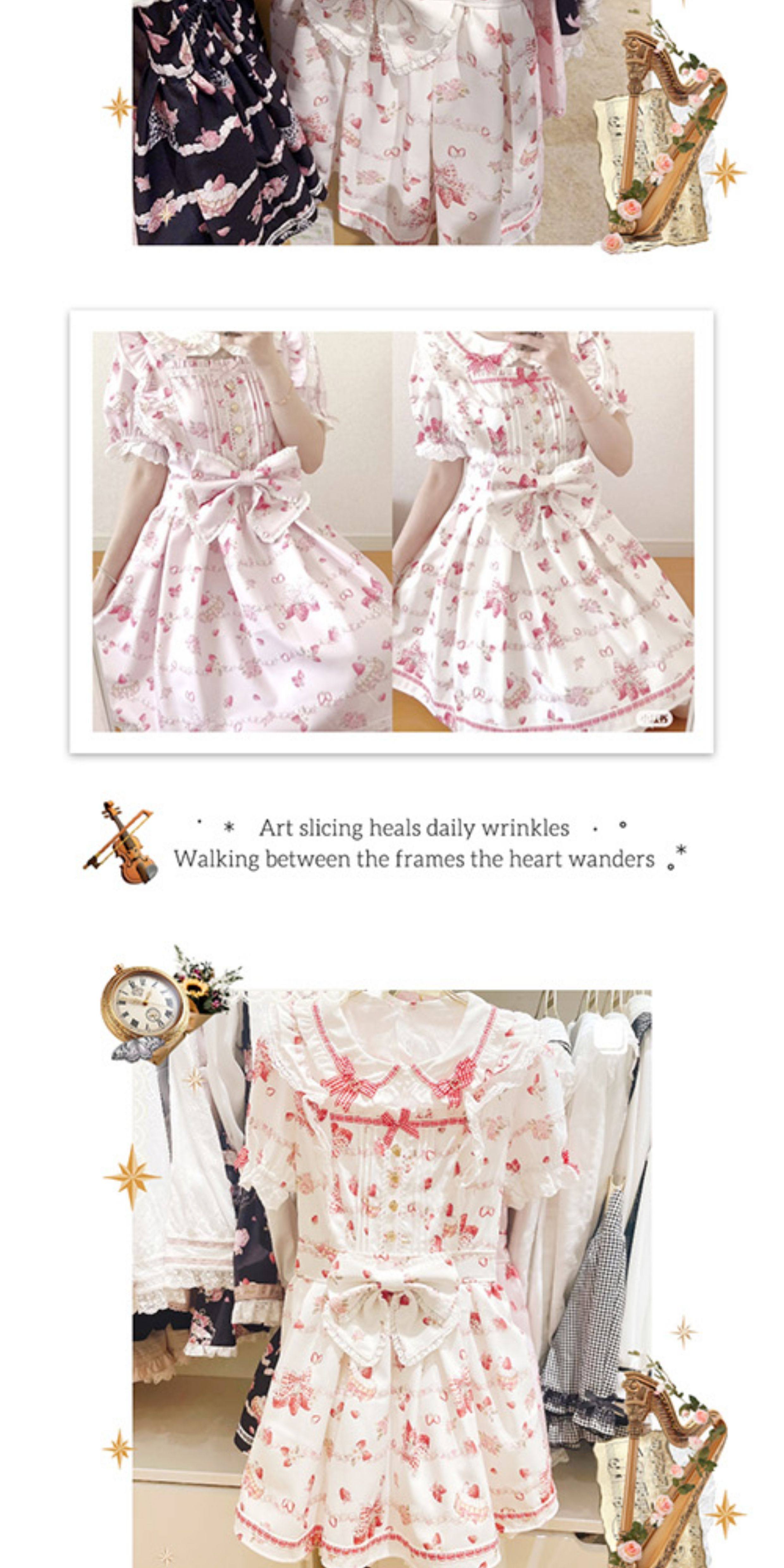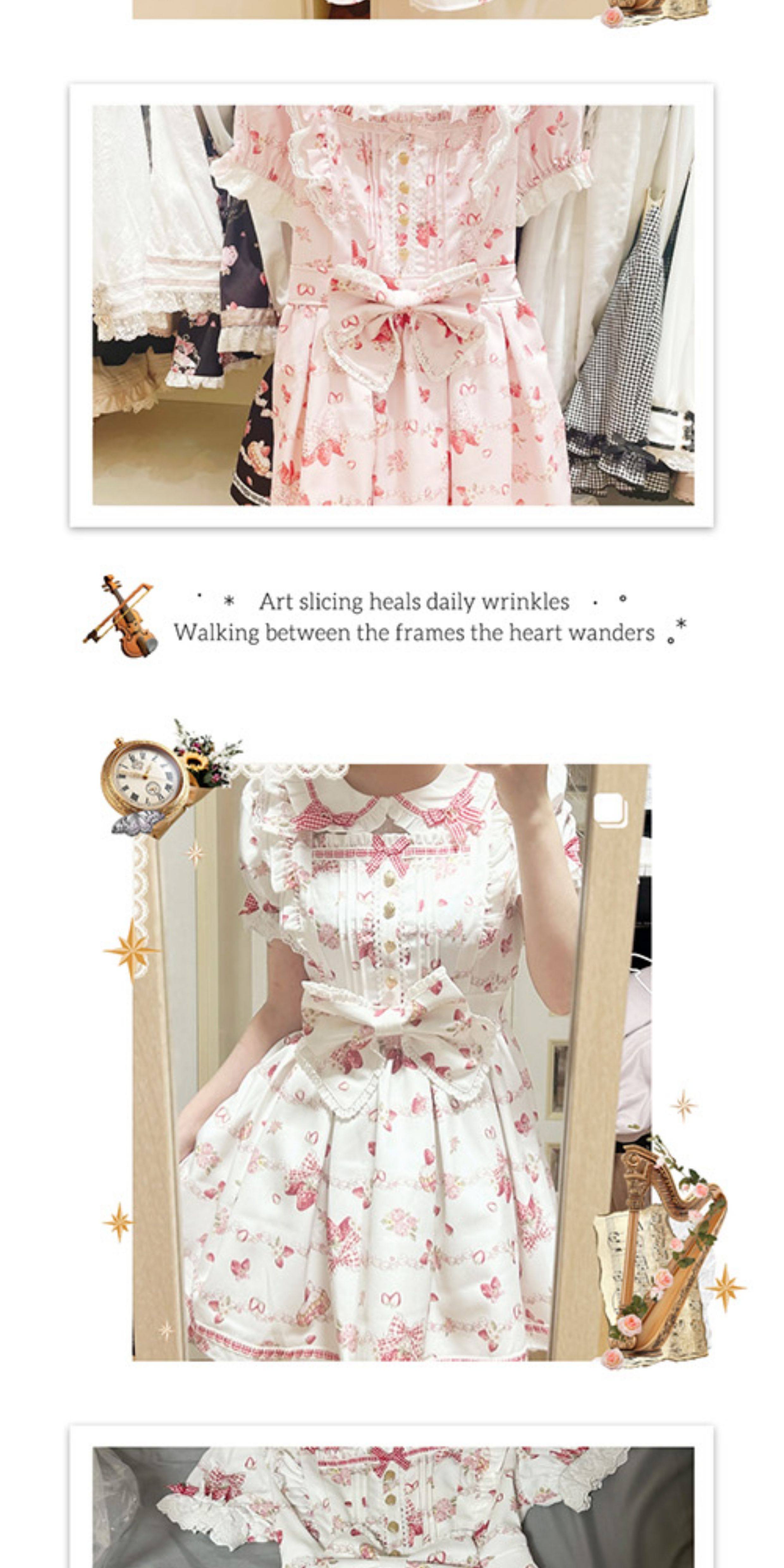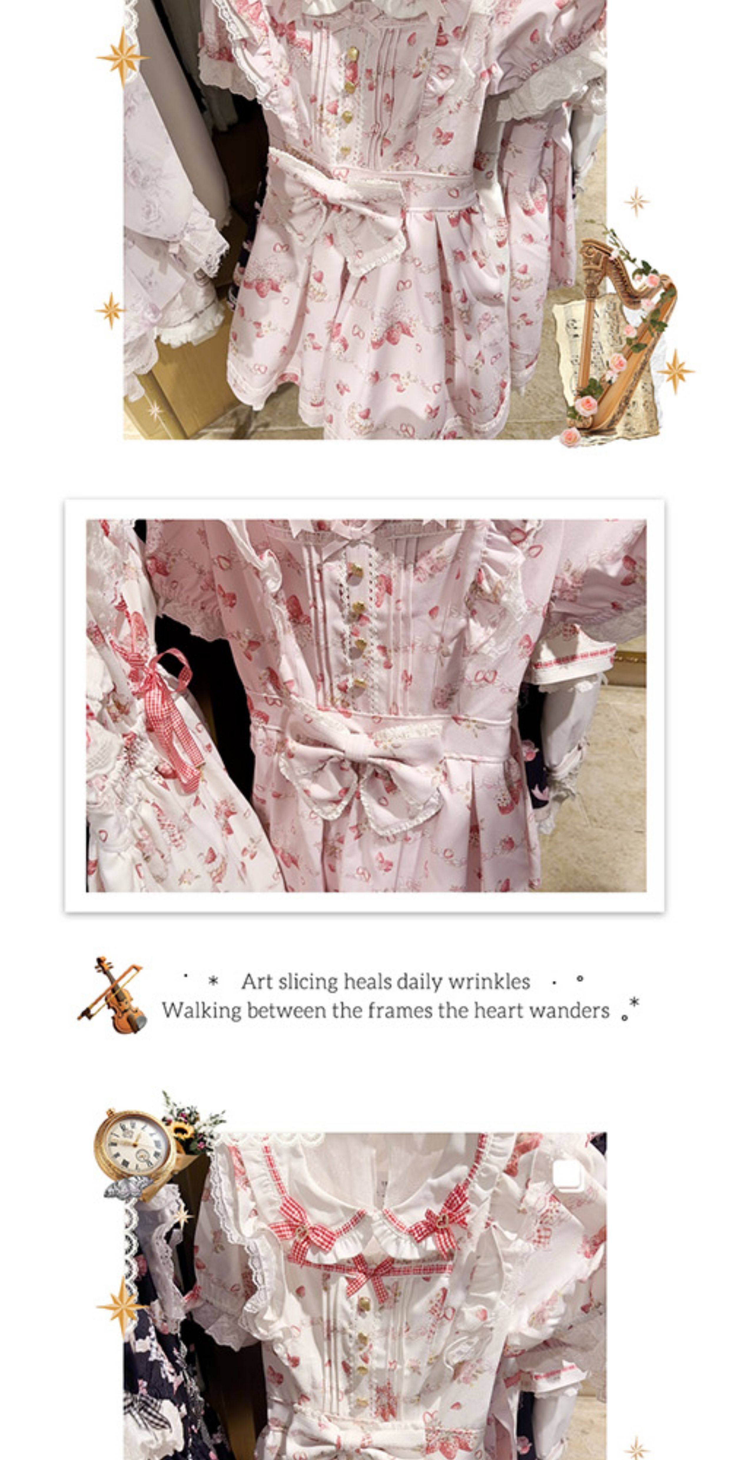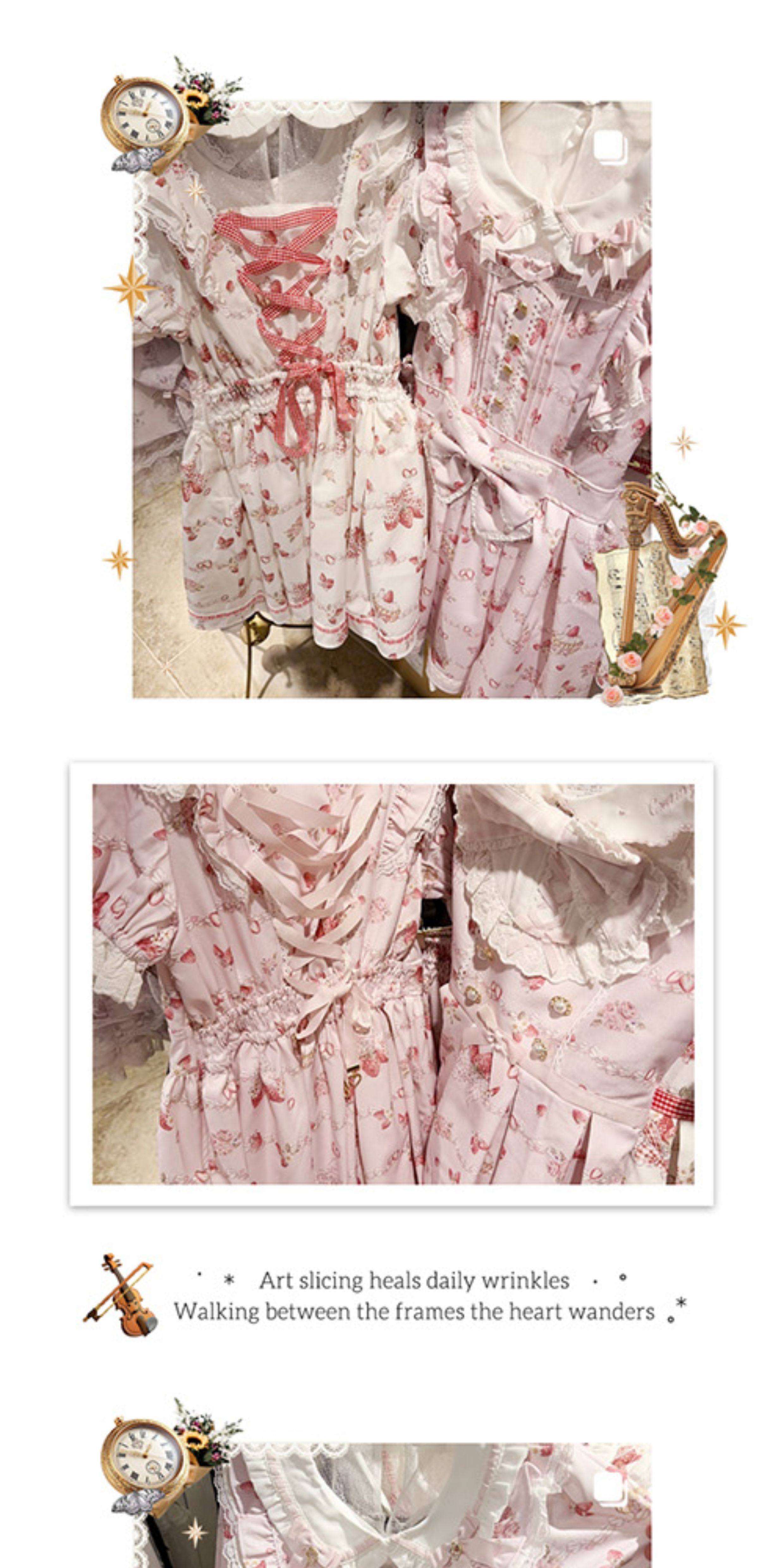 Clearance Sale: Meowchan Japanese Summer Creamy Strawberry Pattern Sweet Mass-Produced Printed Short-Sleeve Dress