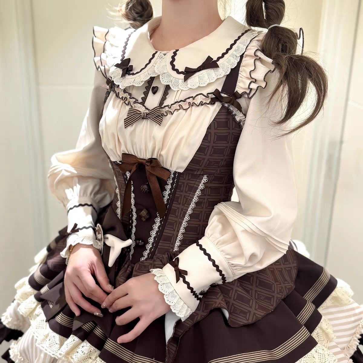 PINKGIRL [Thin Chocolate] Lolita Peter Pan Collar Cute Sweet Shirt Spring and Autumn Inner Layer Long Sleeve