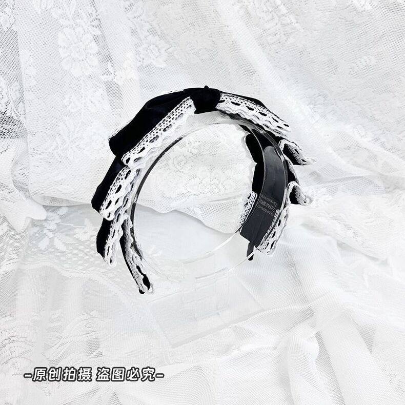 洛丽塔发箍原创手作KC蝴蝶结lolita发饰昭和蛋糕黑白头饰新款蕾丝 [Original Page Link]