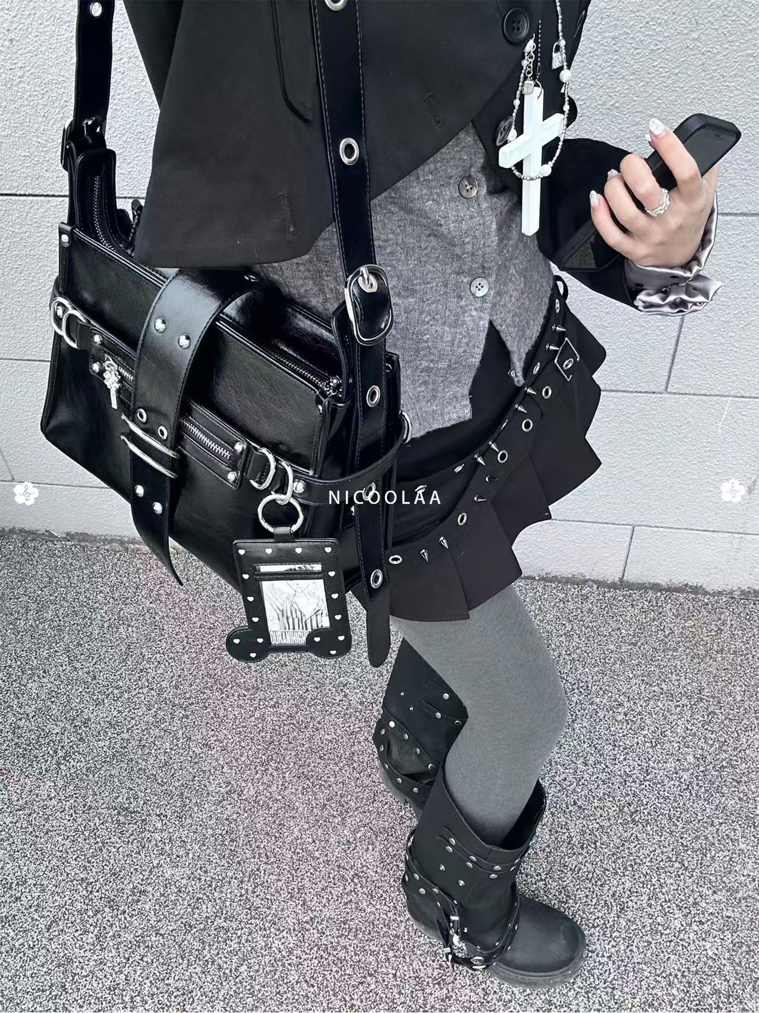 NICOOLAA新品朋克十字机车风痛包娃包单肩斜挎韩系少女包两背定金 [Original Page Link]