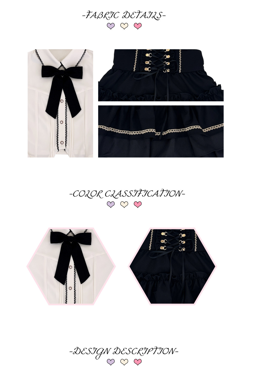 COSMEPRO【格林公馆】春季新品黑色高腰轻lo背带裙JK蕾丝花边衬衫 [Original Page Link]