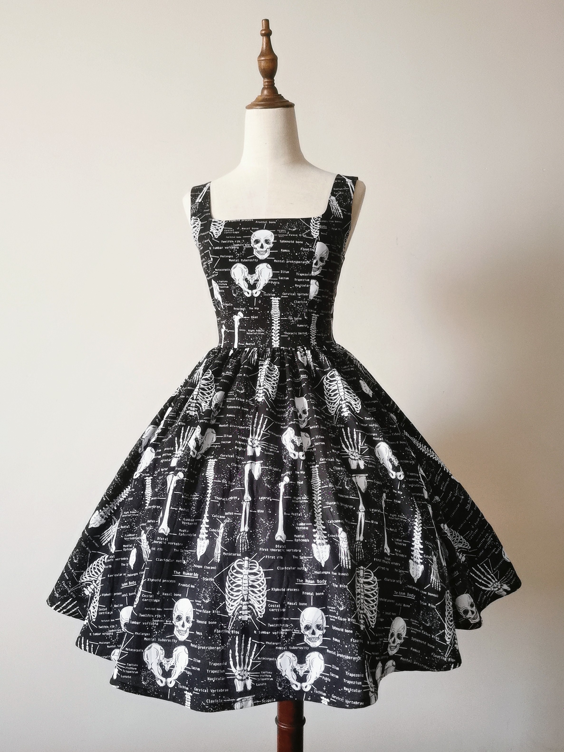 [Homemade] Soul and Body JSK Retro Design Suspender Print Full Skirt Dress Vest Dress