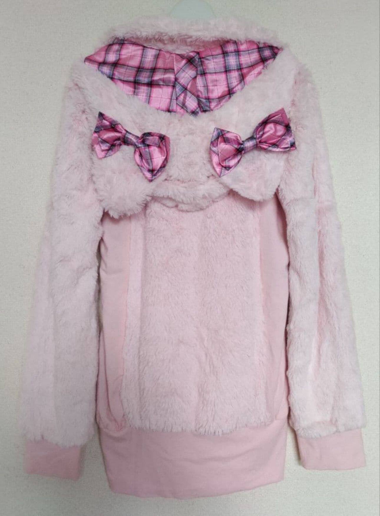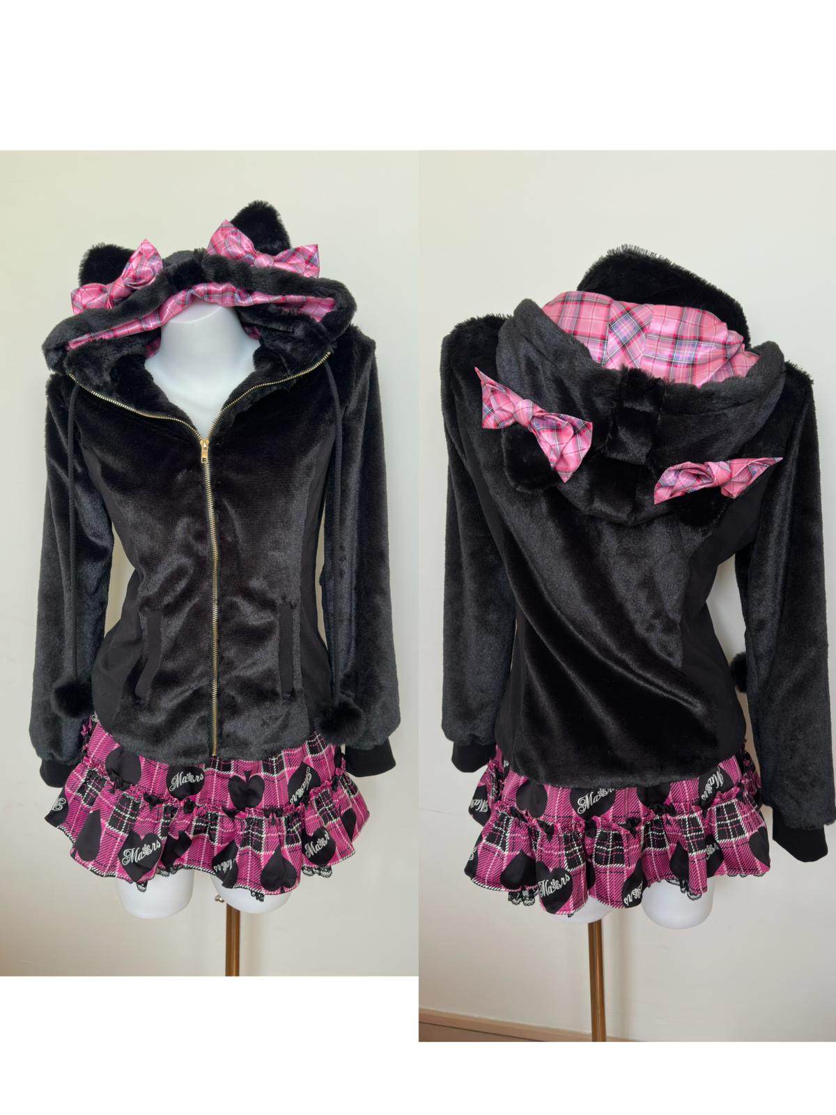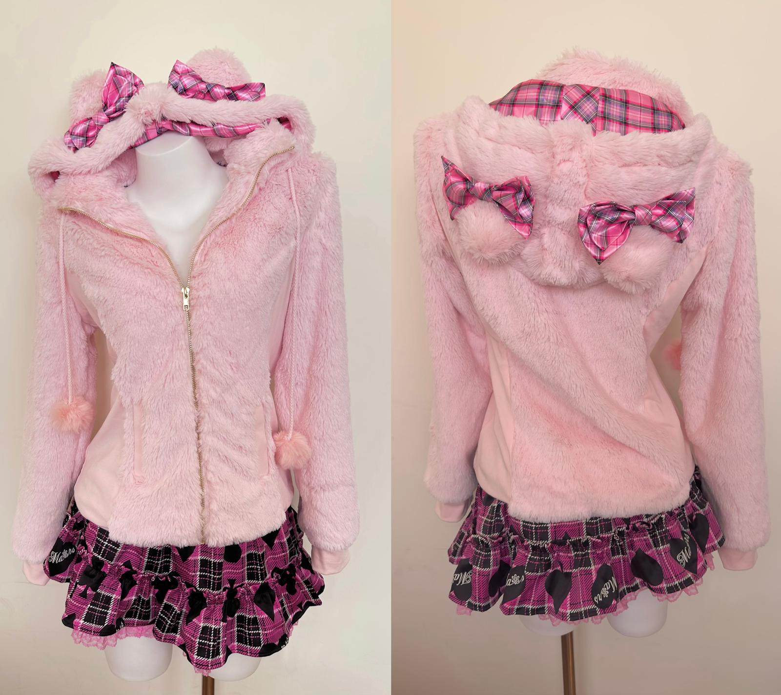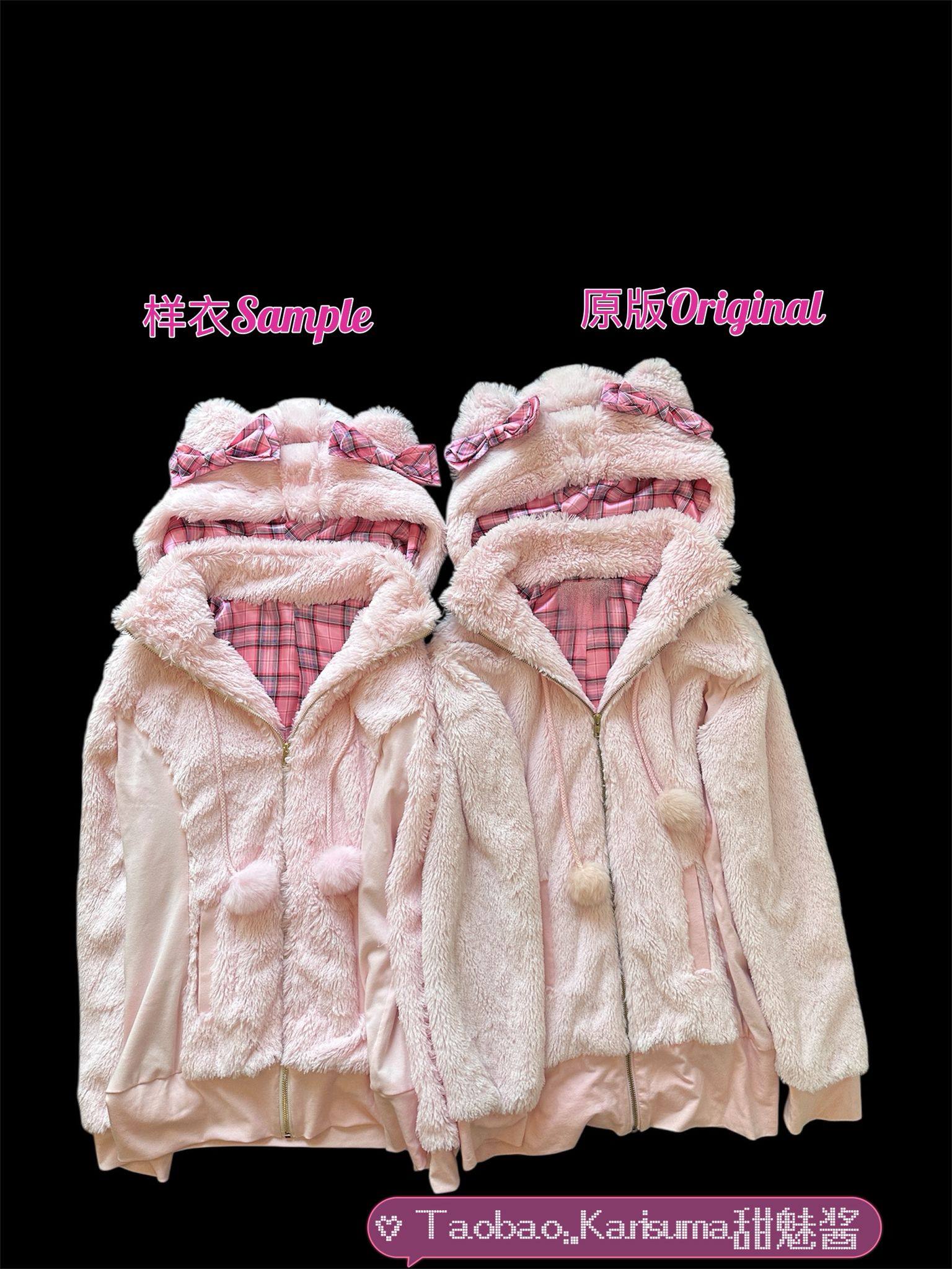 (甜魅酱) 现货猫耳辣妹GAL系复刻Mars风修身萌系粉红格子毛绒外套 [Original Page Link]