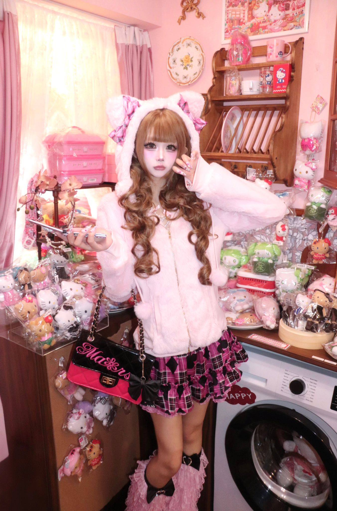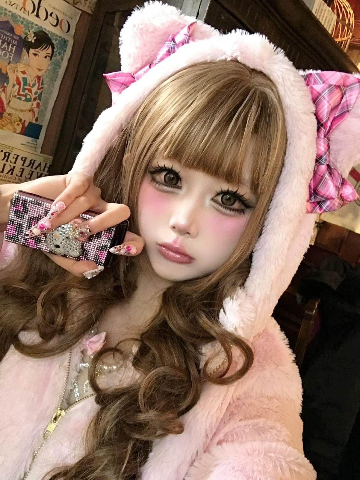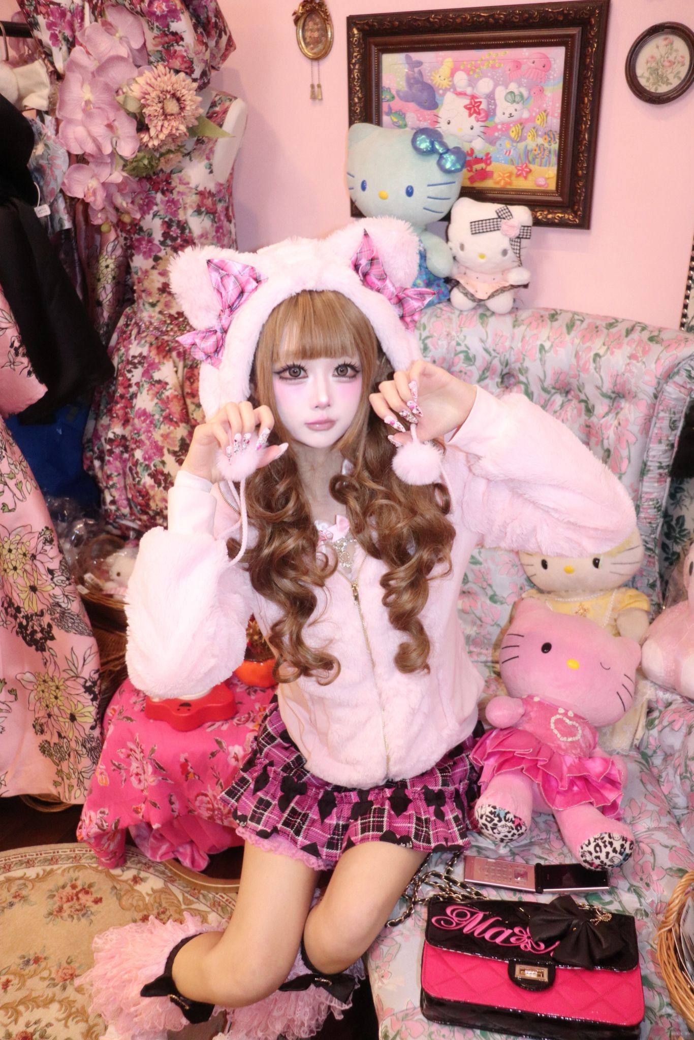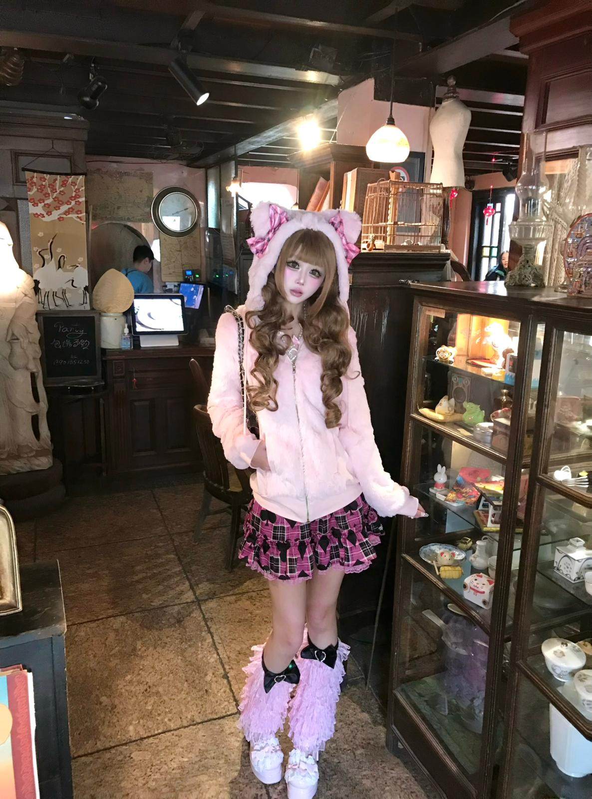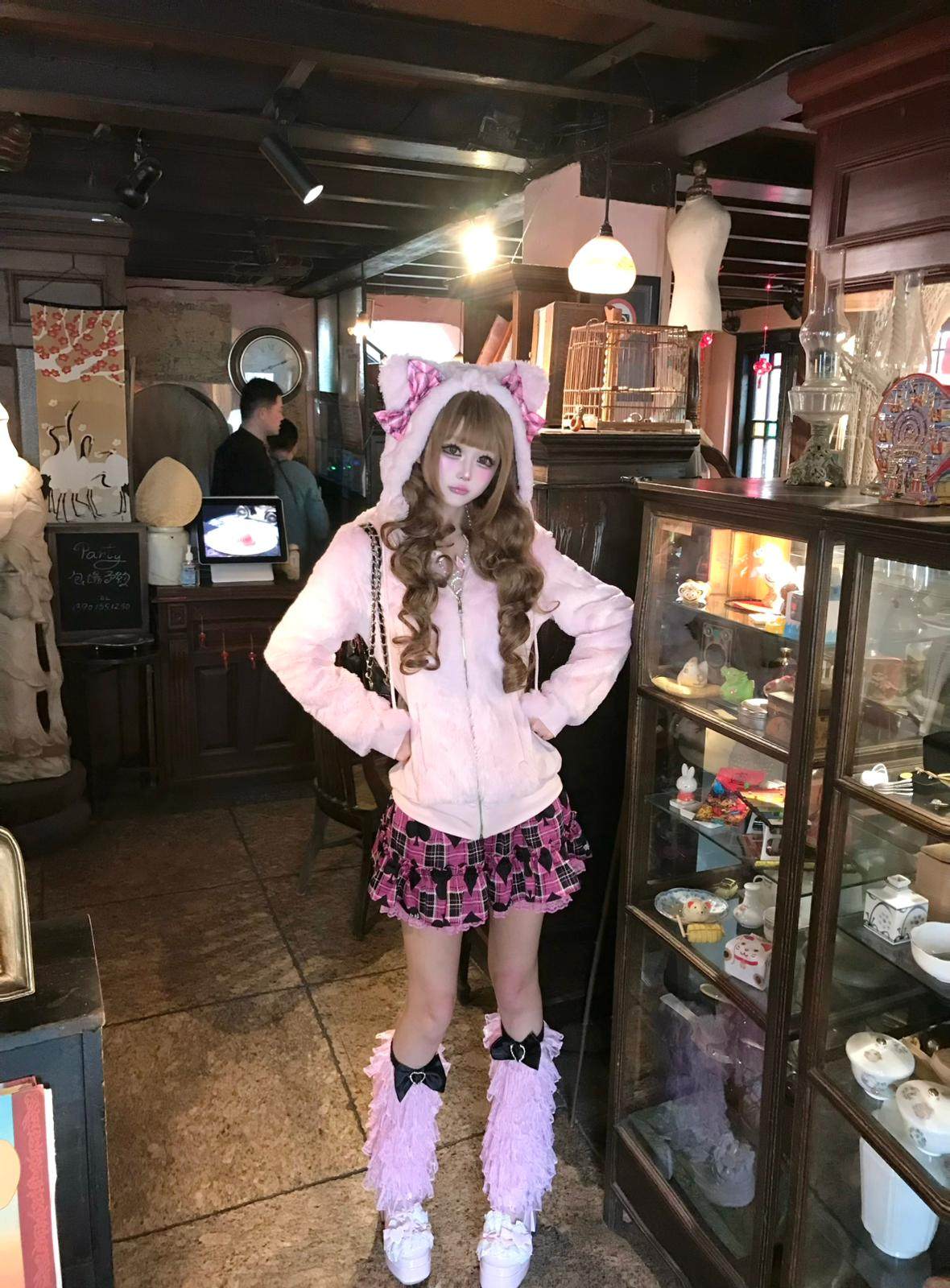 (甜魅酱) 现货猫耳辣妹GAL系复刻Mars风修身萌系粉红格子毛绒外套 [Original Page Link]