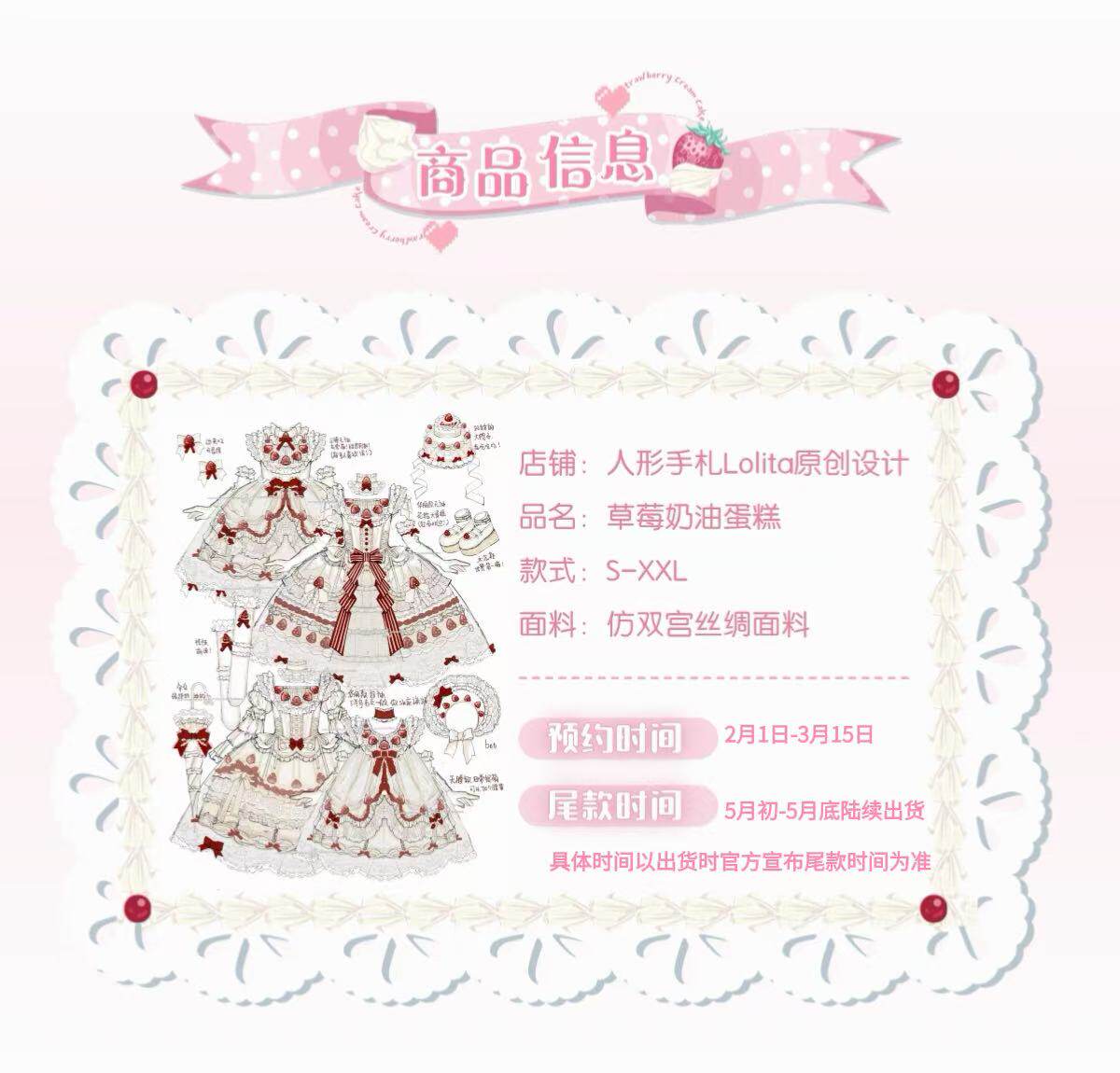 人形手札【定金】草莓奶油蛋糕Lolita洛丽塔裙子洋装lo裙3.15截团 [Original Page Link]