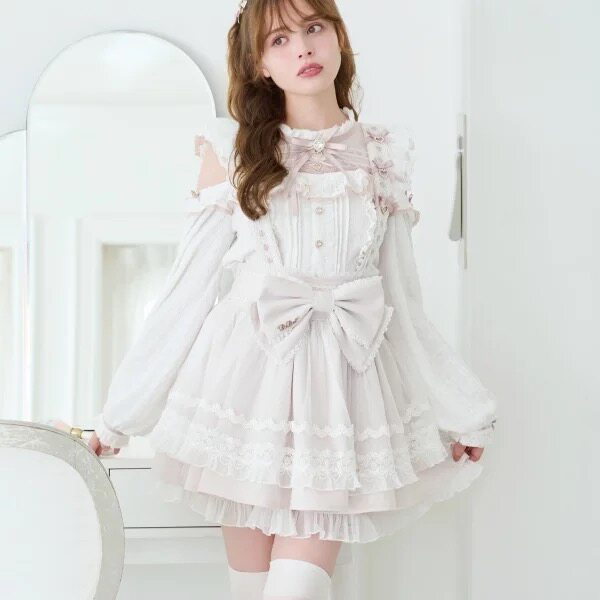 日系量产型新款甜美罩纱背后大蝴蝶结女仆背带裙 [Original Page Link]