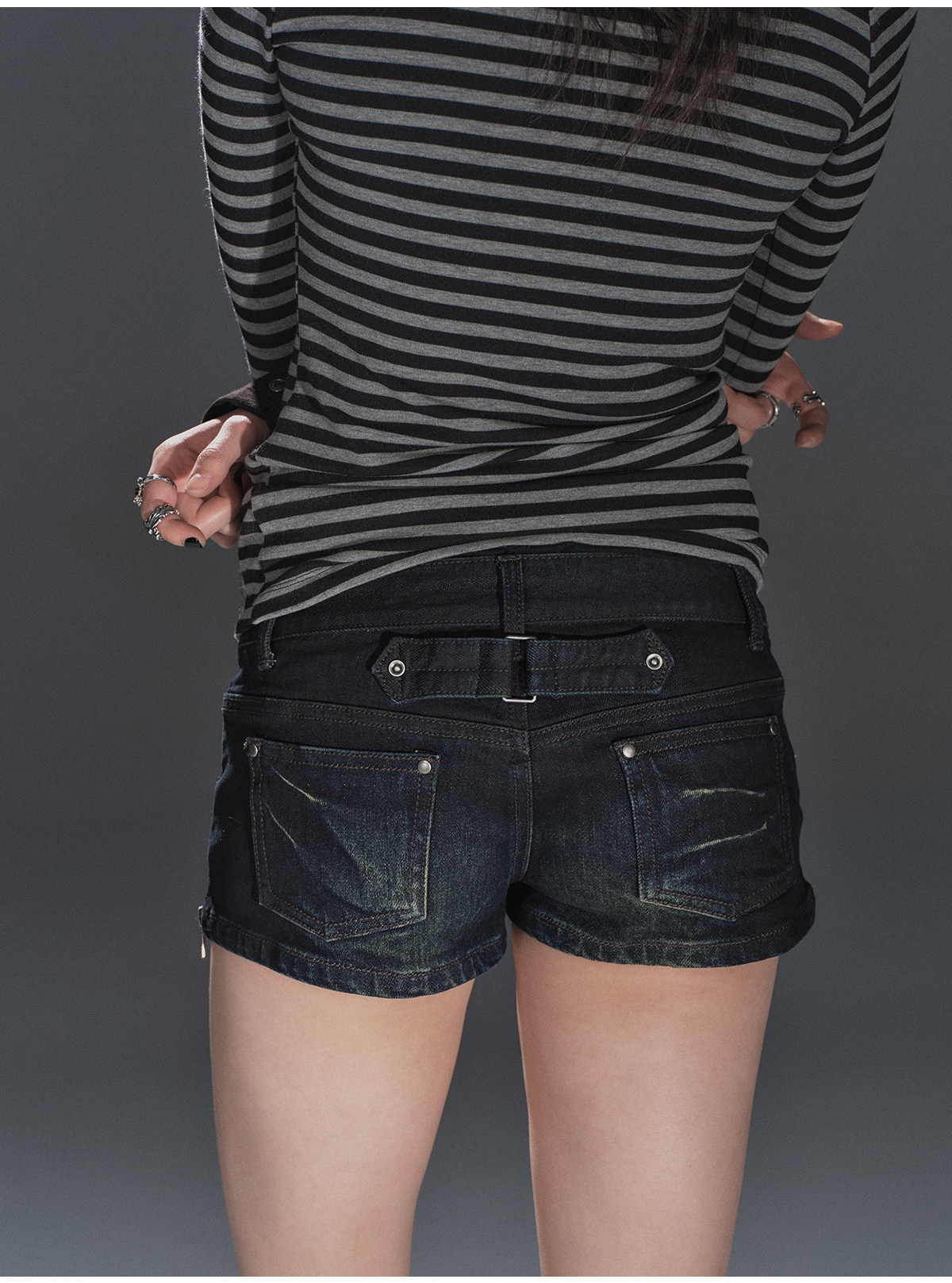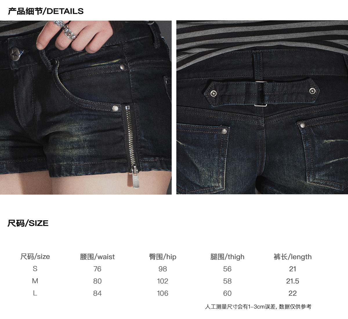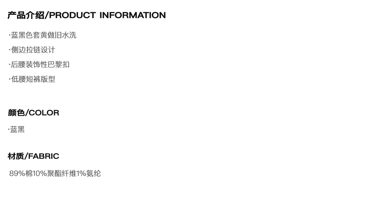 wearAndtear双侧开衩拉链猫须口袋洗水做旧蓝黑低腰修身牛仔短裤 [Original Page Link]