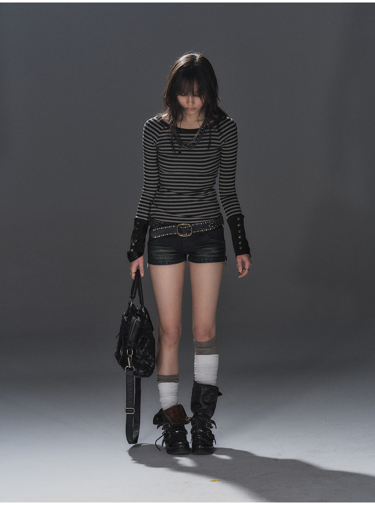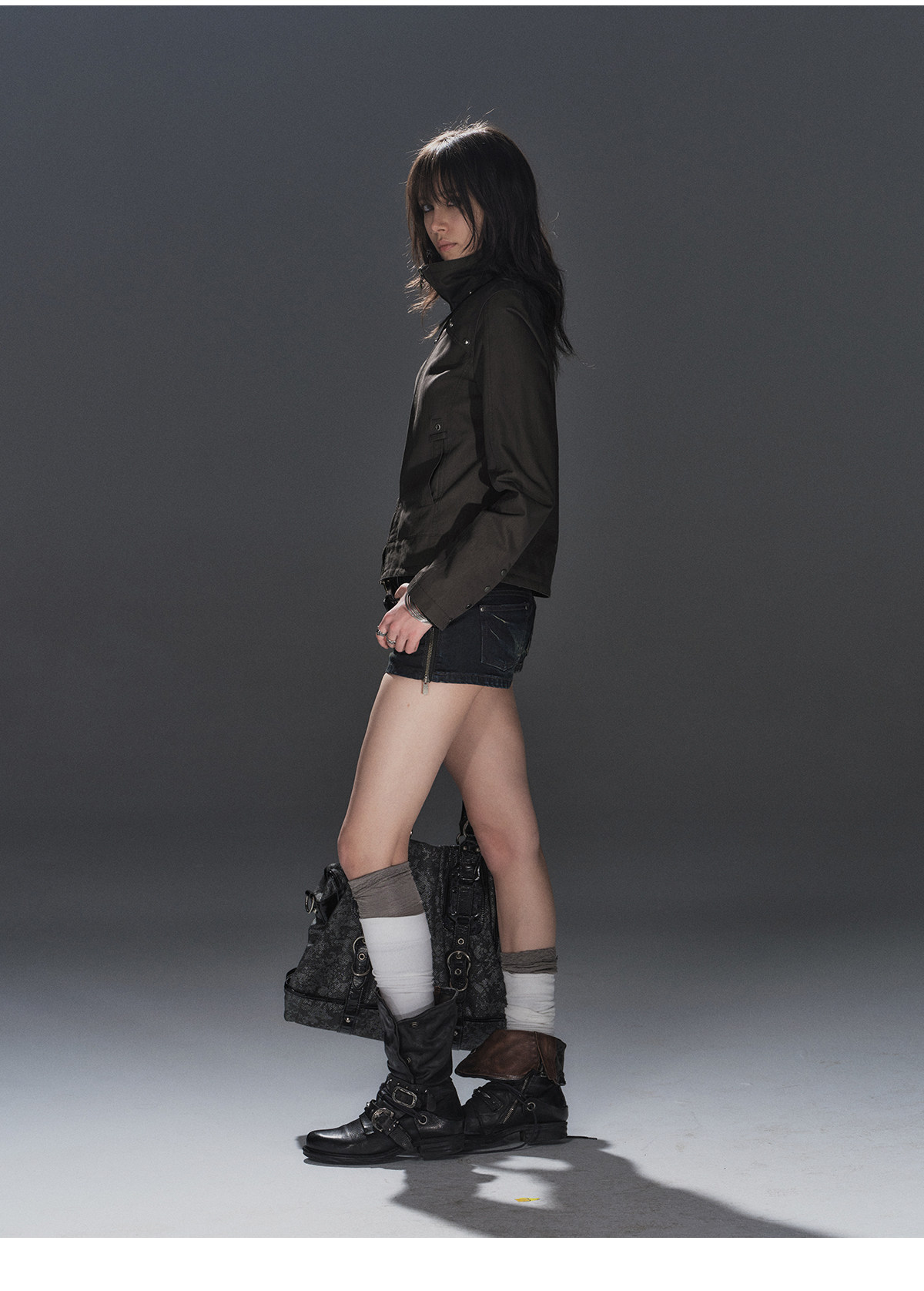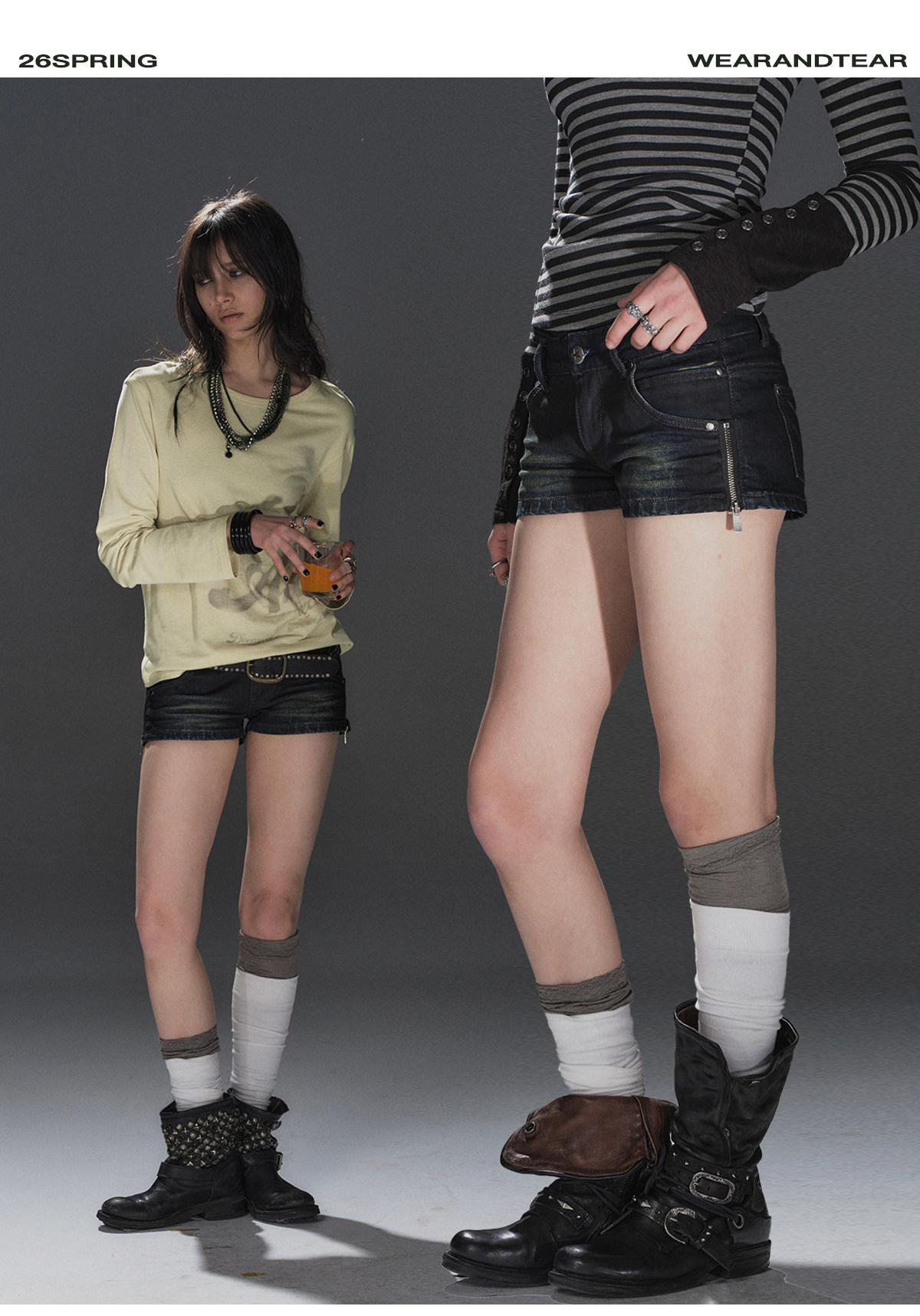 wearAndtear双侧开衩拉链猫须口袋洗水做旧蓝黑低腰修身牛仔短裤 [Original Page Link]
