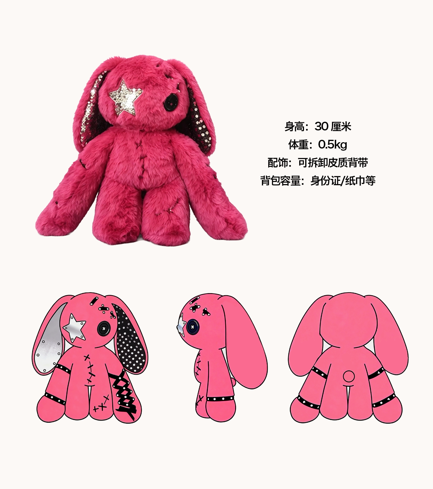 RivetDoll 原创设计毛绒垂耳兔亚文化暗黑Y2K兔子玩偶女生送闺蜜 [Original Page Link]