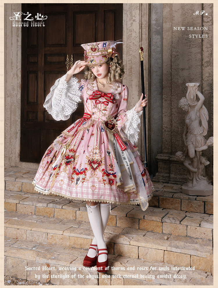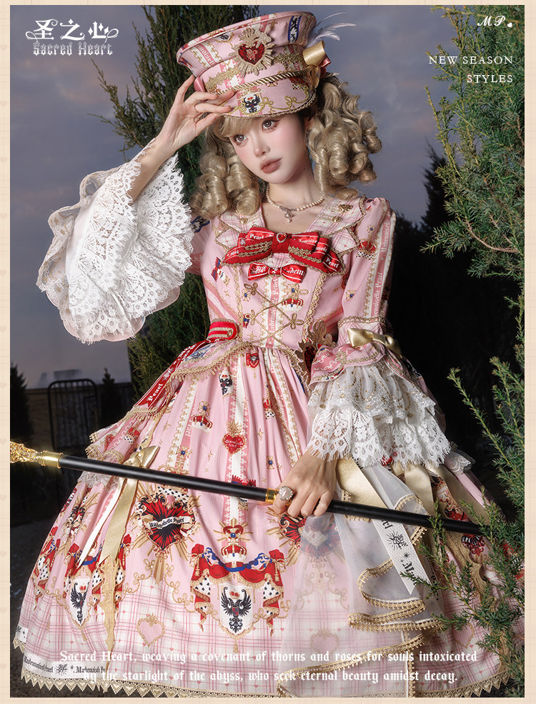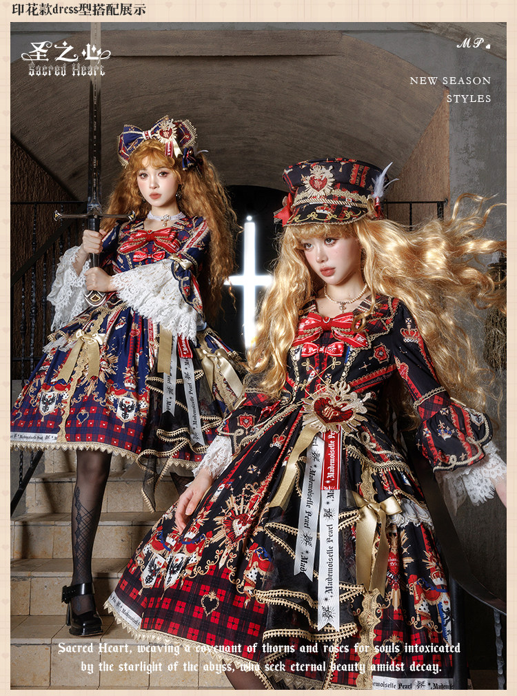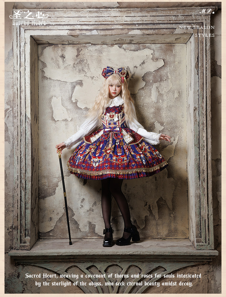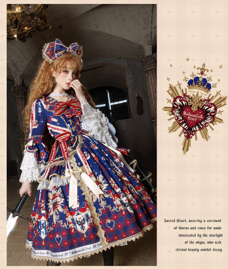 定金 圣之心 原创Lolita裙 华丽优雅修身印花款日常 花与珍珠匣 [Original Page Link]