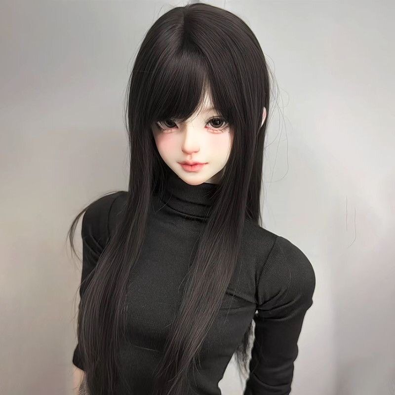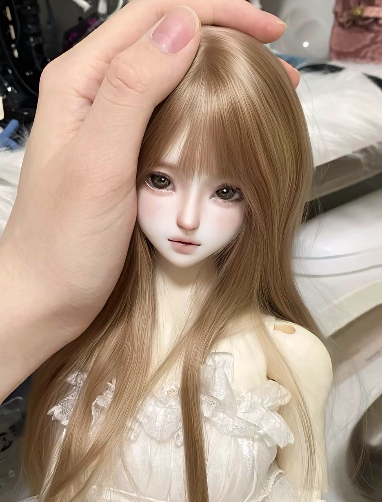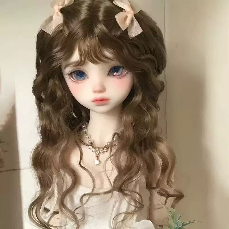 新款BJD假发高温发丝3分4分6分深棕色齐刘海水波纹长卷发假发毛坯 [Original Page Link]