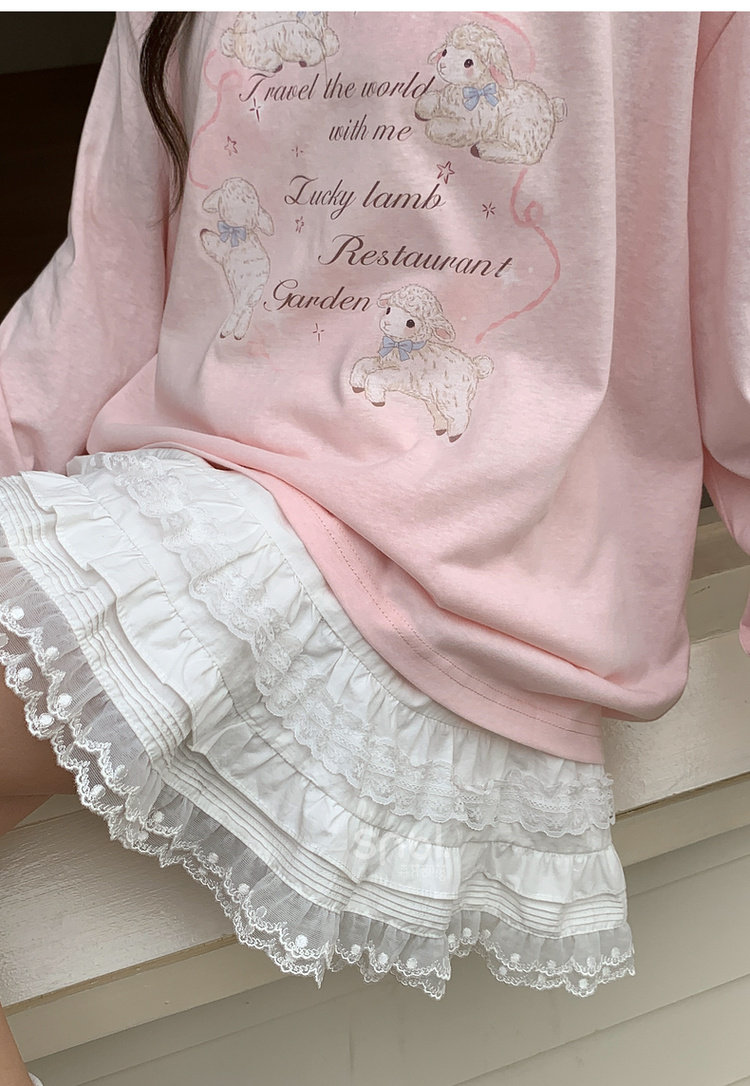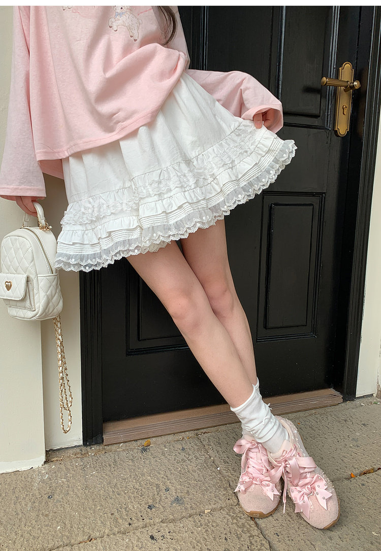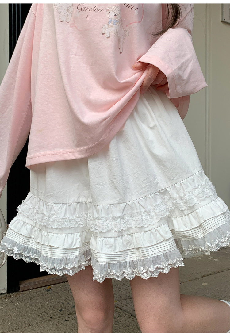 Mori Girl Style Sweet Lace Layered Triangle Design High Waisted Midi Skirt Women's New Versatile Pure Cotton Short Skirt