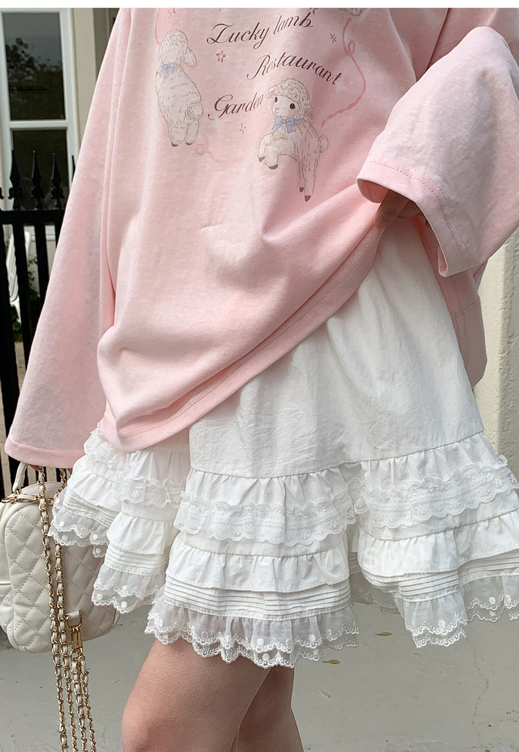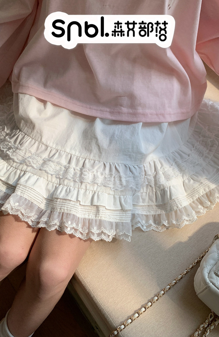 森女部落甜美风蕾丝层叠花边设计感高腰半身裙女新款百搭纯棉短裙 [Original Page Link]