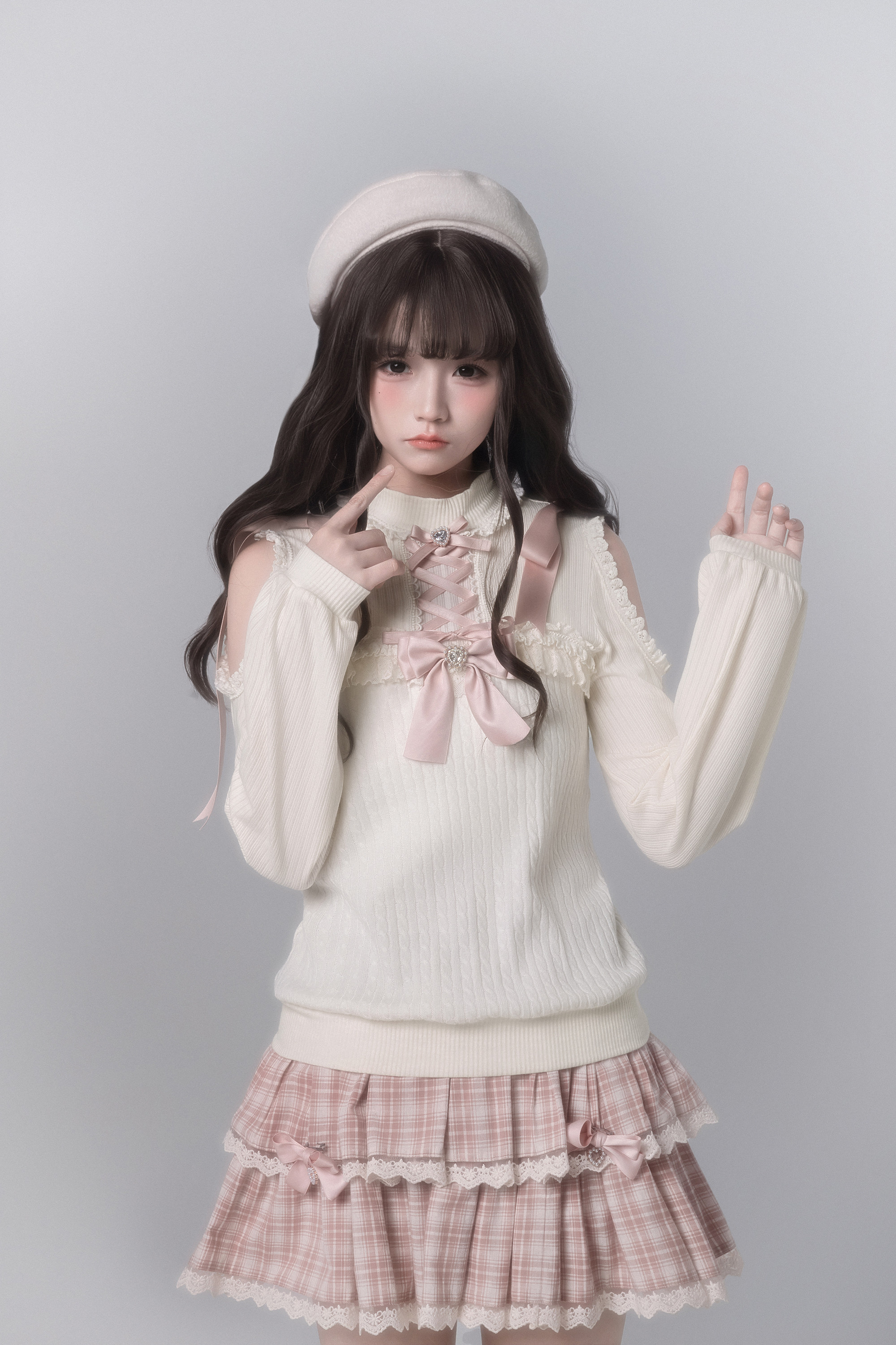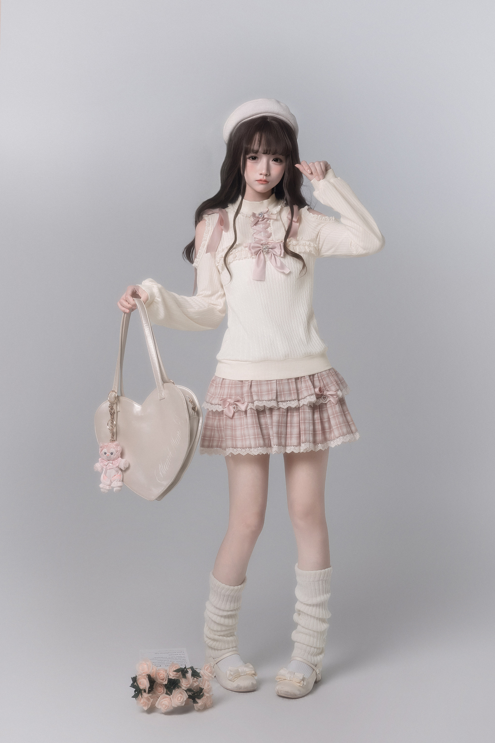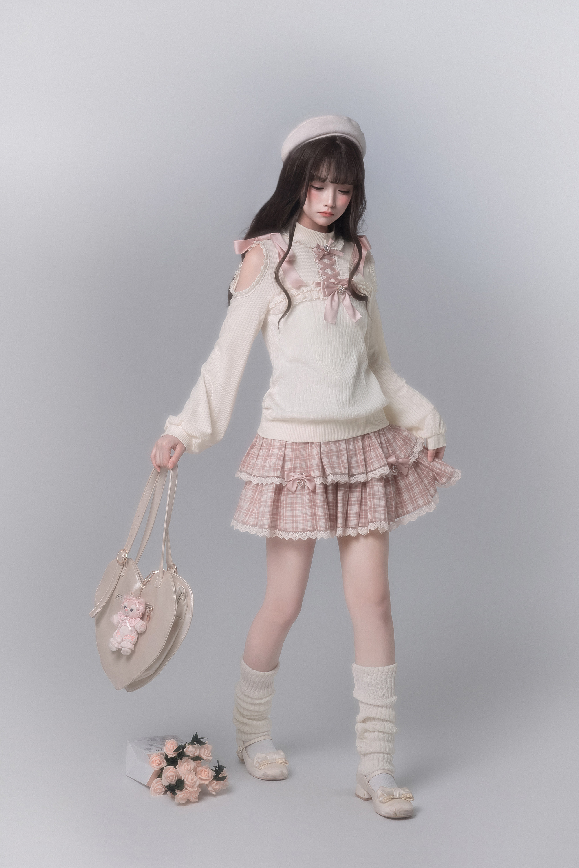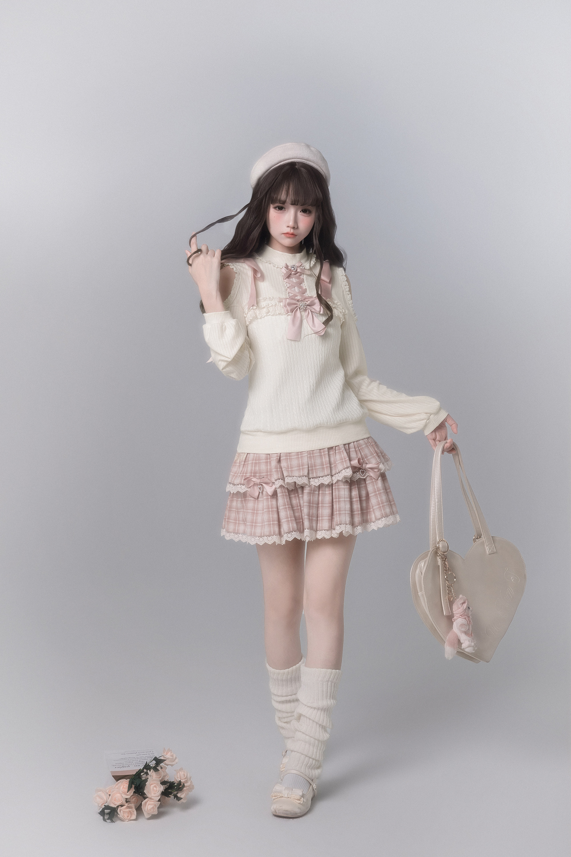 胡桃木JK【春樱时】原创日系针织衫少女感樱花粉格子千金感可爱 [Original Page Link]