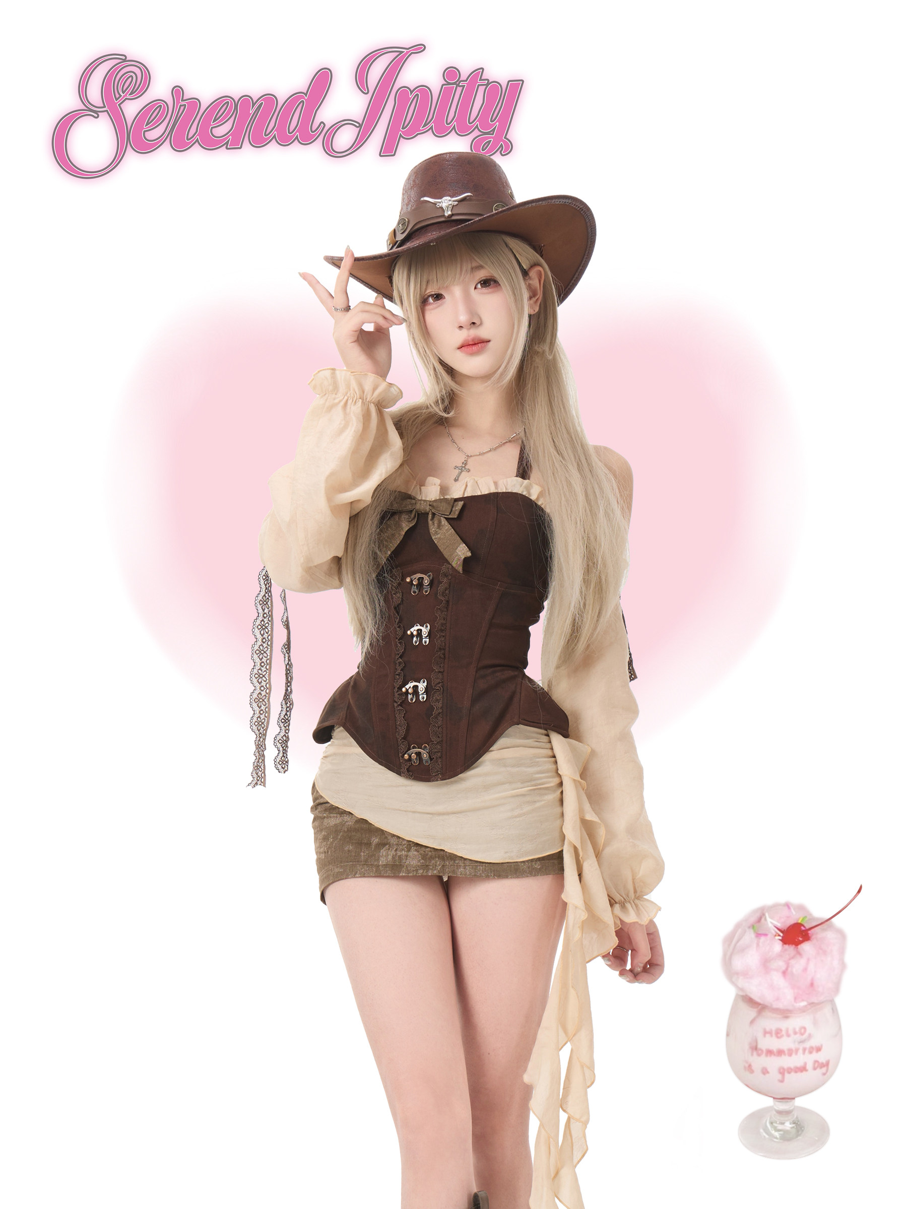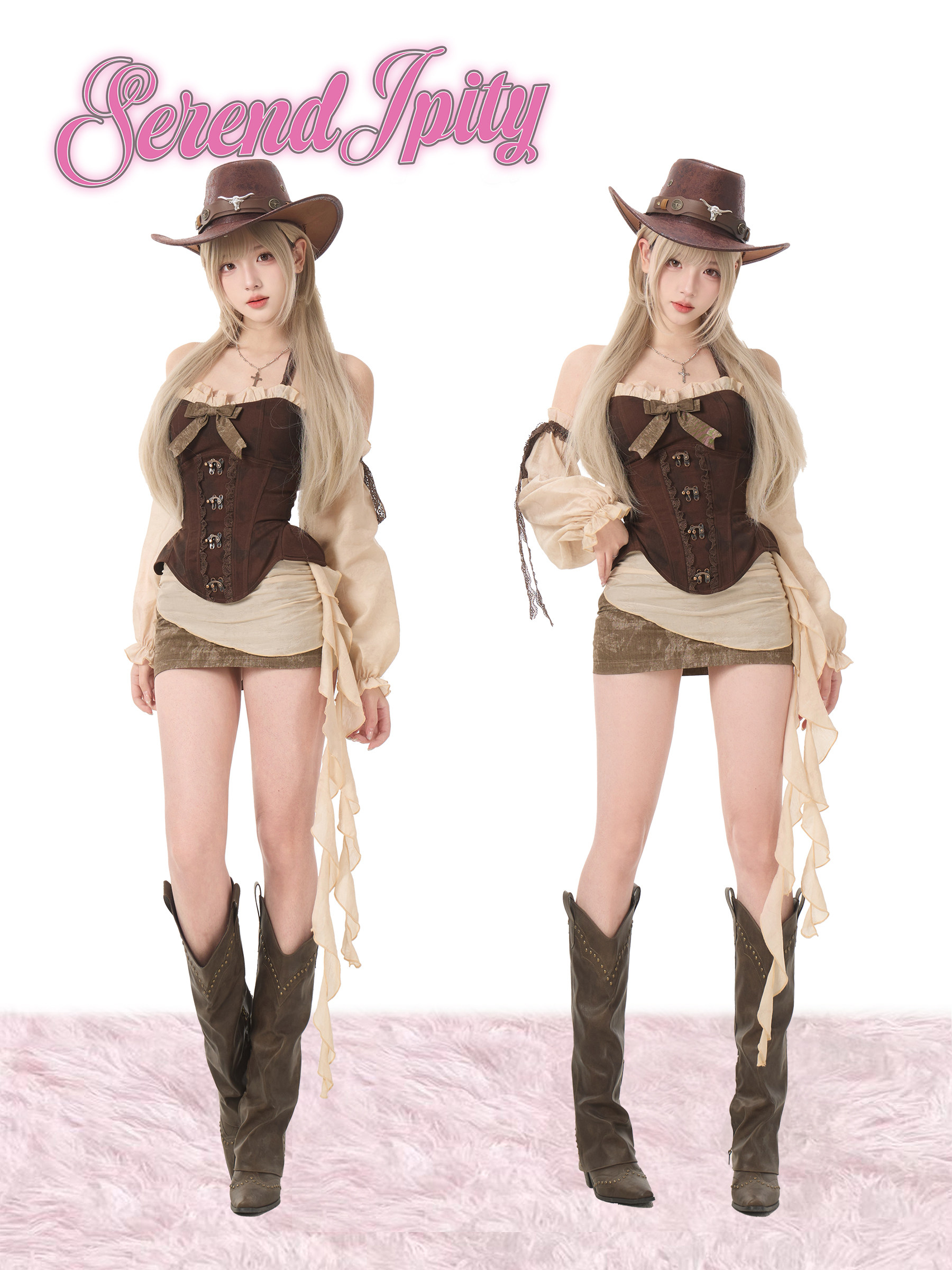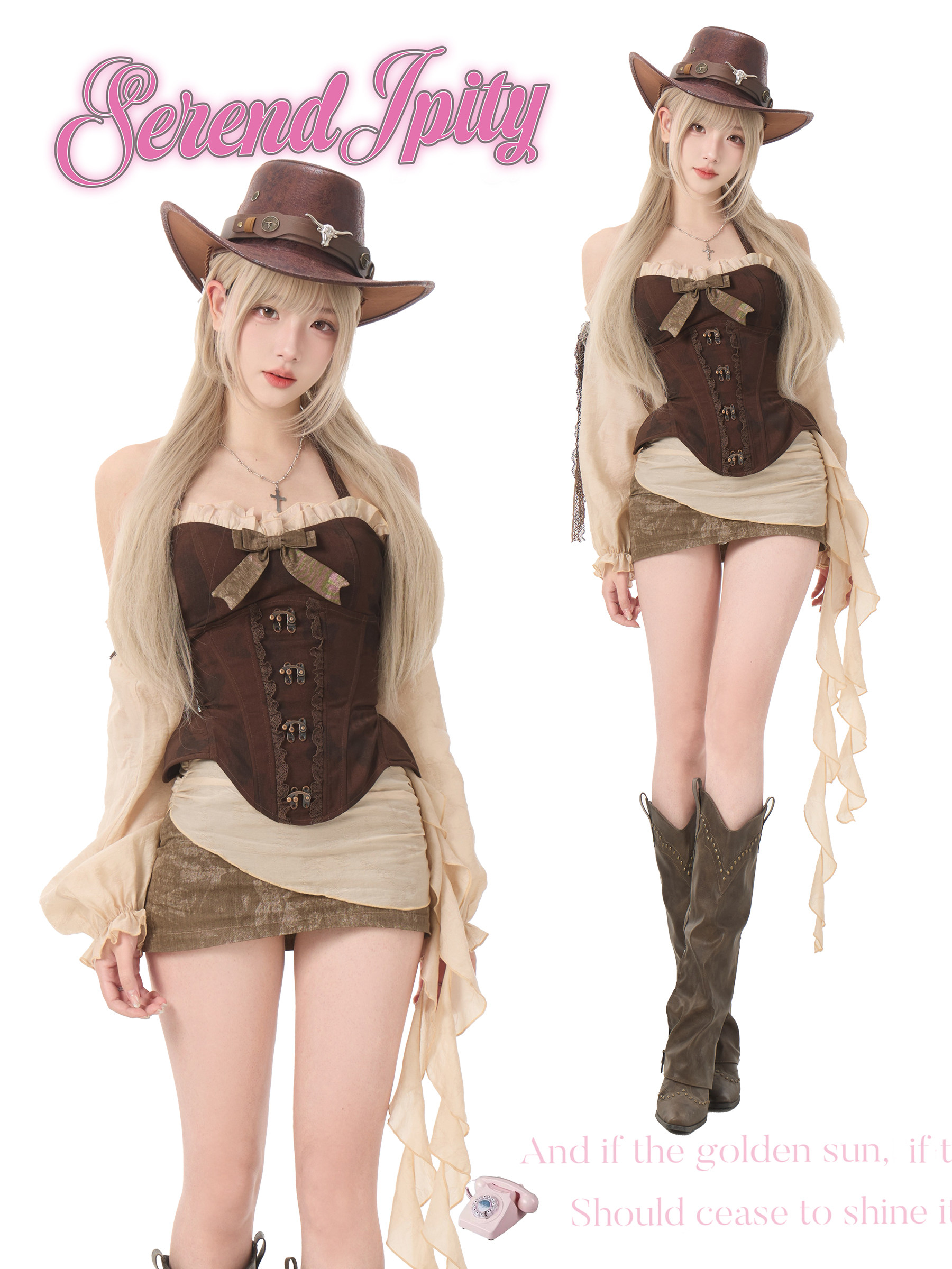少女椰子【角色系】沙丘旧梦 深棕假两件扎染上衣+浅棕拼接包臀裙 [Original Page Link]