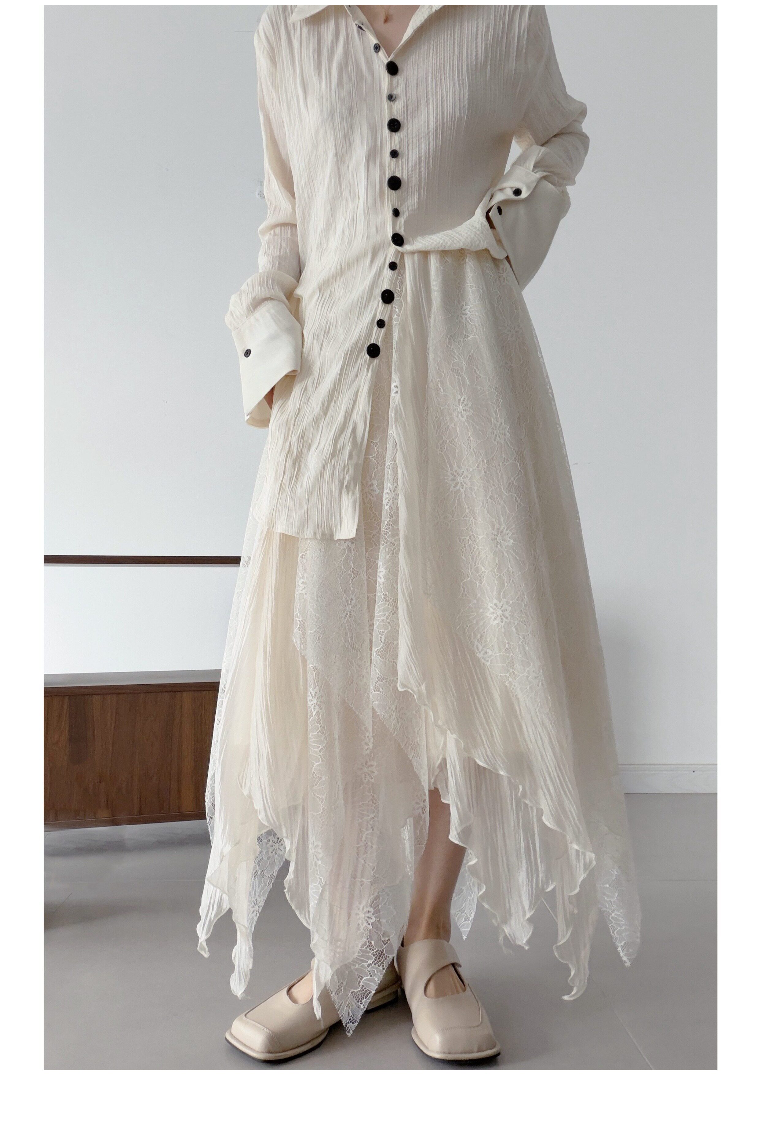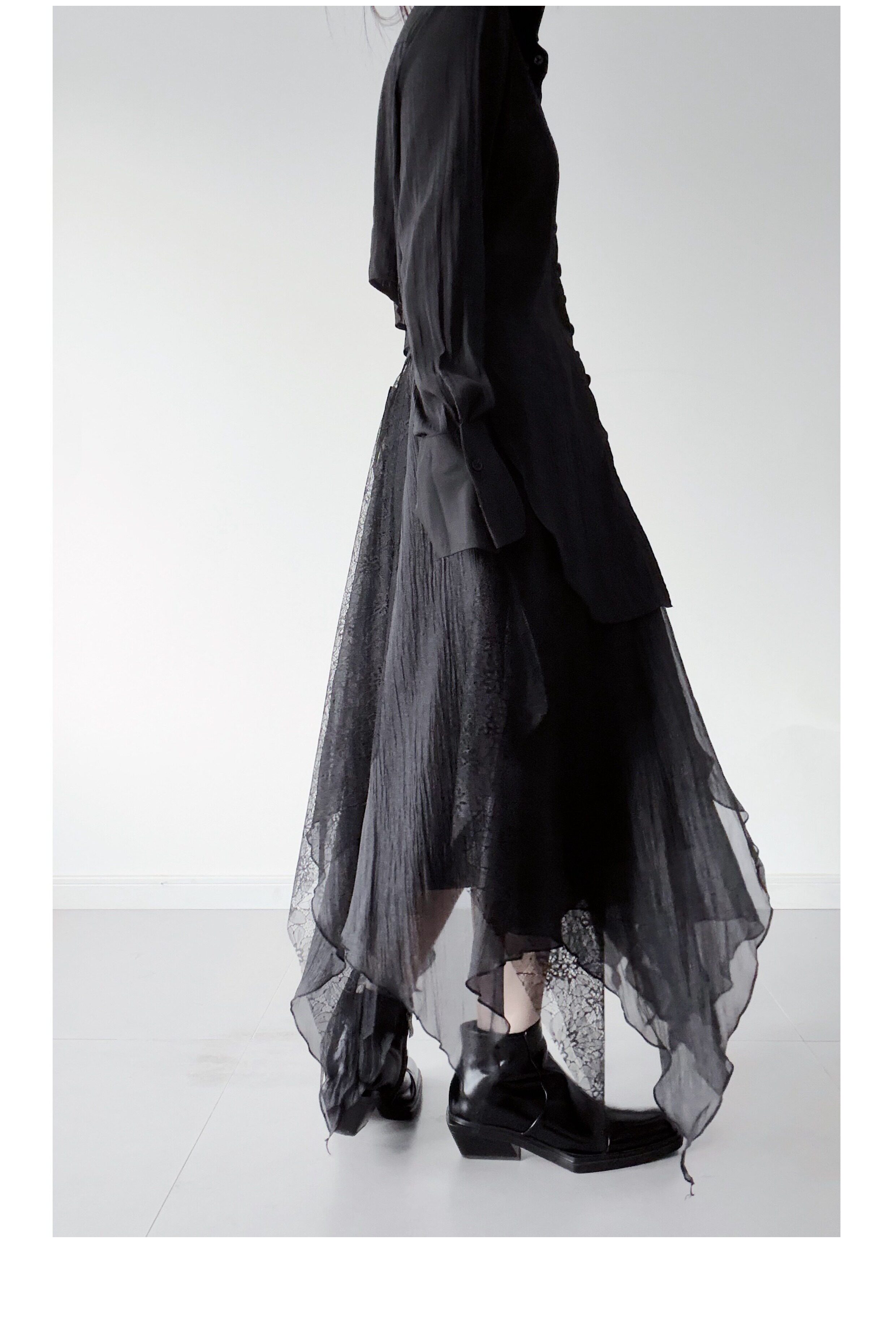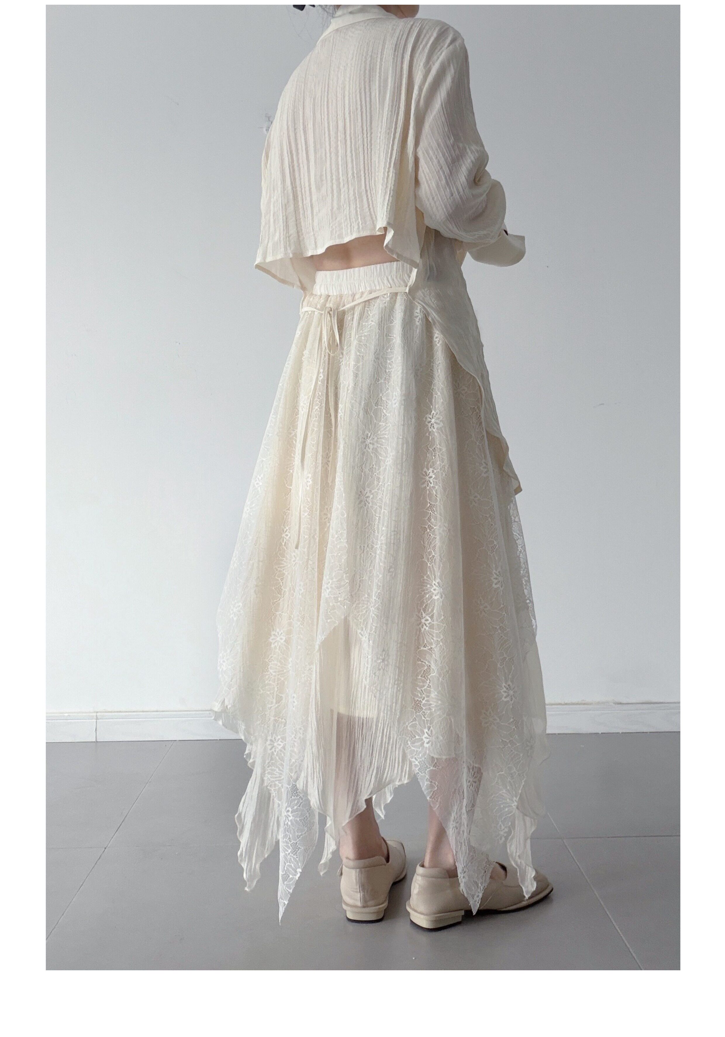 浮木兮/仙气飘飘多层次蕾丝不规则半身裙小众设计感提花大摆裙 [Original Page Link]