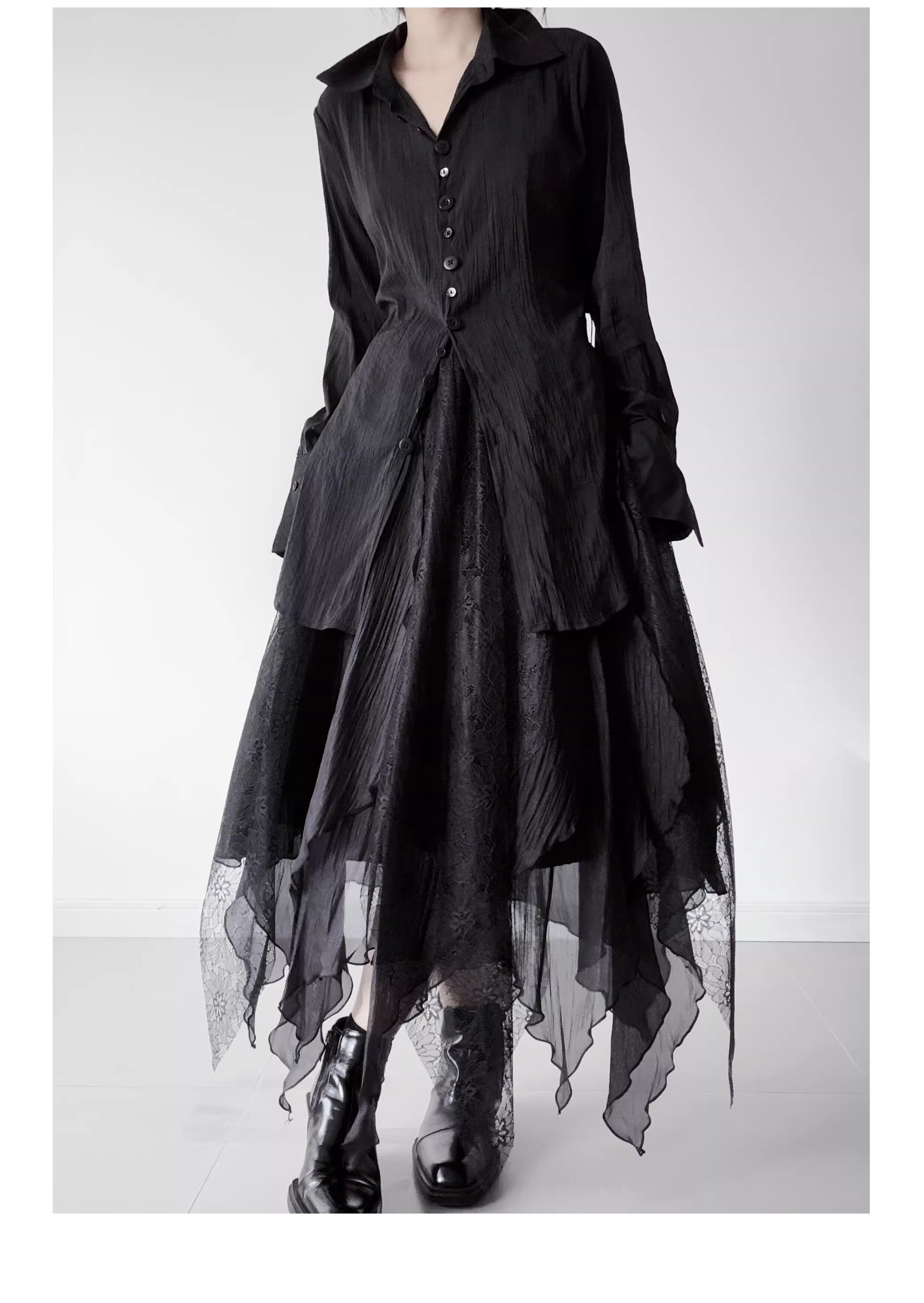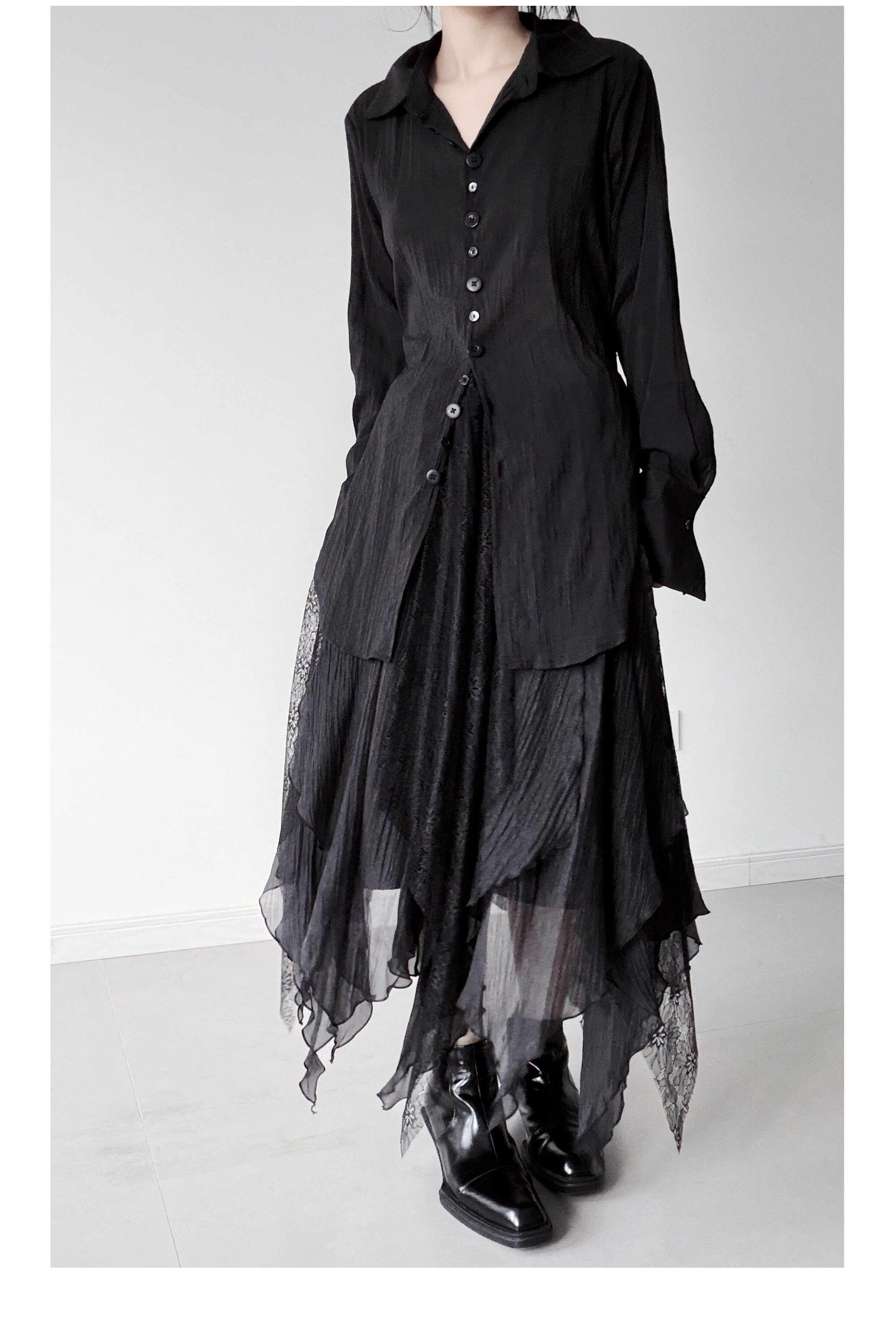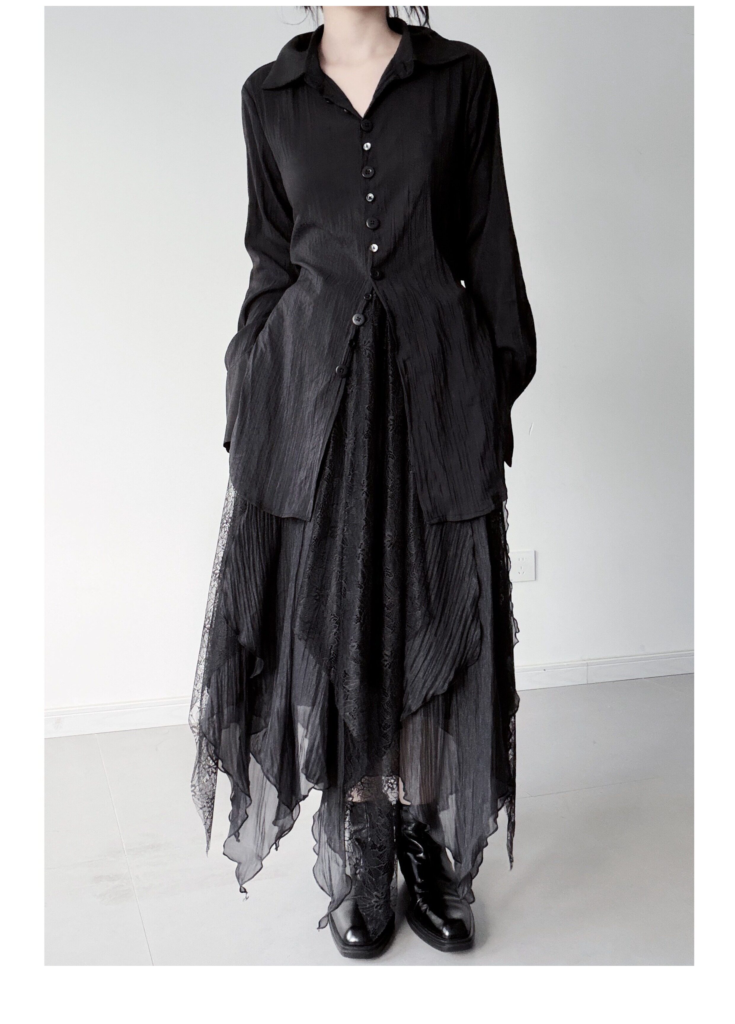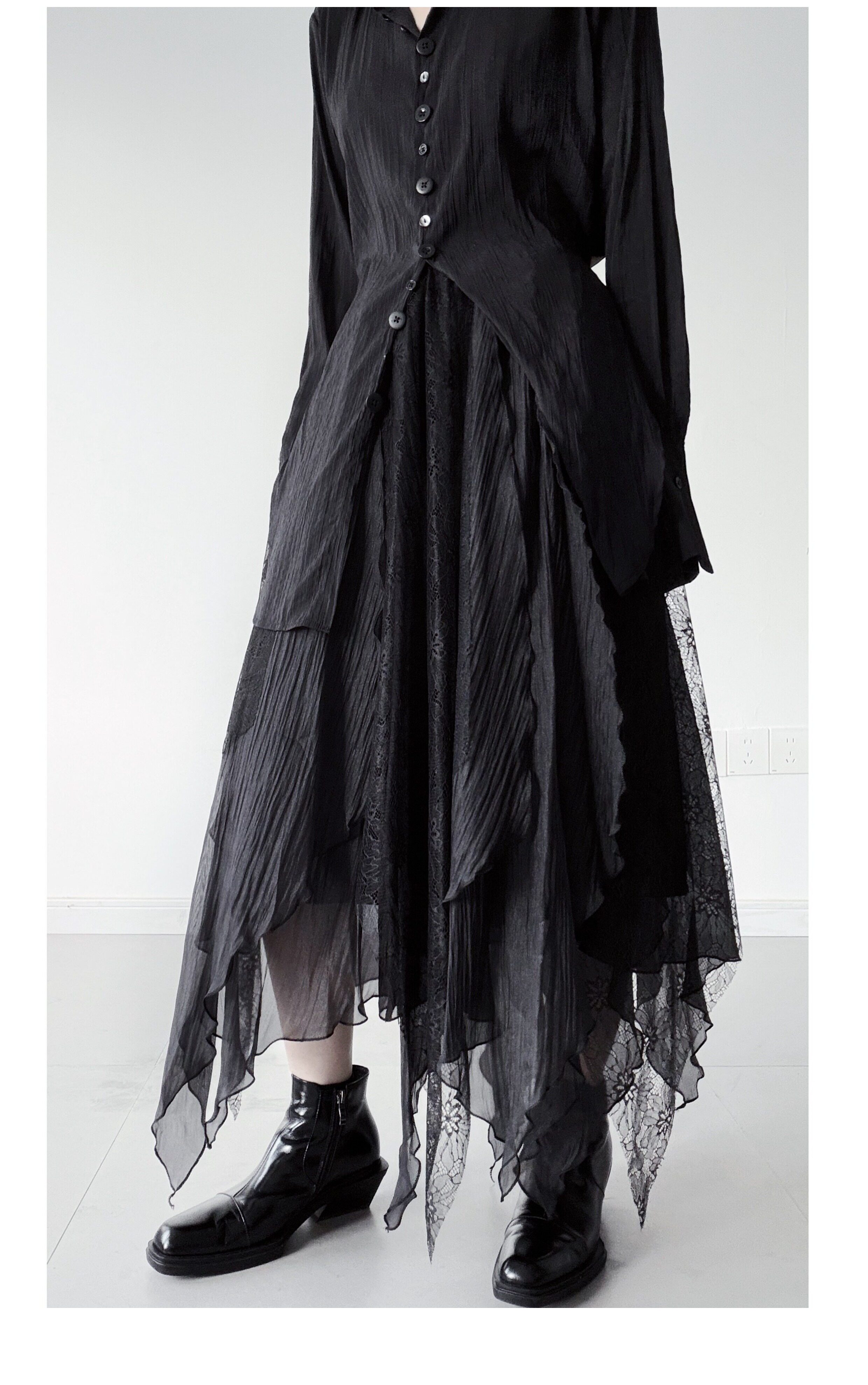 浮木兮/仙气飘飘多层次蕾丝不规则半身裙小众设计感提花大摆裙 [Original Page Link]
