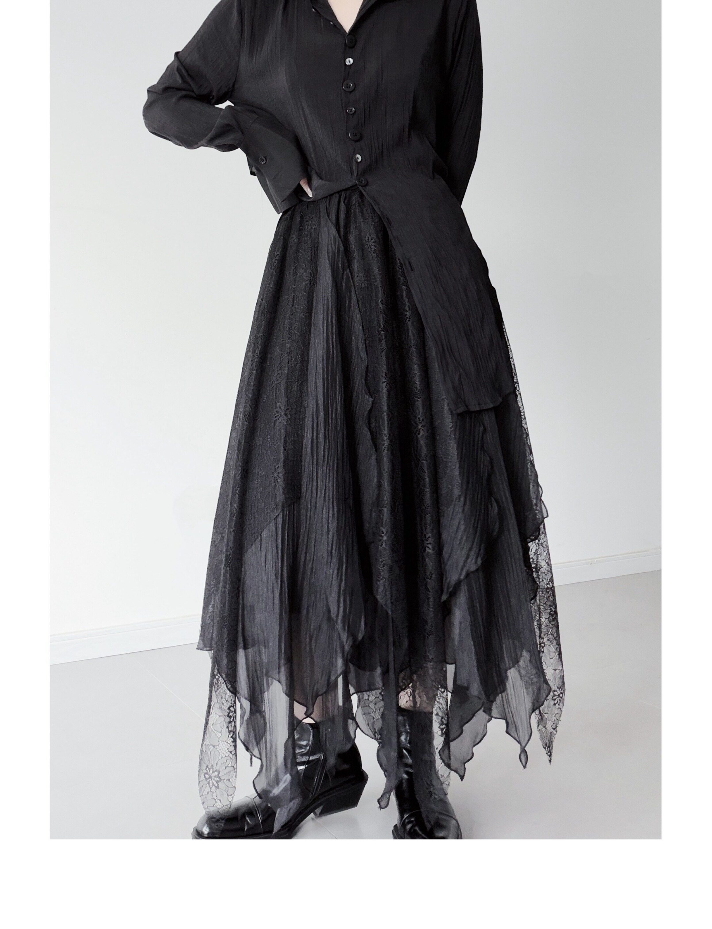 Fumuxi / Ethereal Multi-Layer Lace Irregular Midi Skirt, Niche Design, Jacquard Full Skirt
