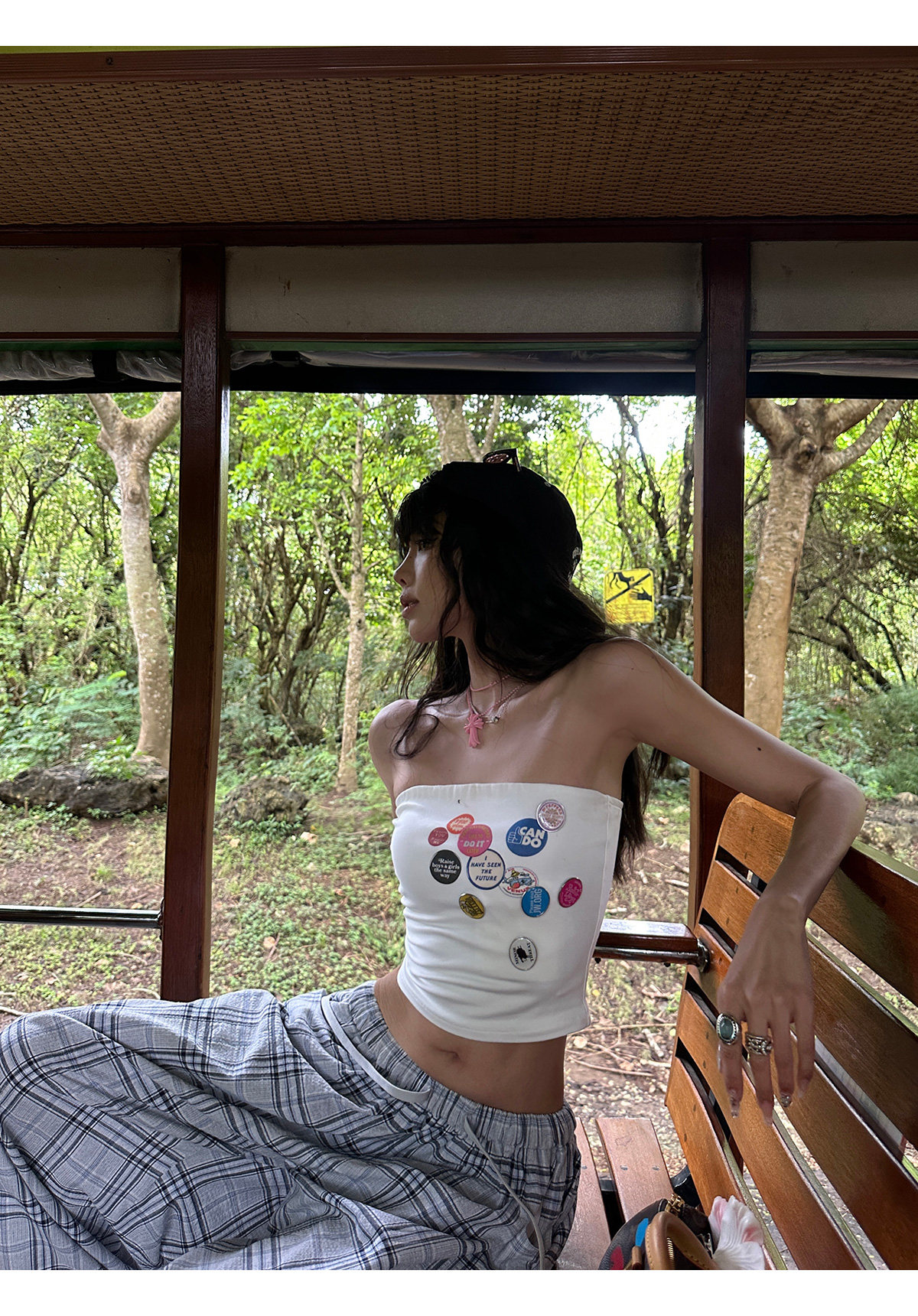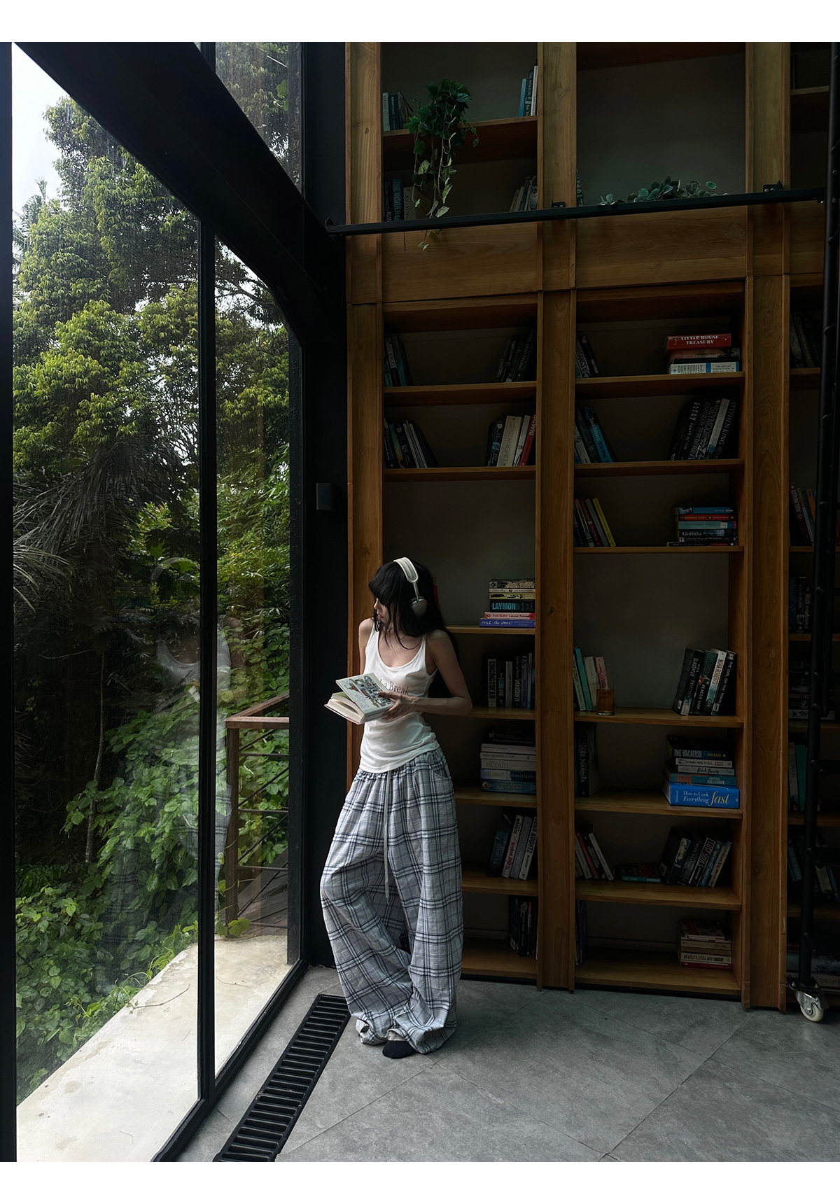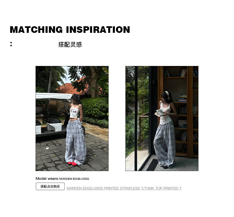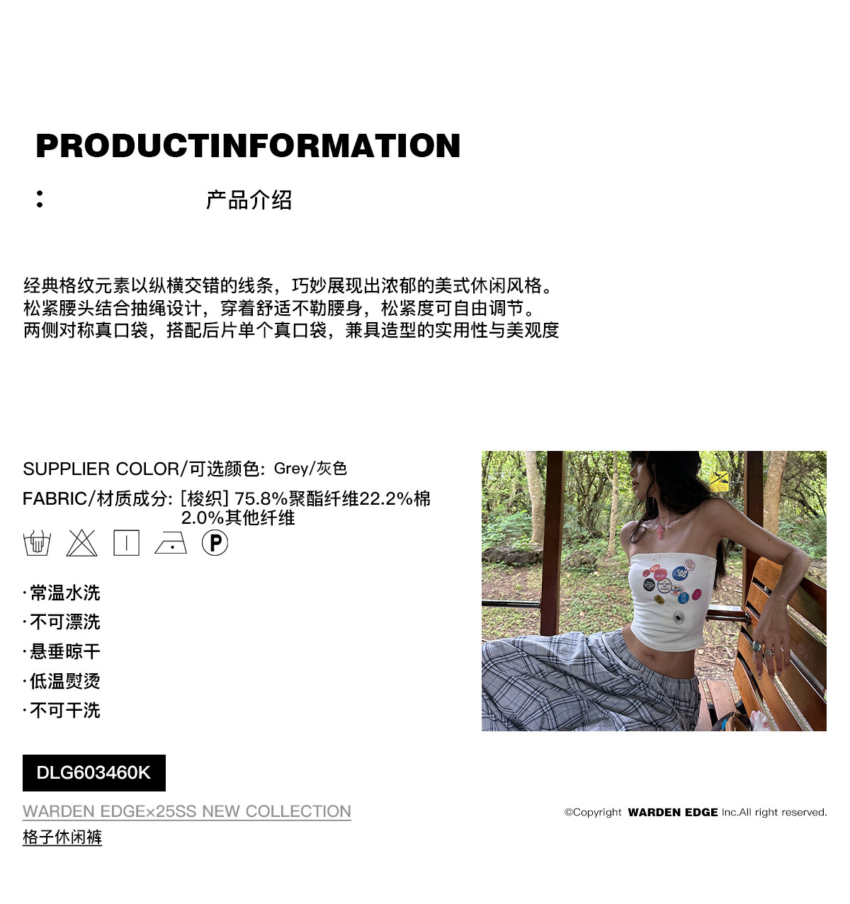 韩好甜WARDEN EDGE郊野漫步 灰色格子休闲裤女夏宽松低腰阔腿长裤 [Original Page Link]