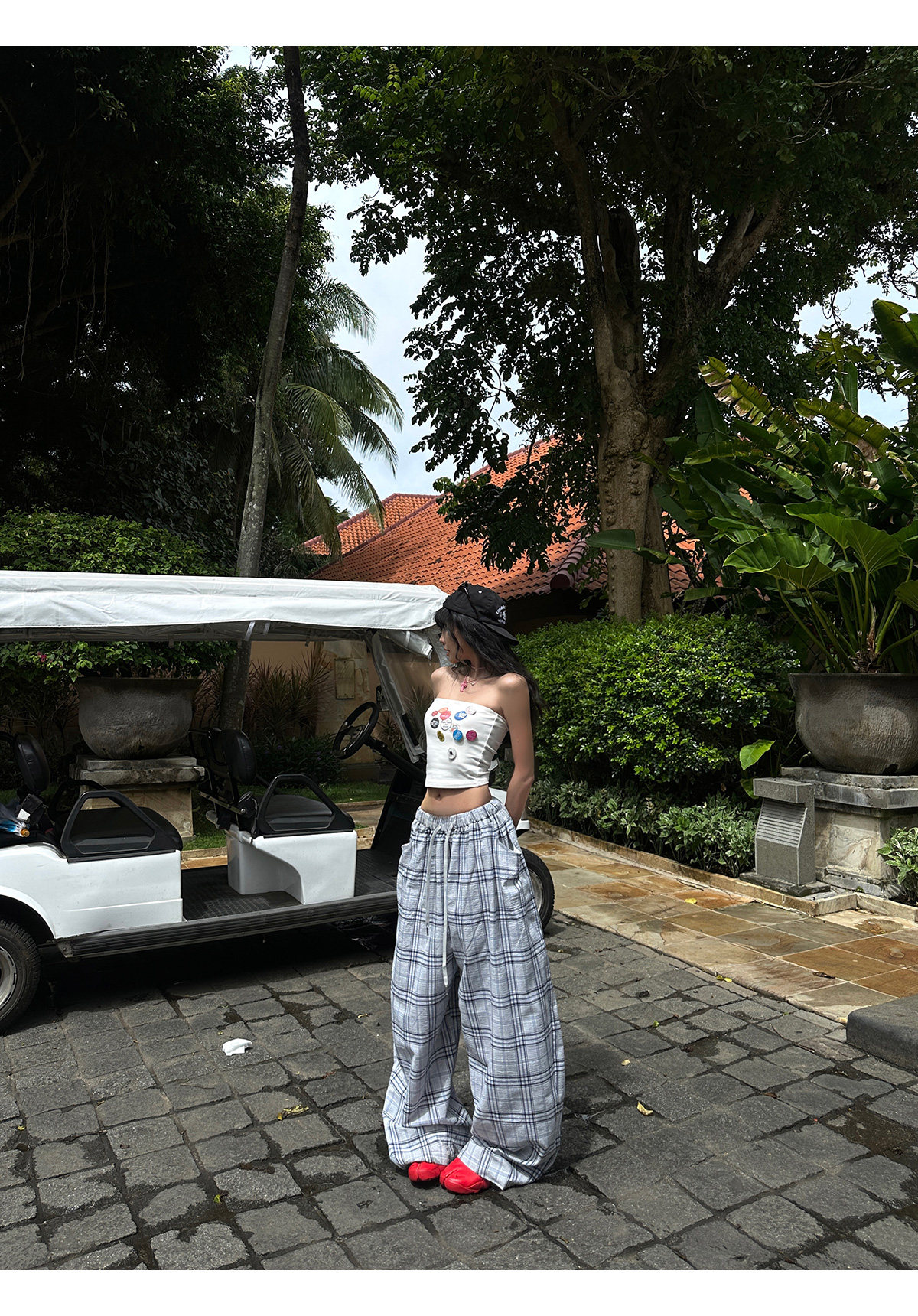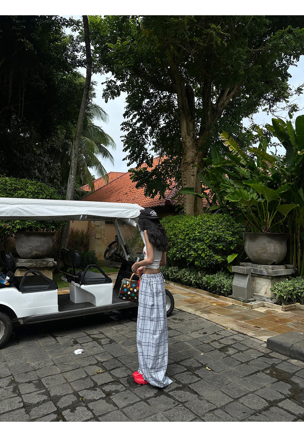 Han Haotian Warden Edge Countryside Stroll Gray Plaid Casual Pants Women's Summer Loose Low-Waisted Wide-Leg Trousers