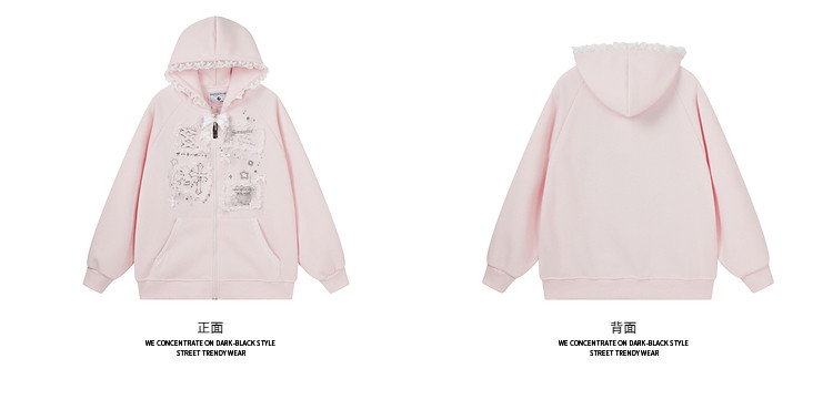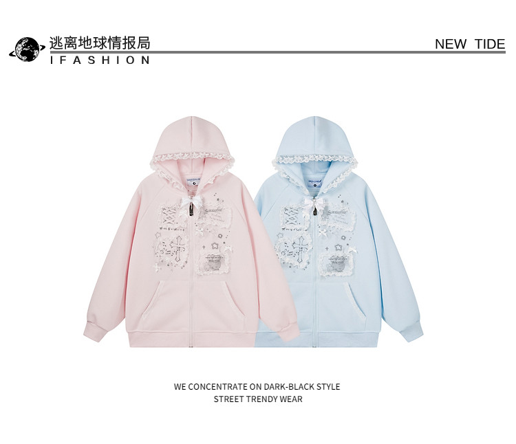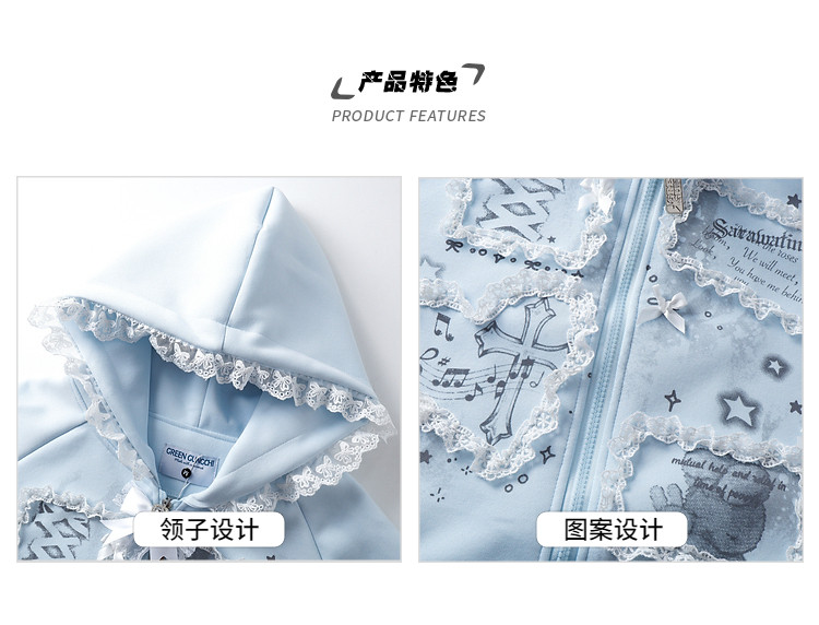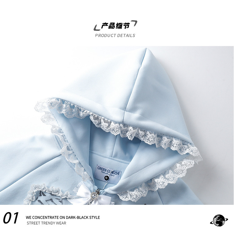 浅蓝蕾丝拼接连帽开衫卫衣女2026新款宽松显瘦减龄百搭超好看外套 [Original Page Link]