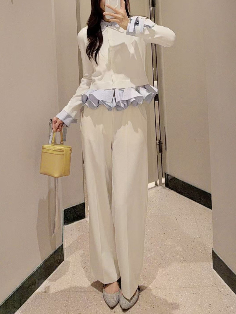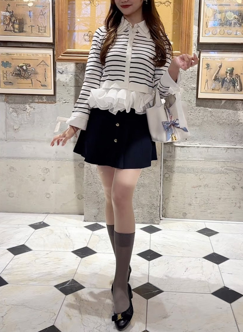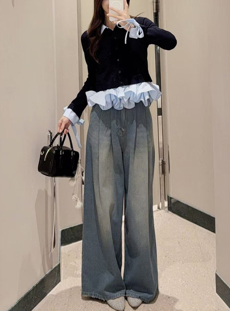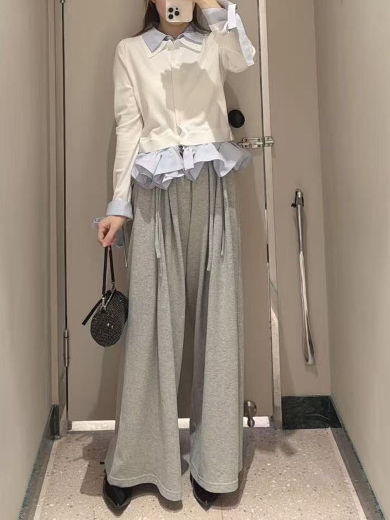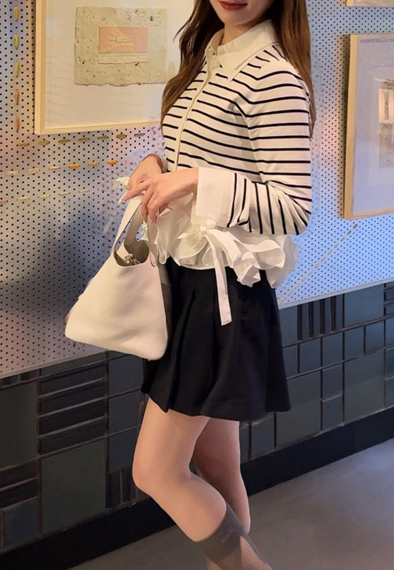 月牙美26春夏新品翻领拼色蝴蝶结荷叶边下摆针织衫A25243 [Original Page Link]