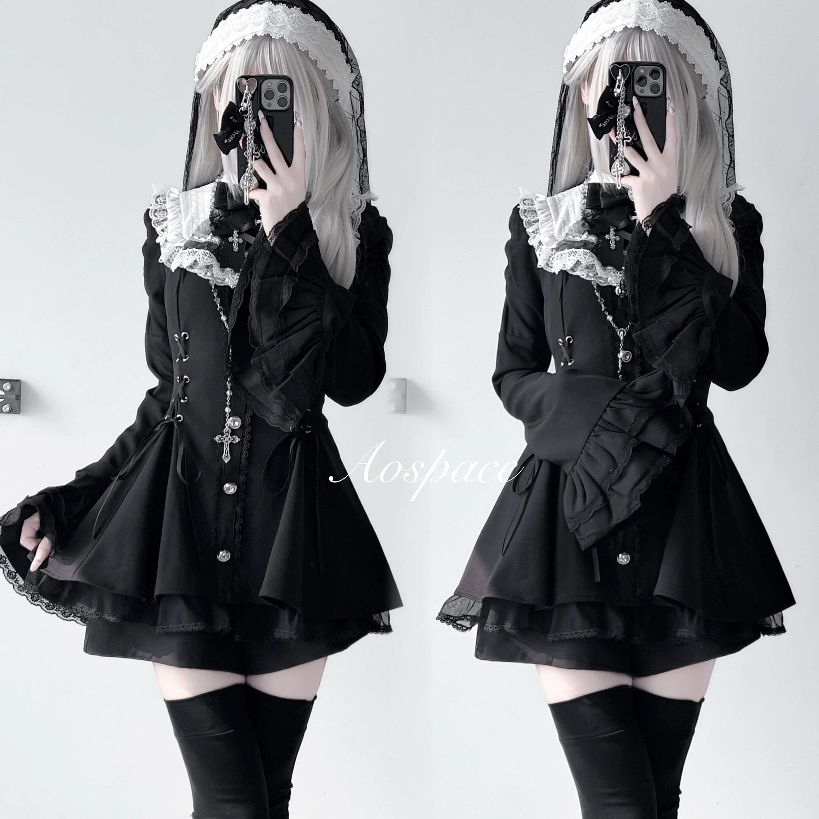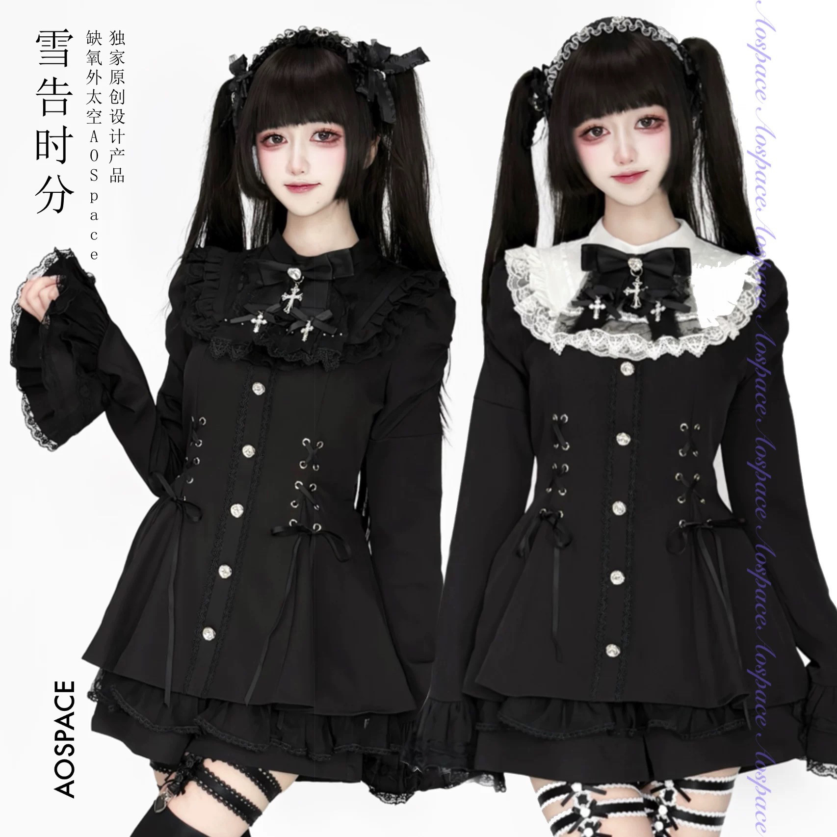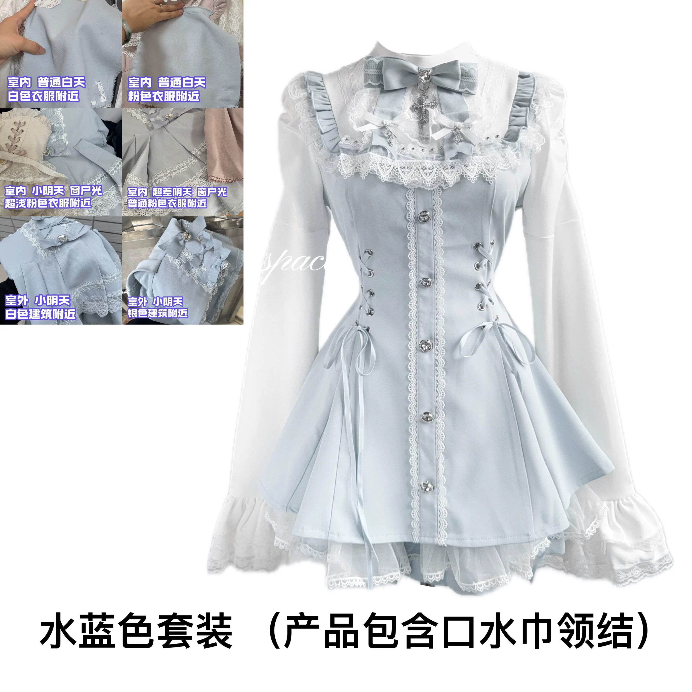 缺氧外太空【雪告时分】原创喇叭袖口水巾收腰百搭纯色连衣套装 [Original Page Link]