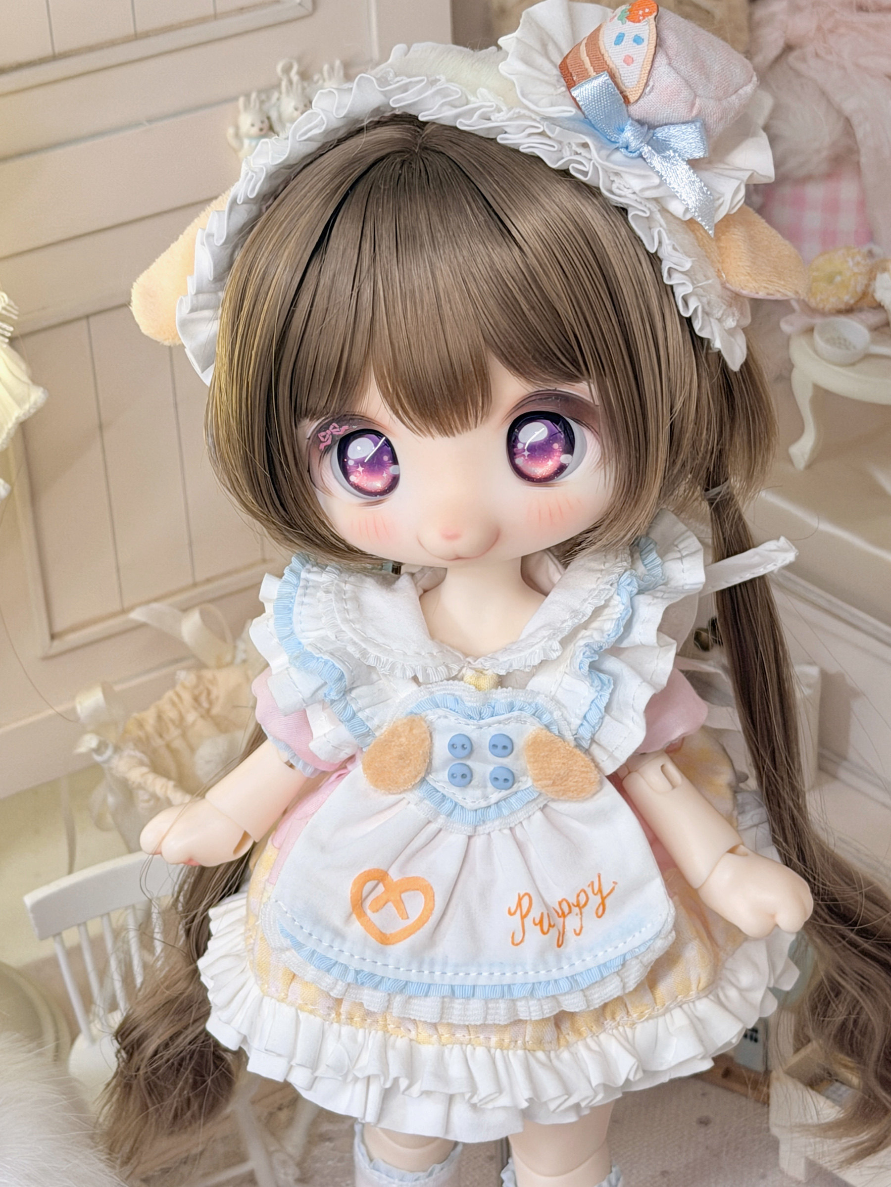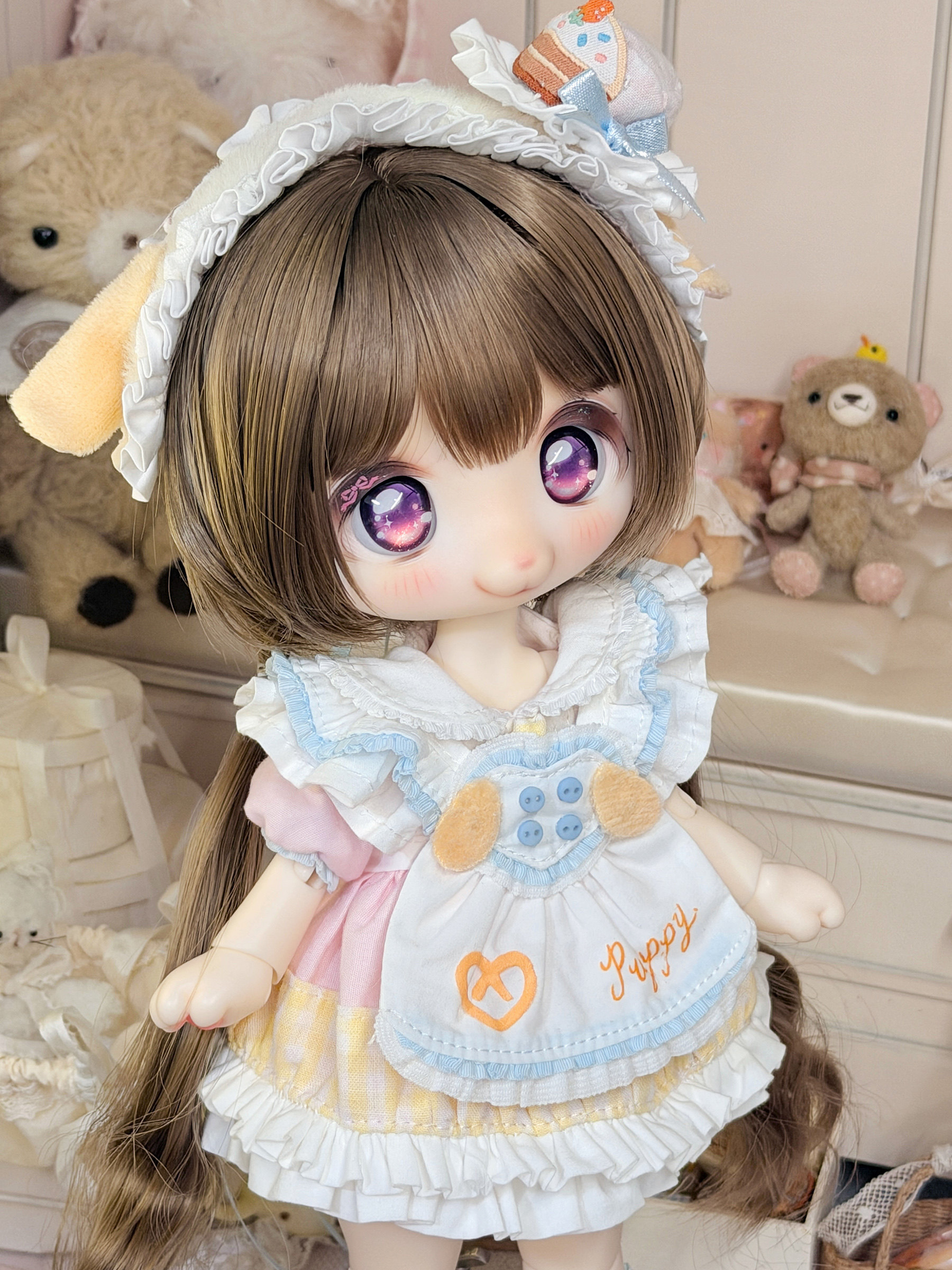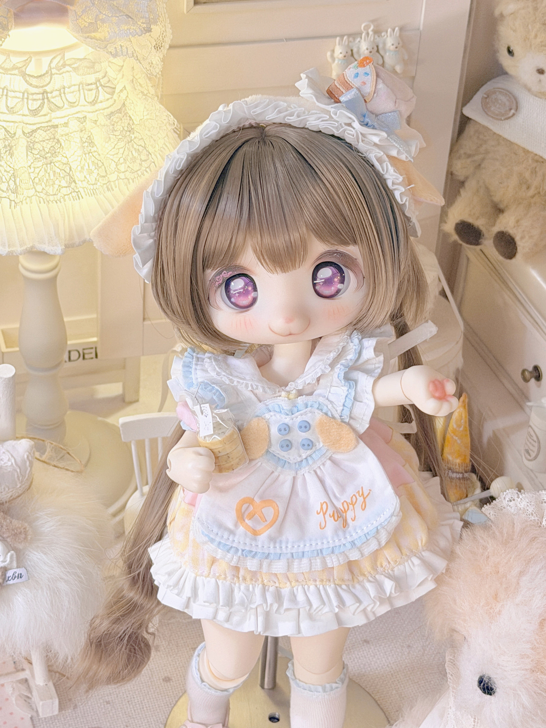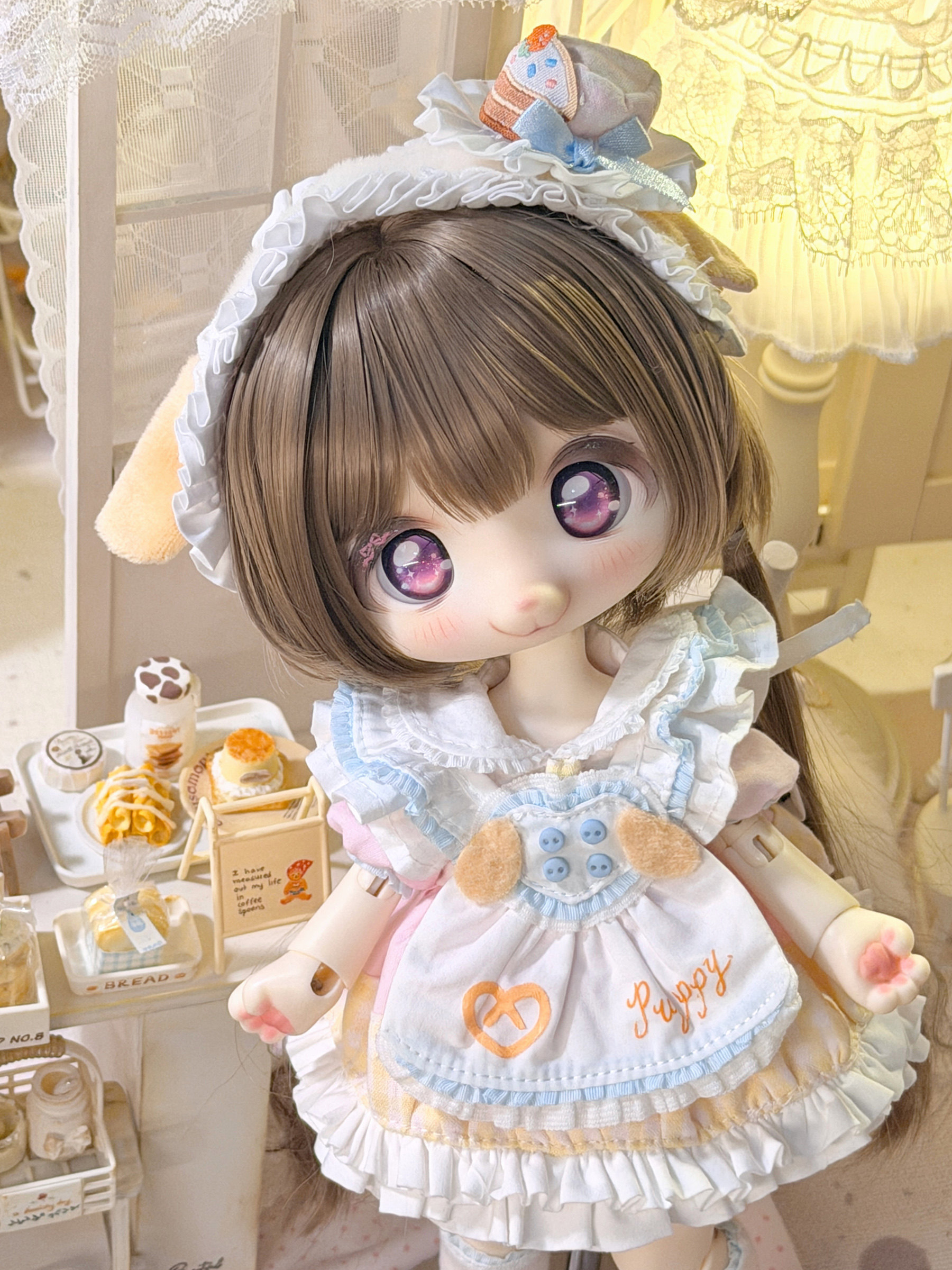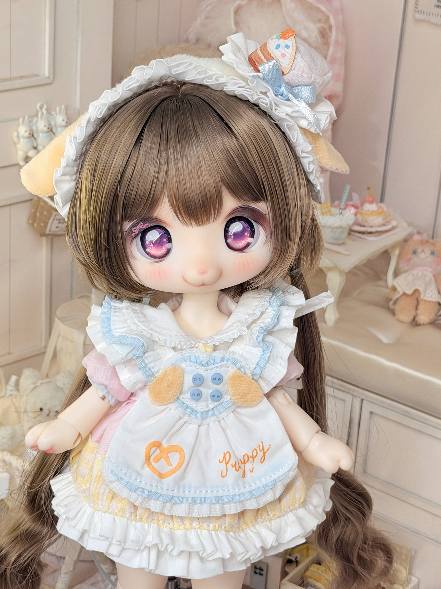 Three-piece BJD doll outfit, cheese puppy, sweet, gentle, cute dessert animal clothing set.