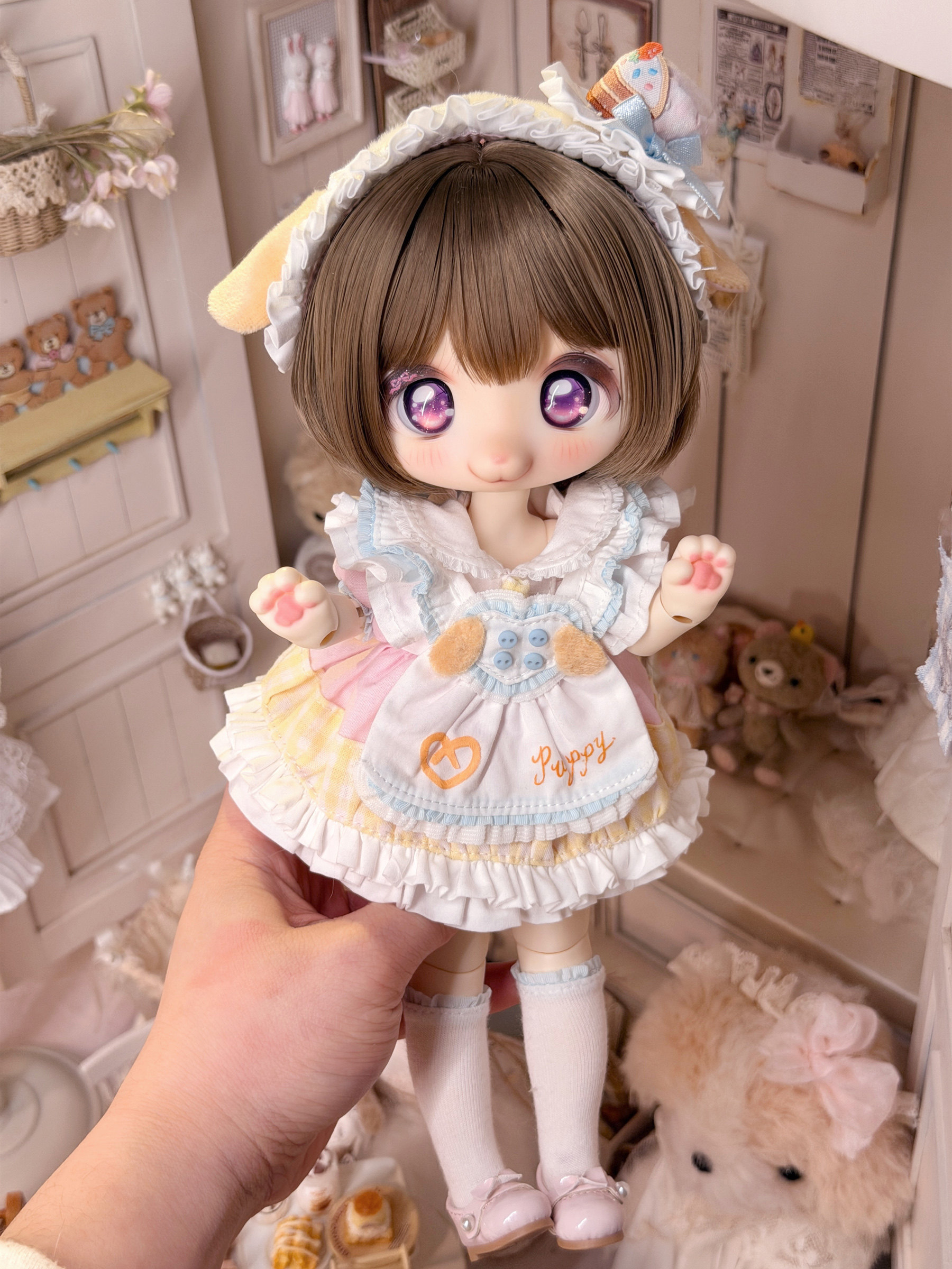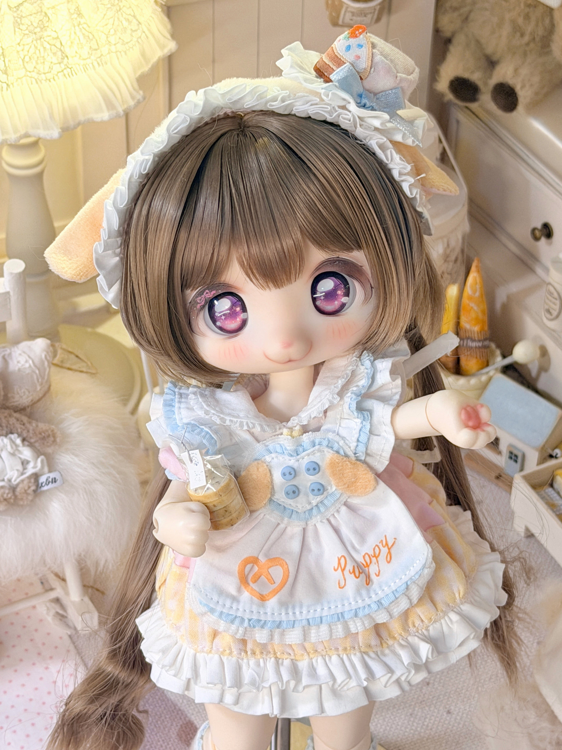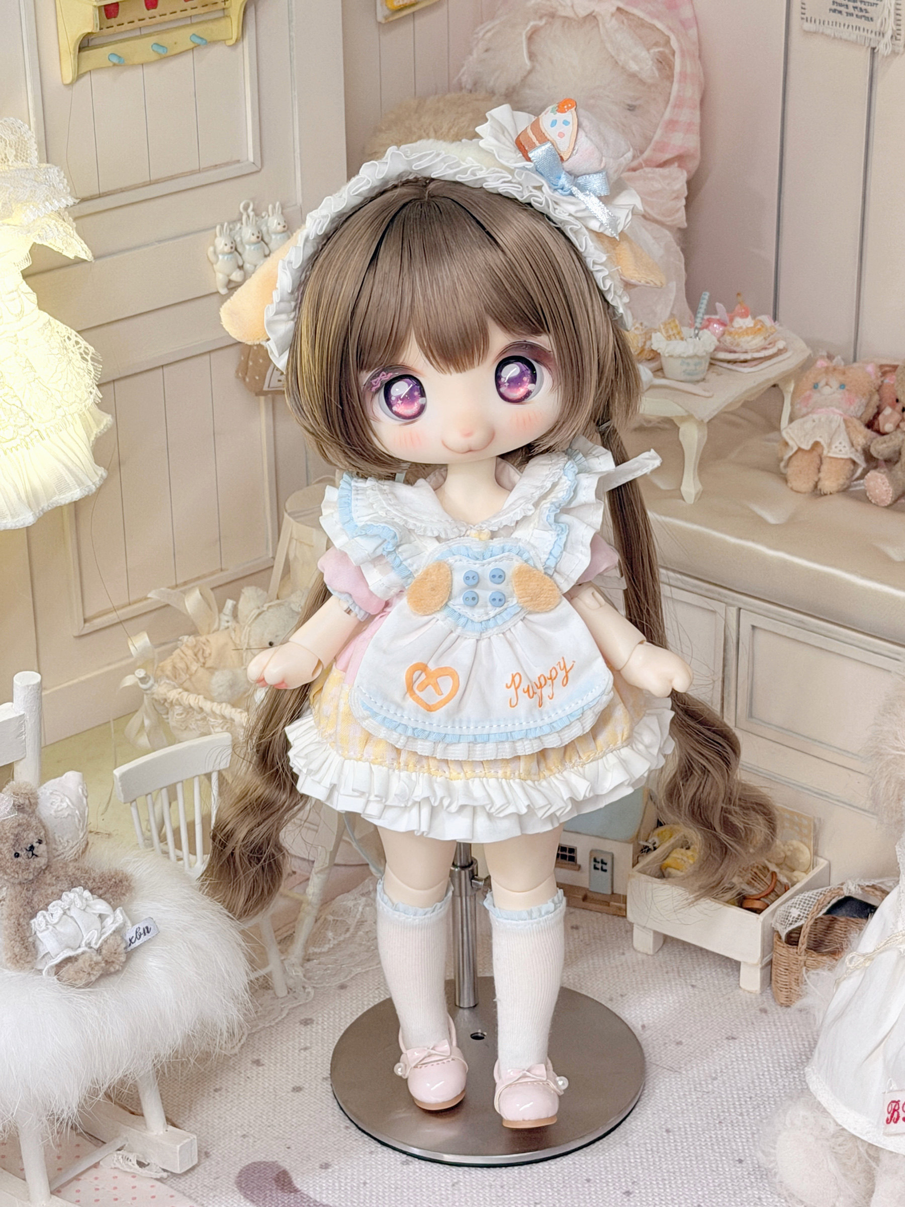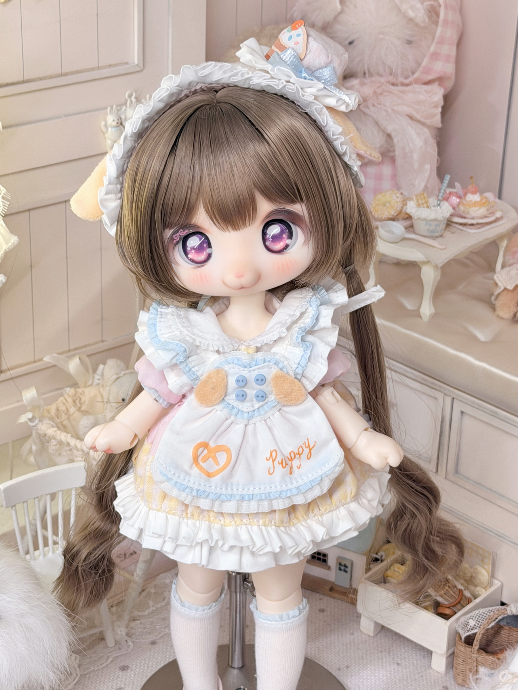 Three-piece BJD doll outfit, cheese puppy, sweet, gentle, cute dessert animal clothing set.