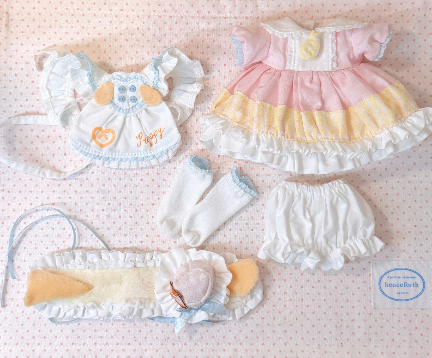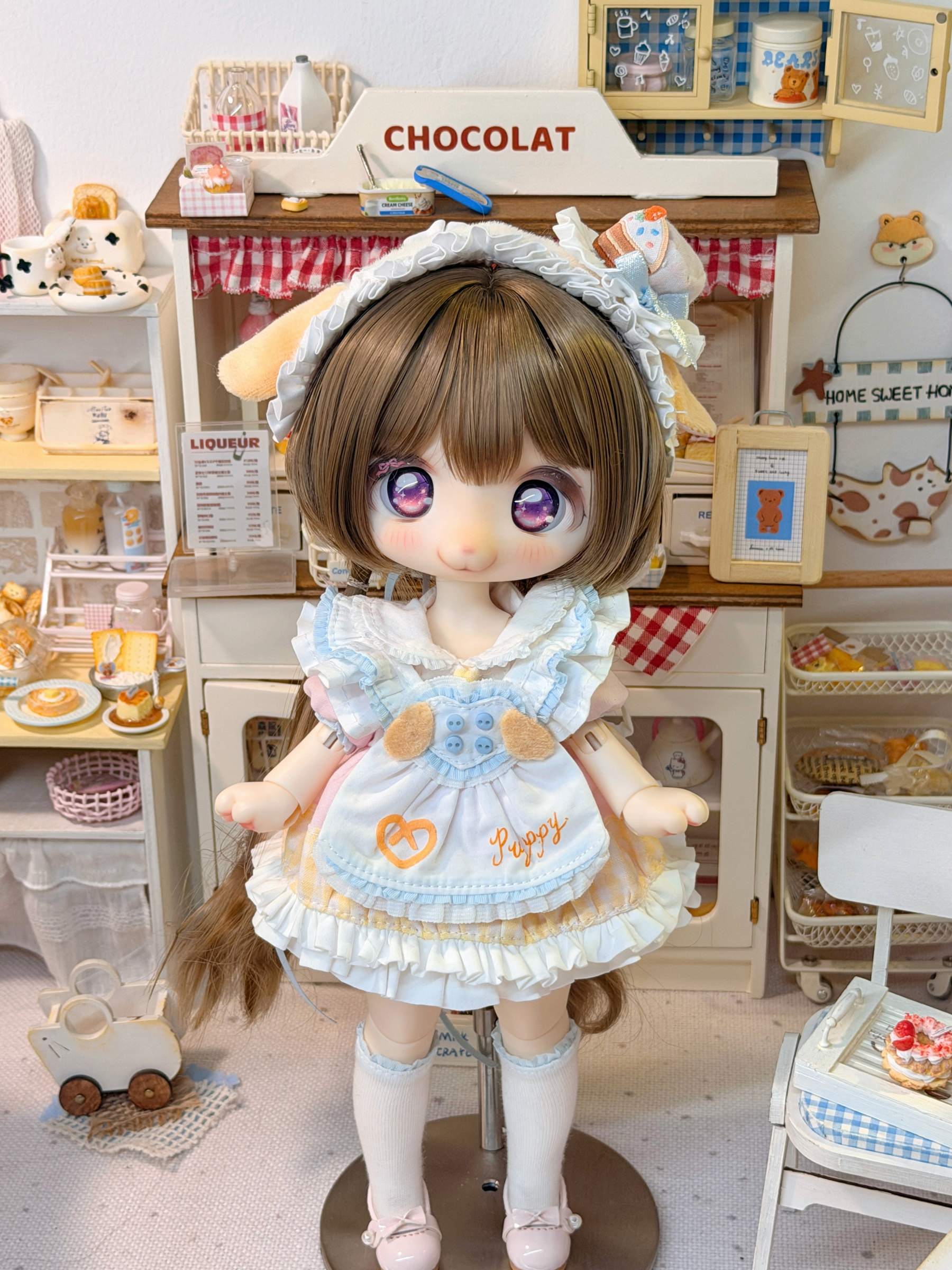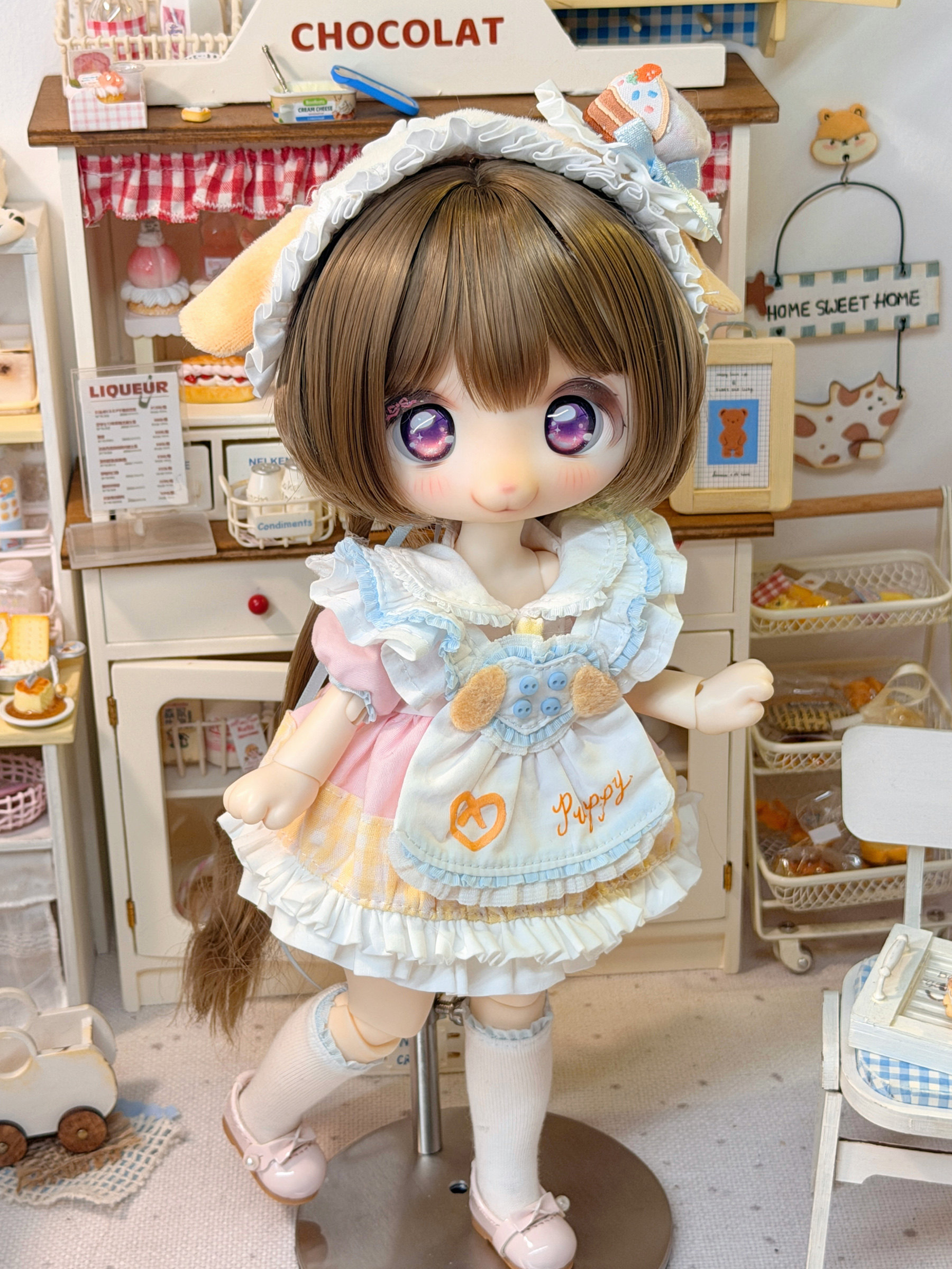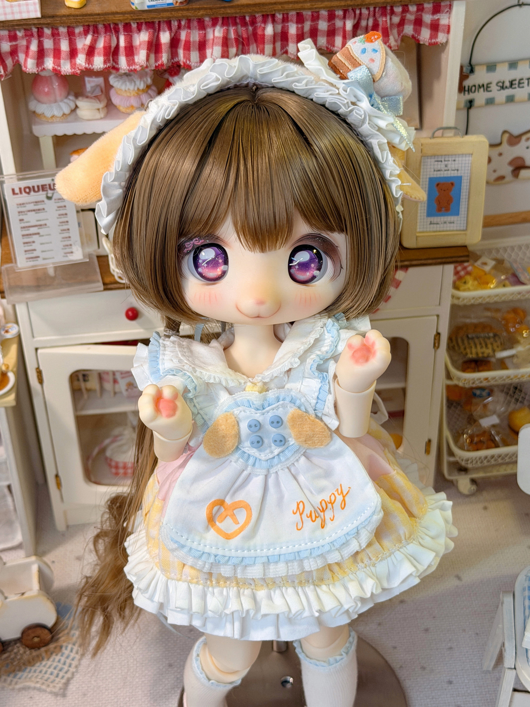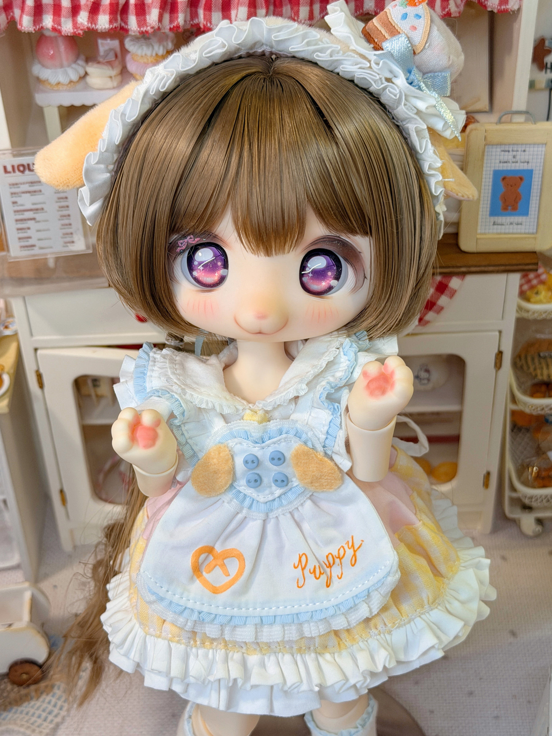 Three-piece BJD doll outfit, cheese puppy, sweet, gentle, cute dessert animal clothing set.