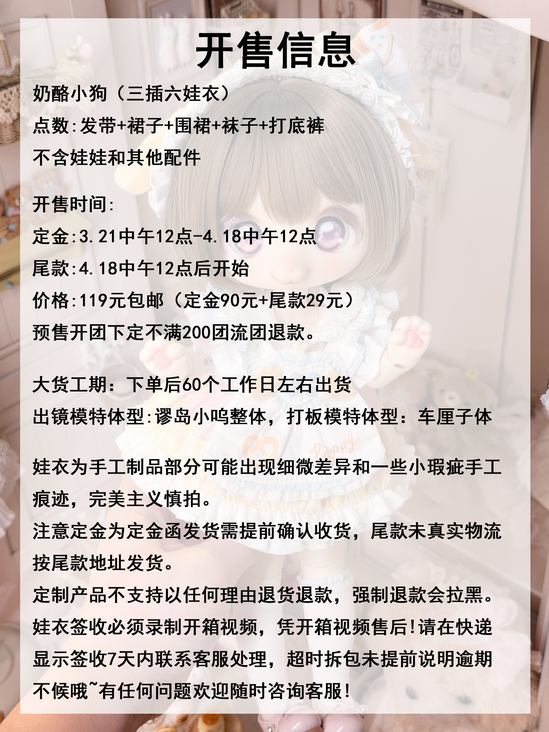 三插六BJD娃衣 奶酪小狗 甜美温柔可爱甜品动物衣服套装 [Original Page Link]