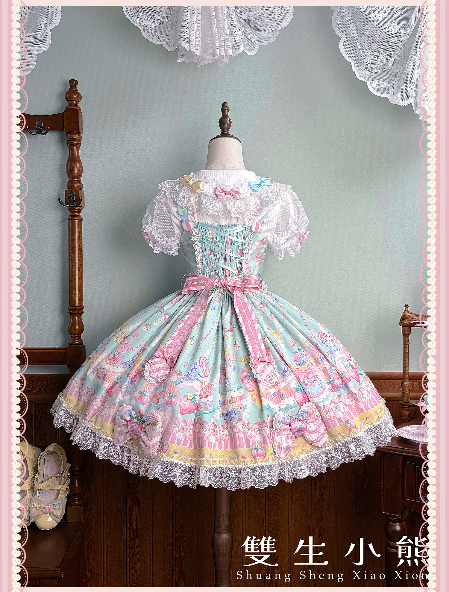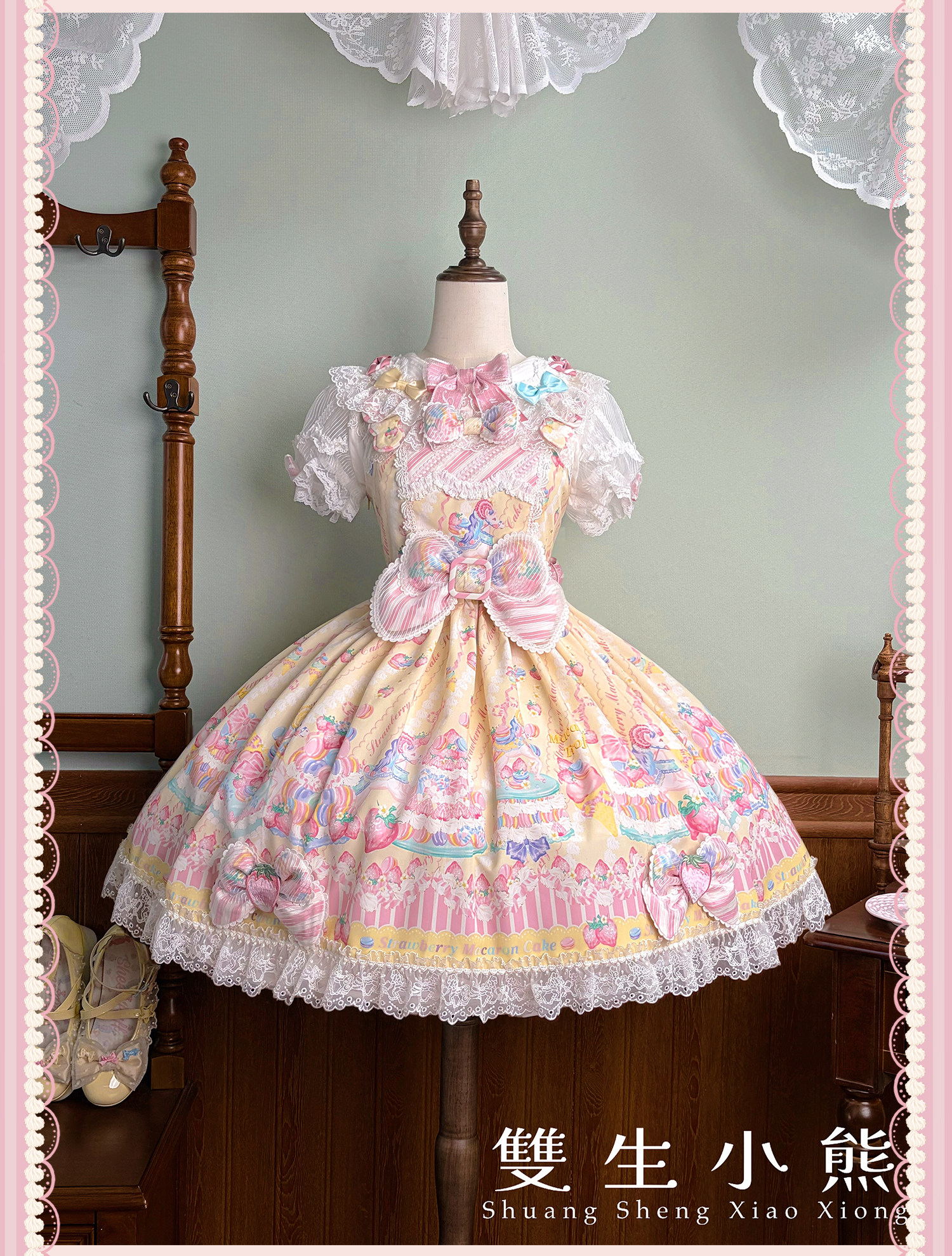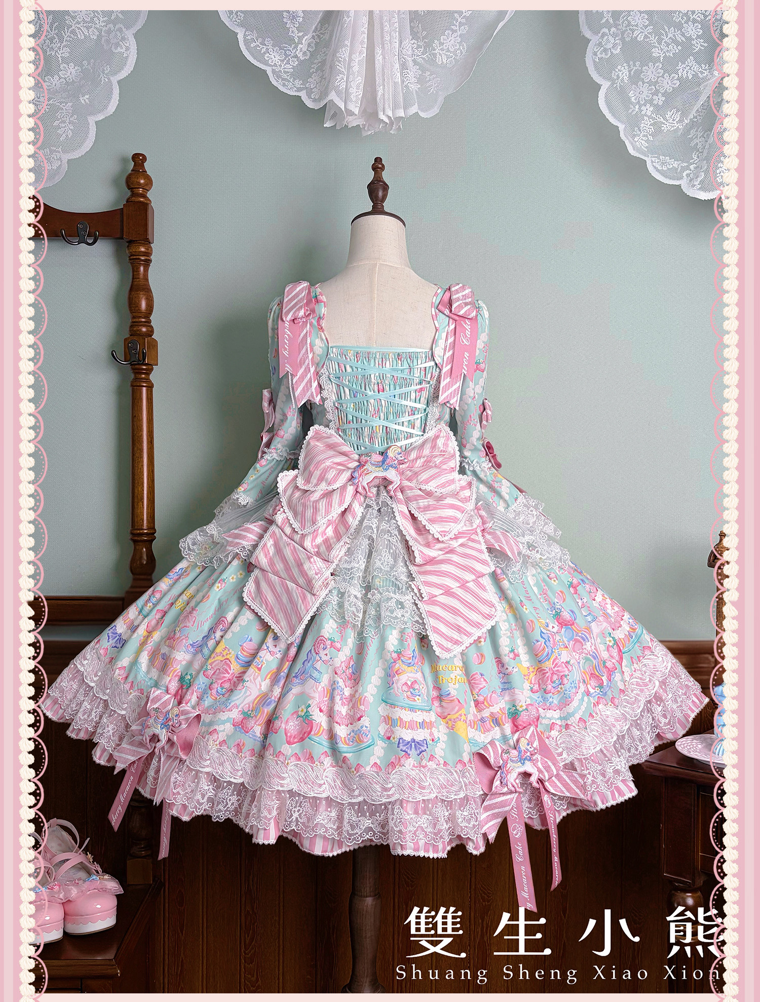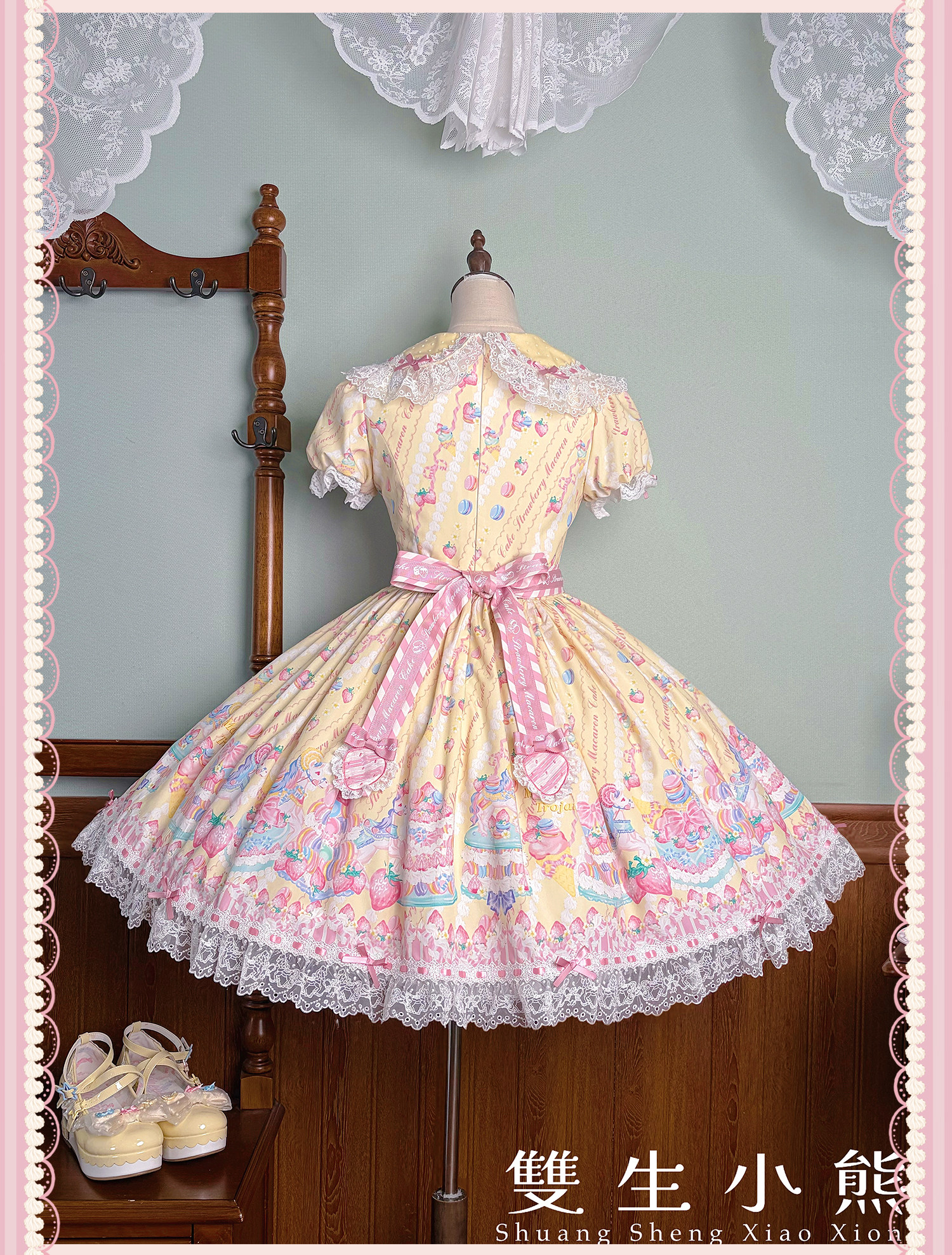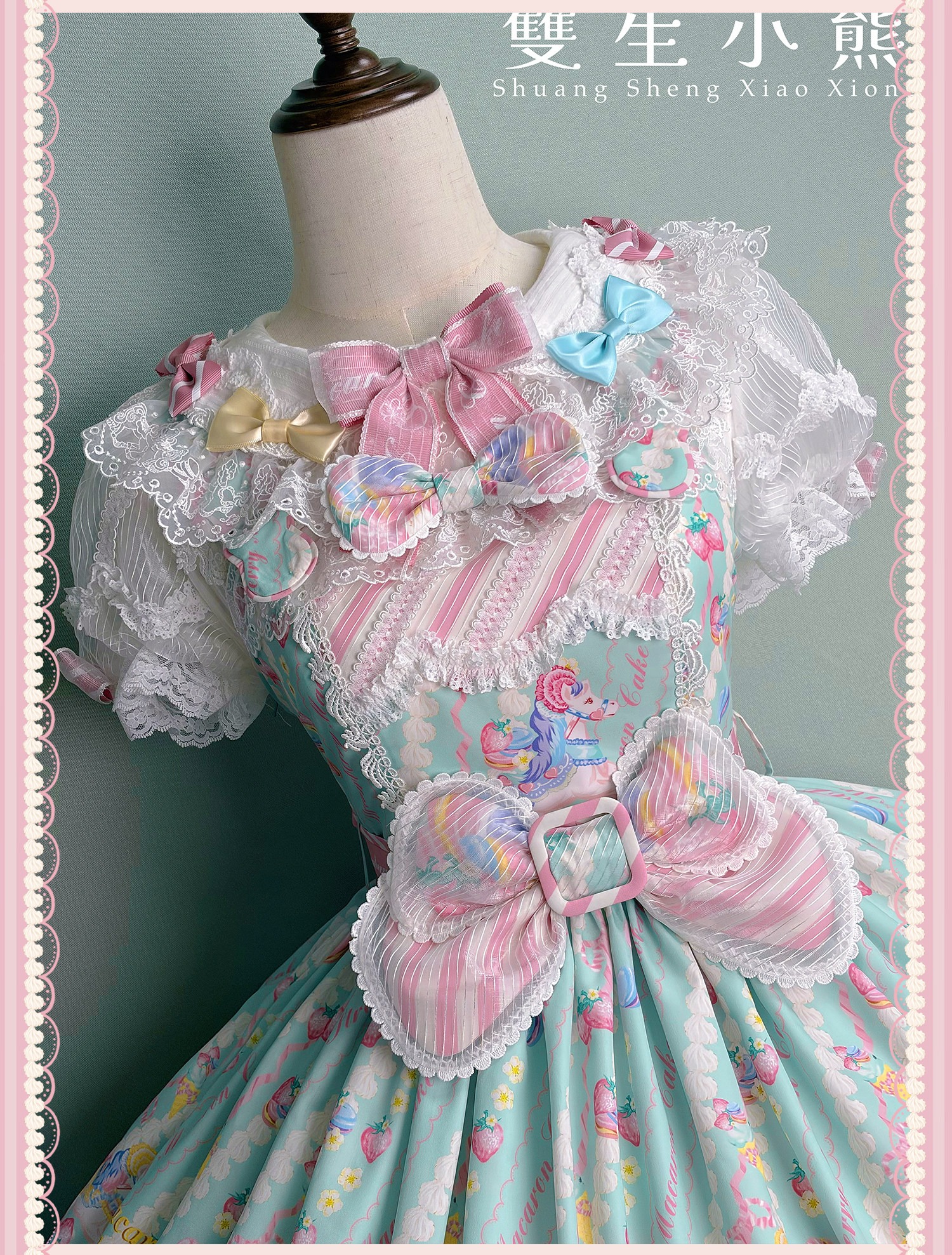 【定金】双生小熊原创新款 甜系Lolita 马卡龙系列 洛丽塔连衣裙 [Original Page Link]
