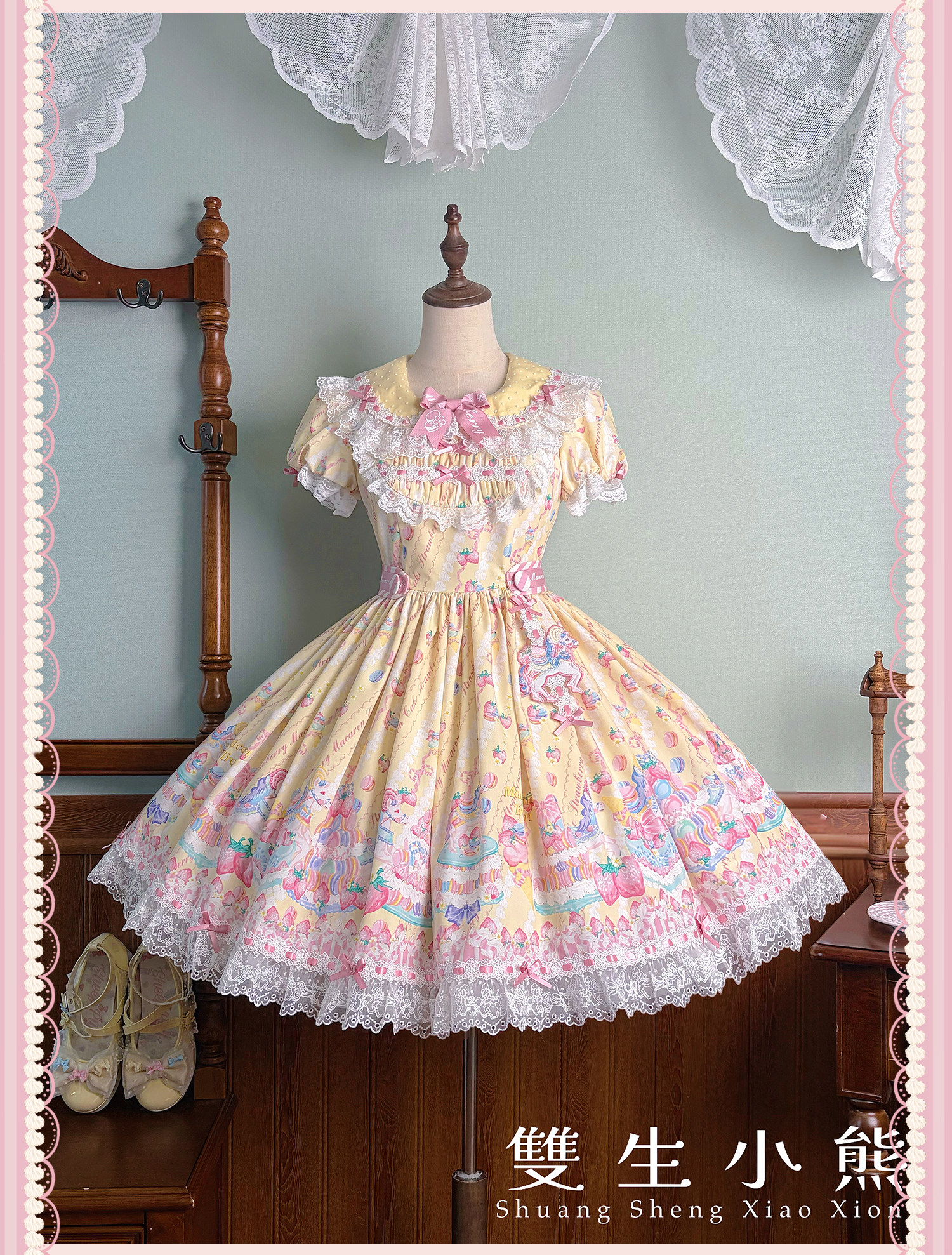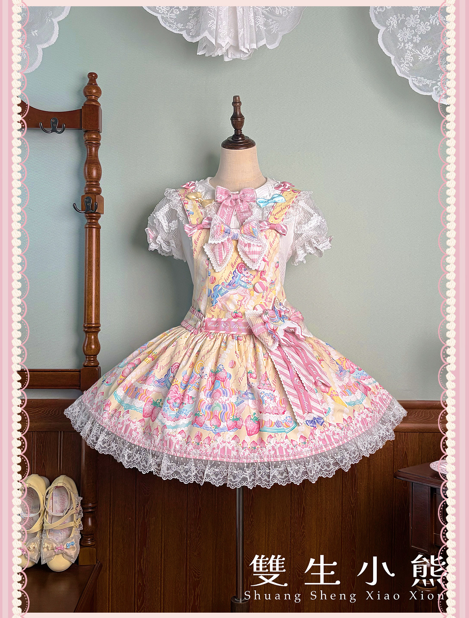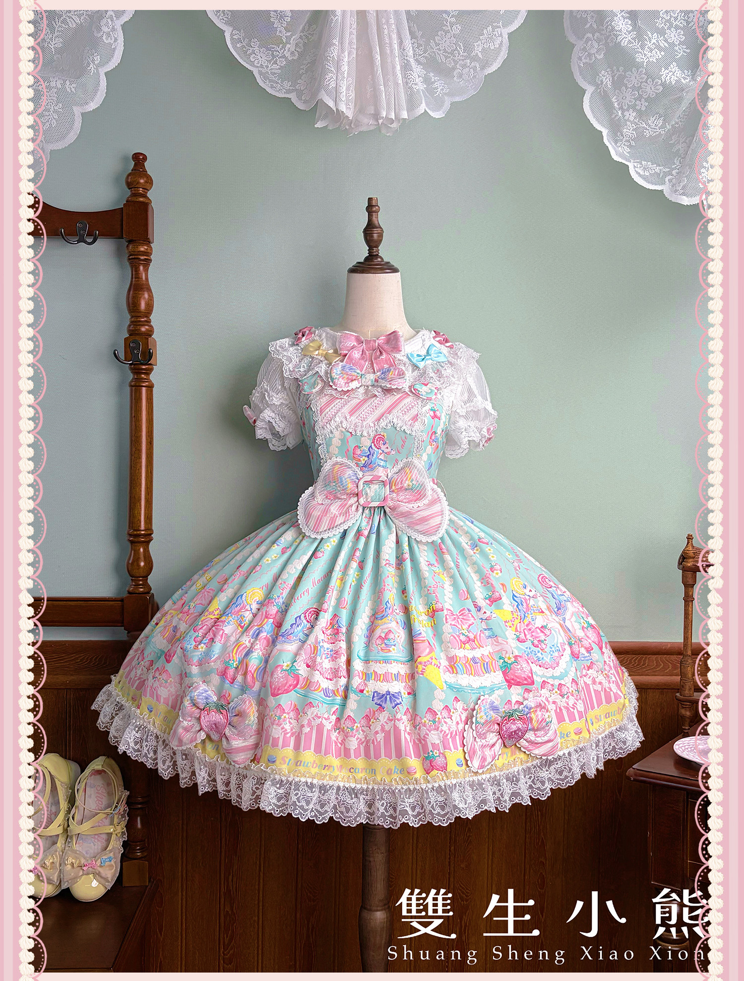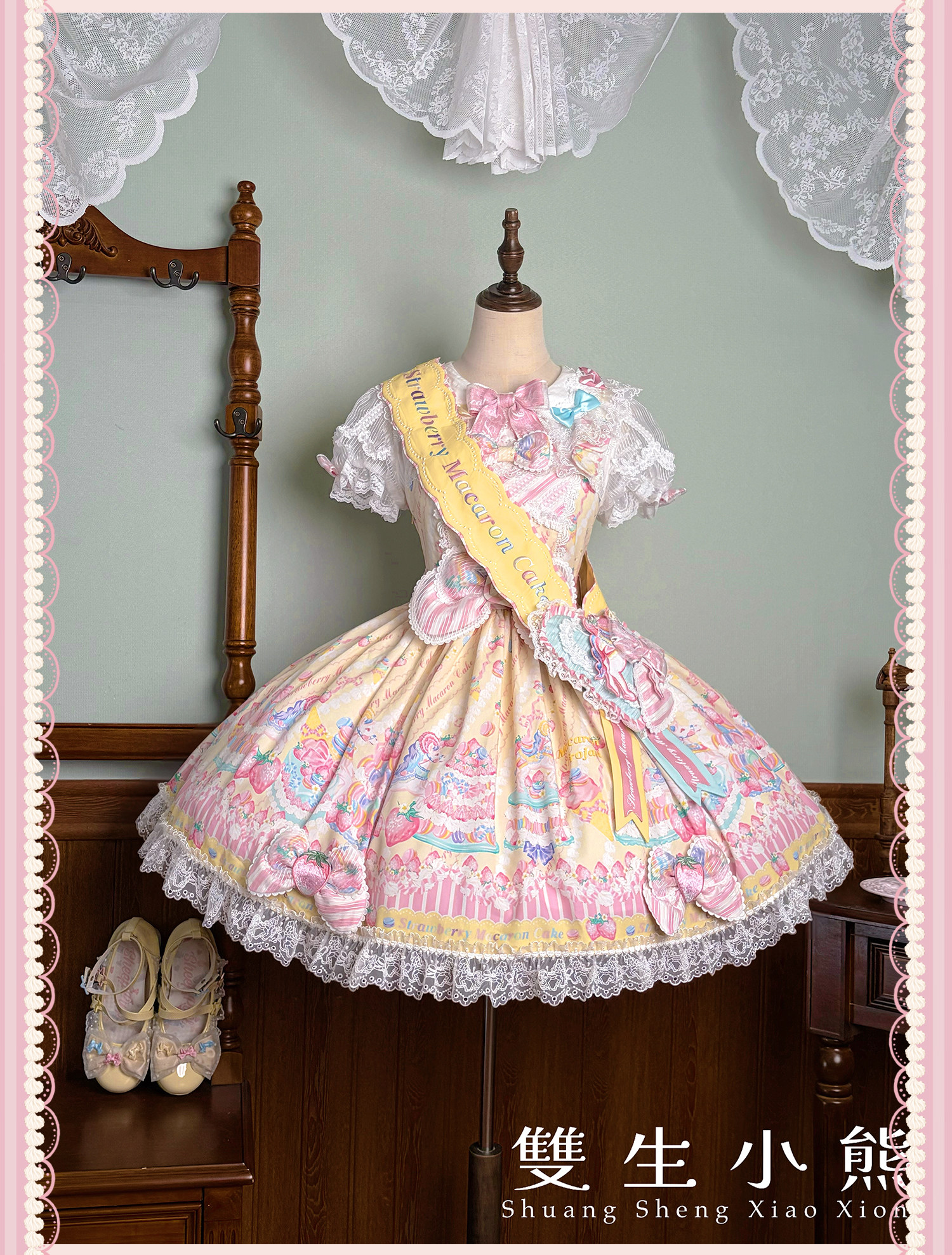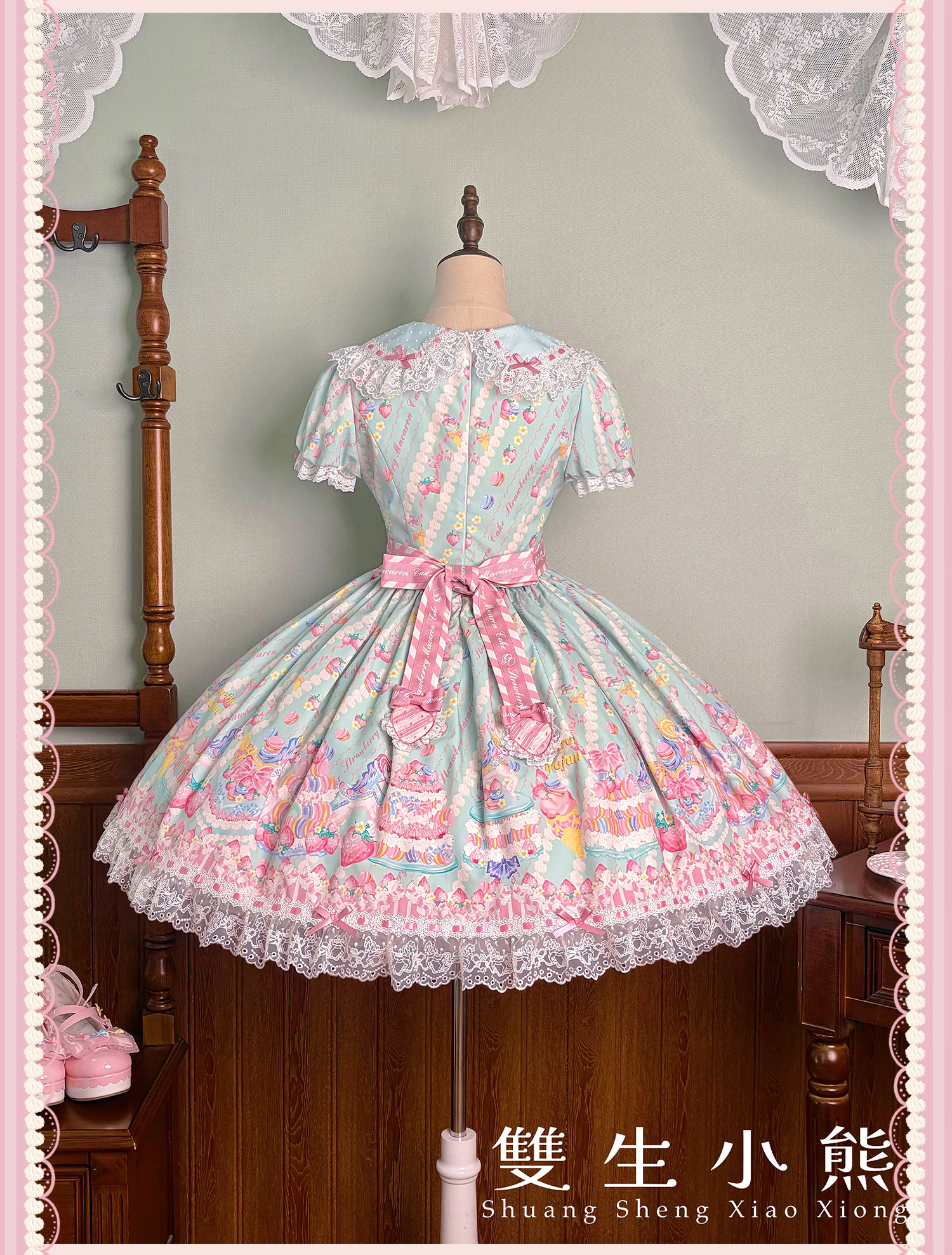 【定金】双生小熊原创新款 甜系Lolita 马卡龙系列 洛丽塔连衣裙 [Original Page Link]