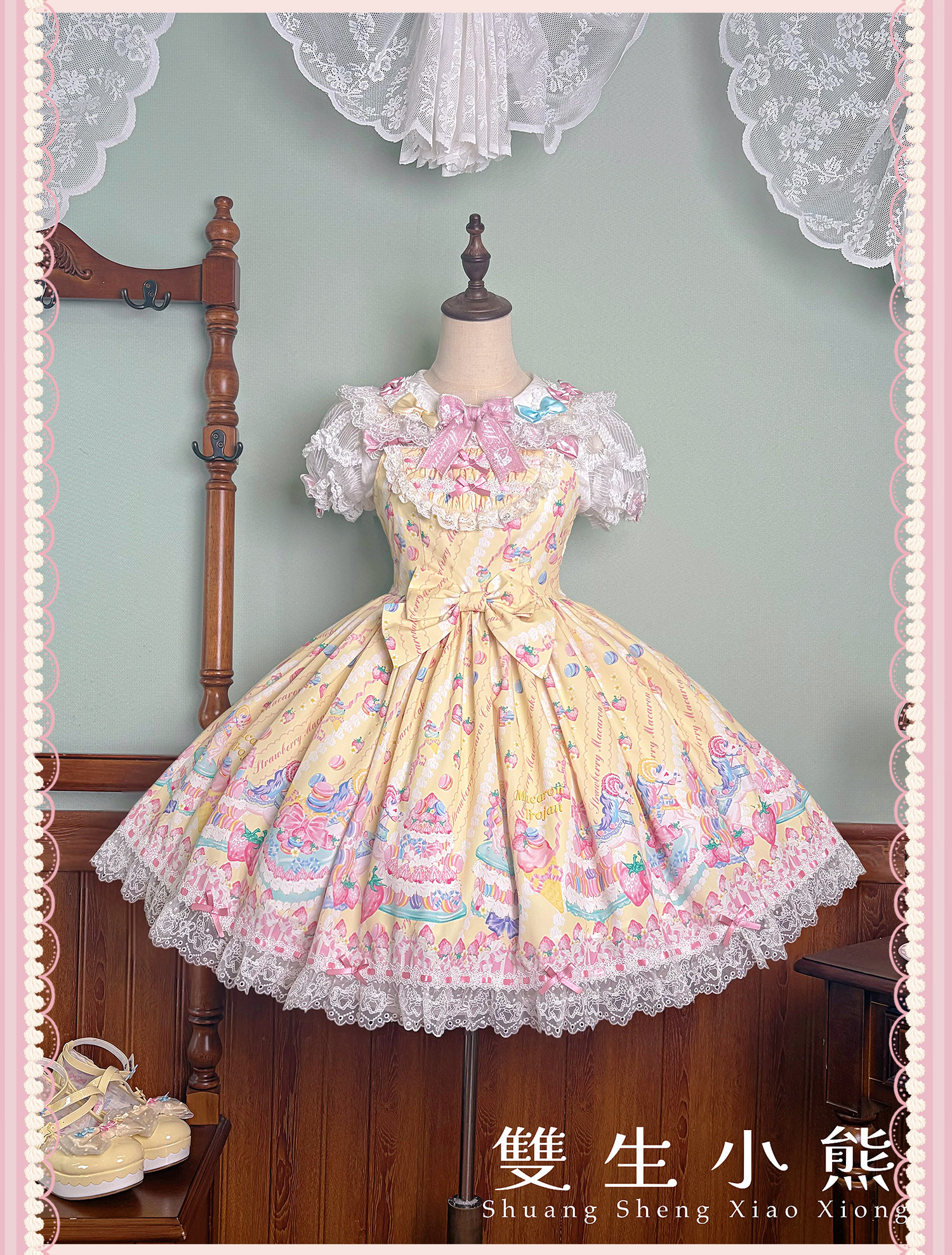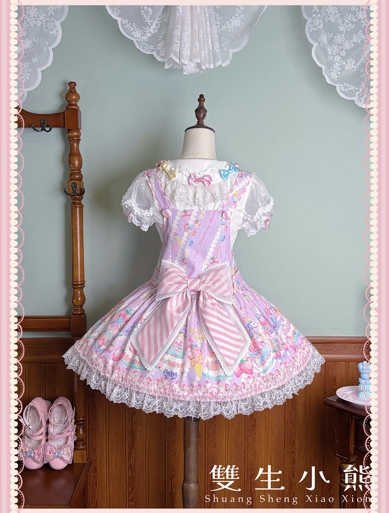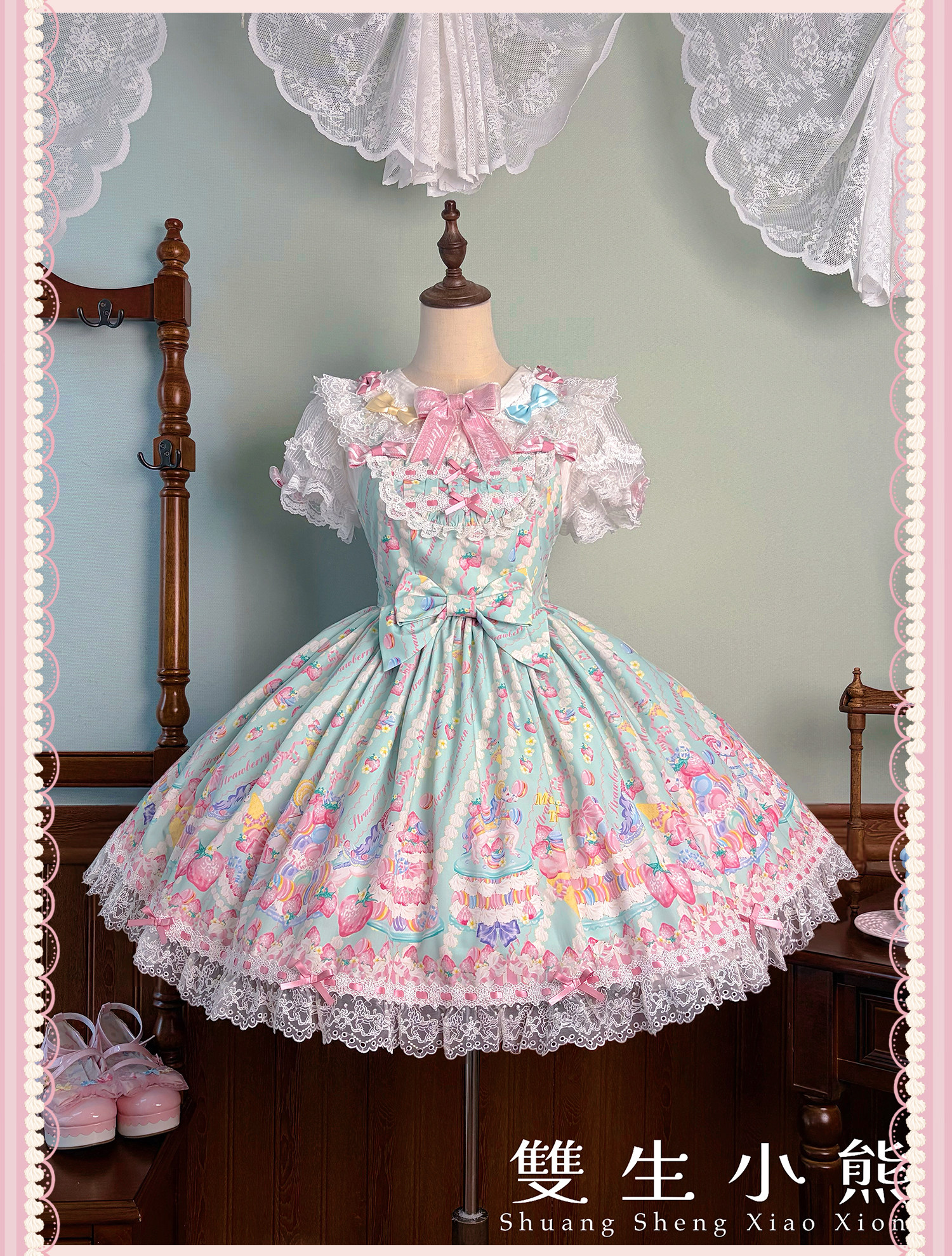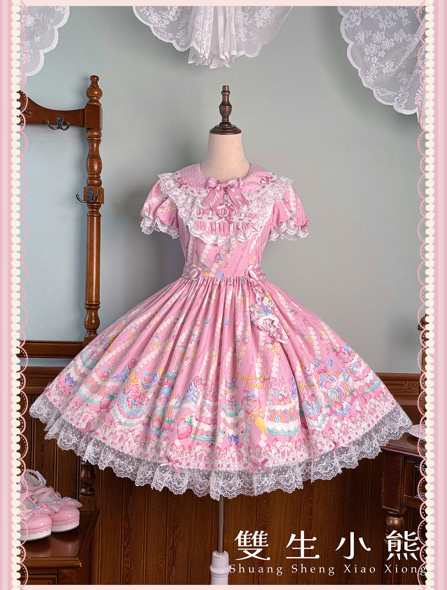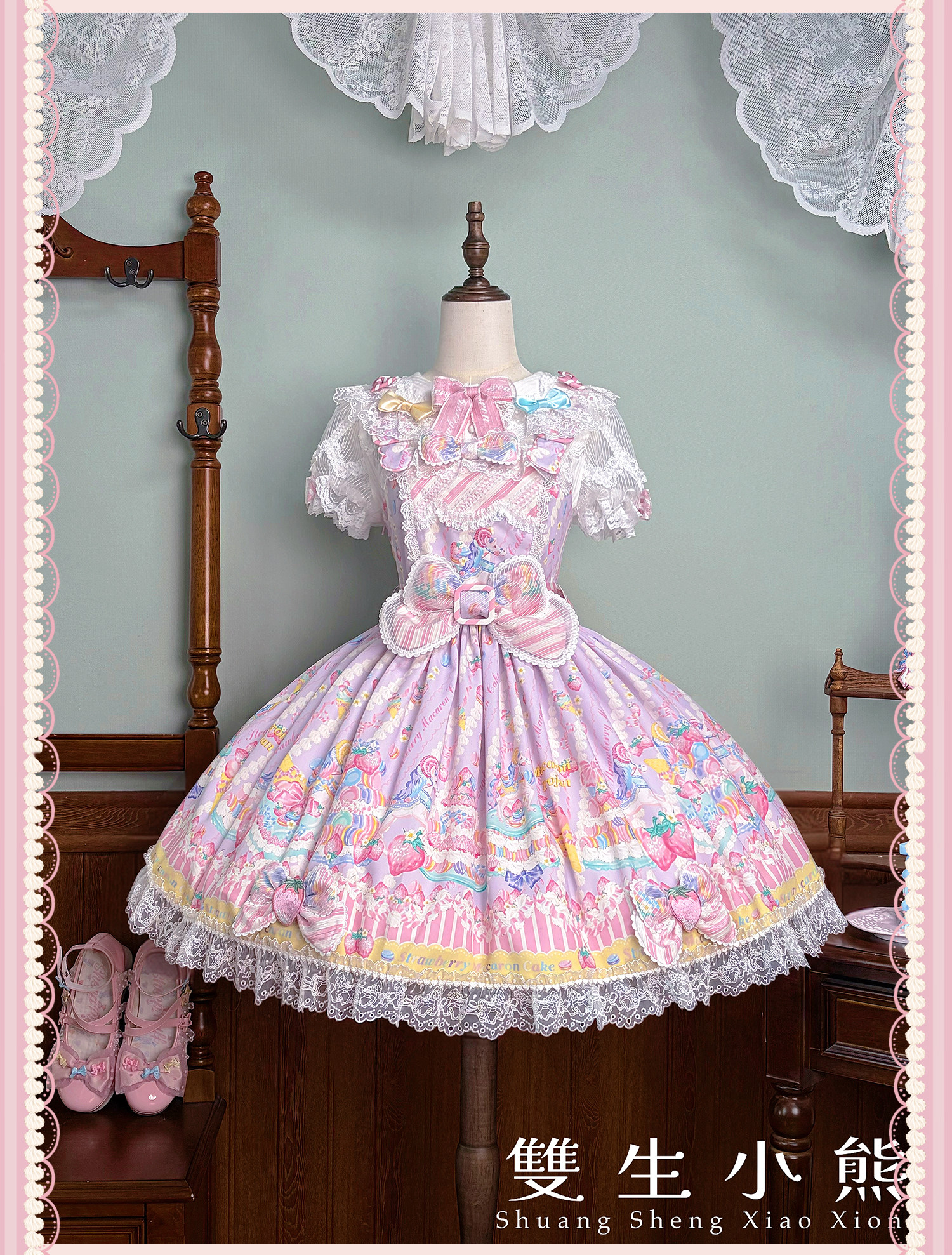 【定金】双生小熊原创新款 甜系Lolita 马卡龙系列 洛丽塔连衣裙 [Original Page Link]
