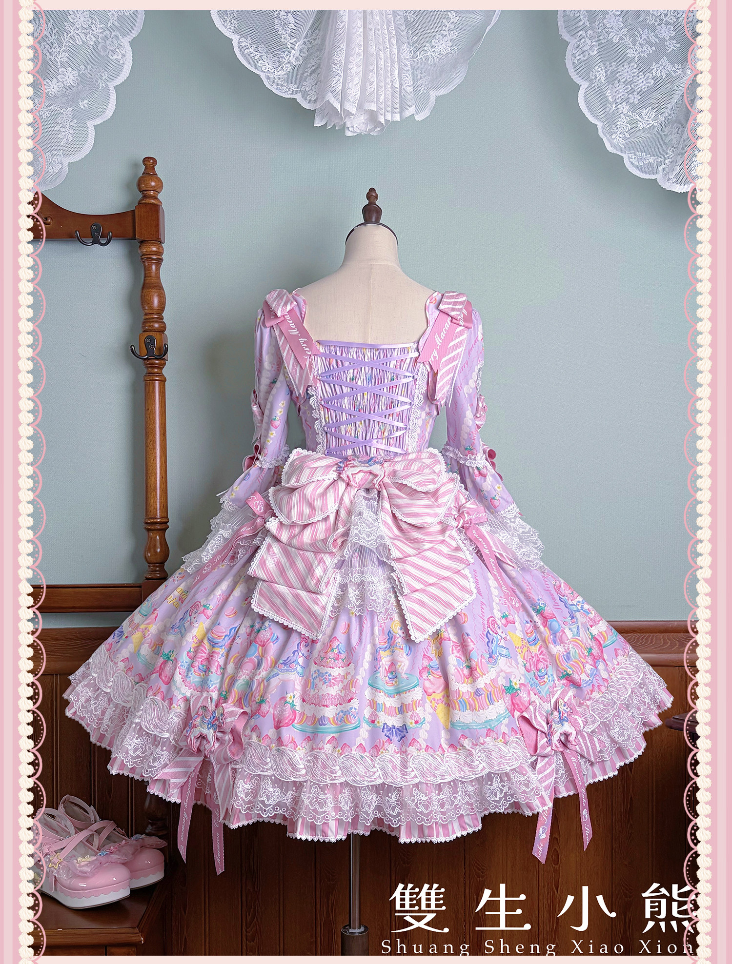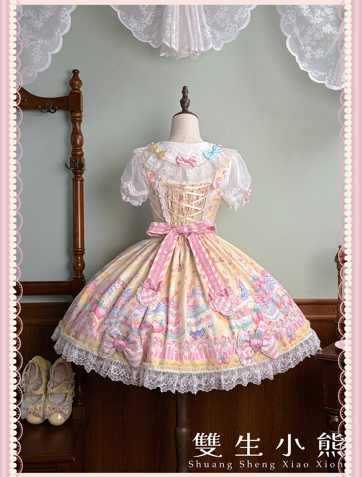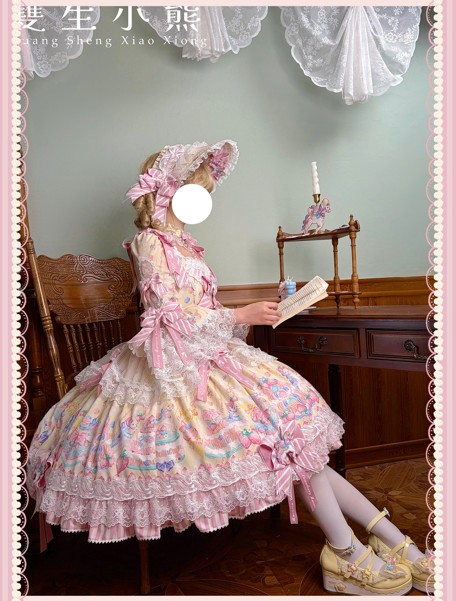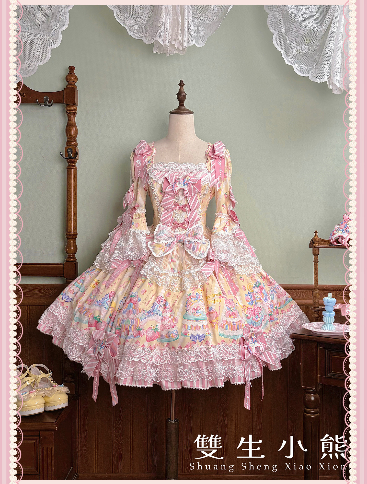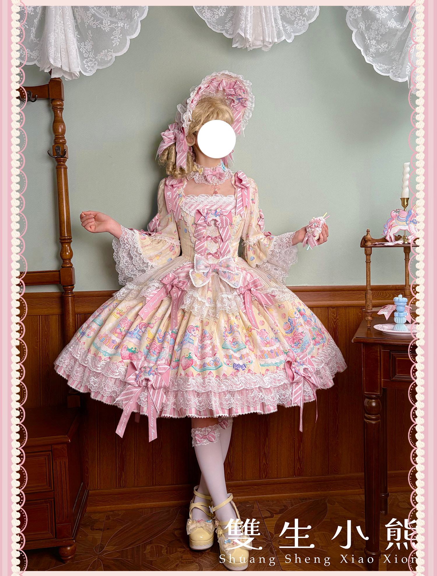 【定金】双生小熊原创新款 甜系Lolita 马卡龙系列 洛丽塔连衣裙 [Original Page Link]