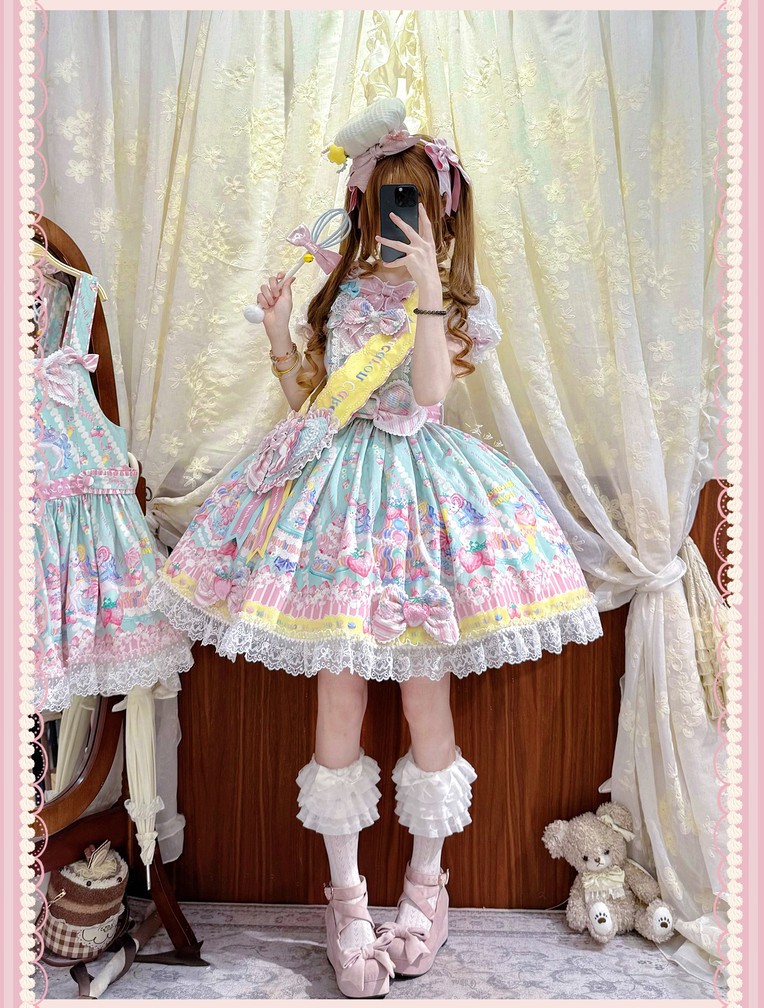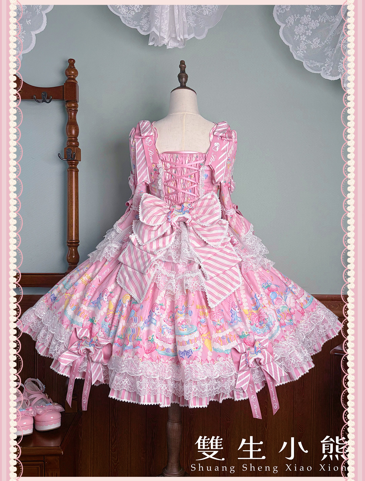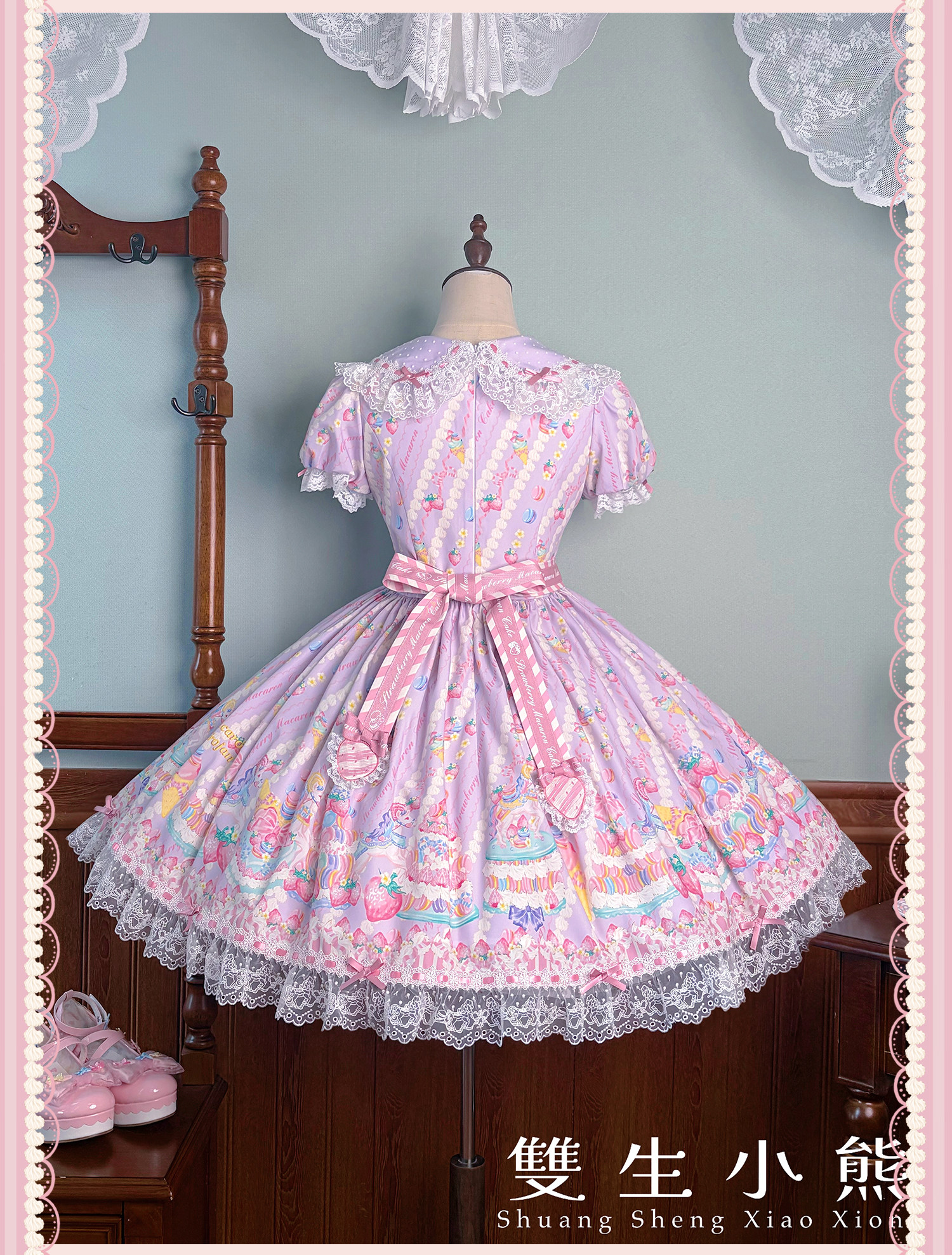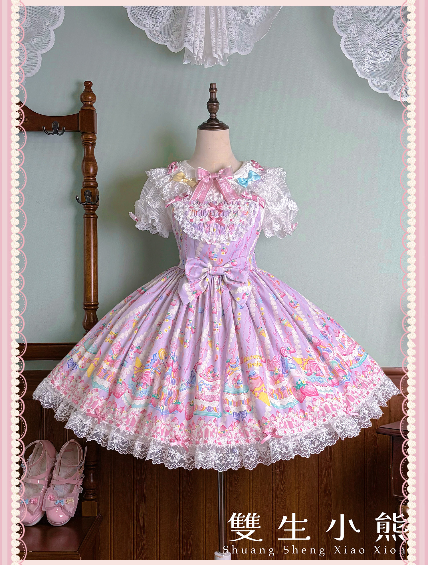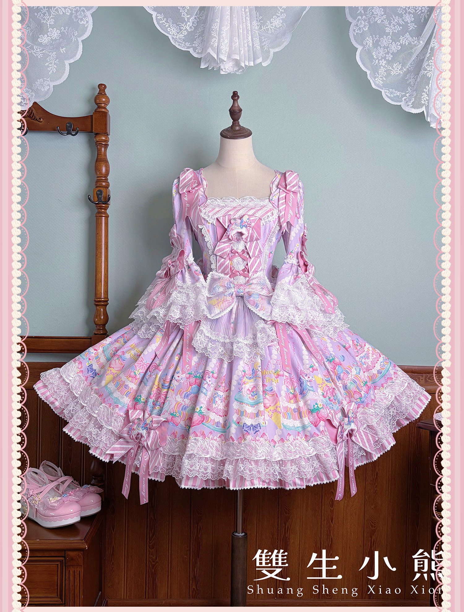 【定金】双生小熊原创新款 甜系Lolita 马卡龙系列 洛丽塔连衣裙 [Original Page Link]