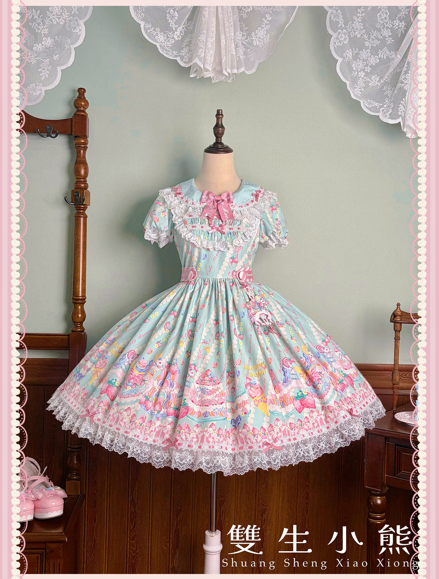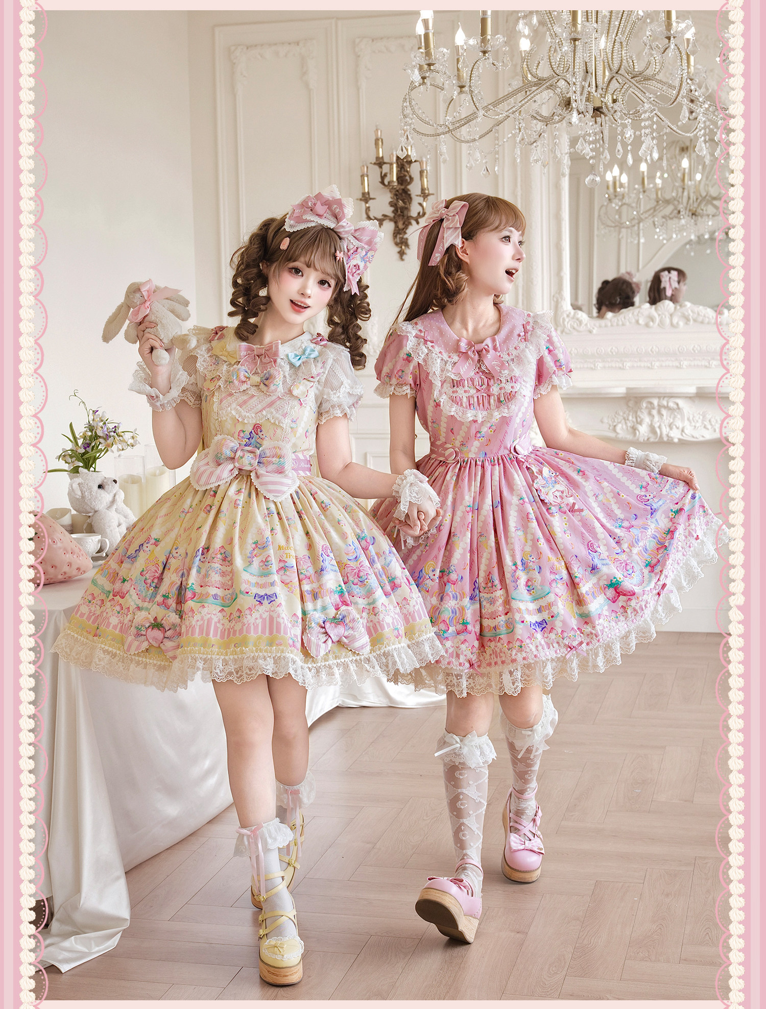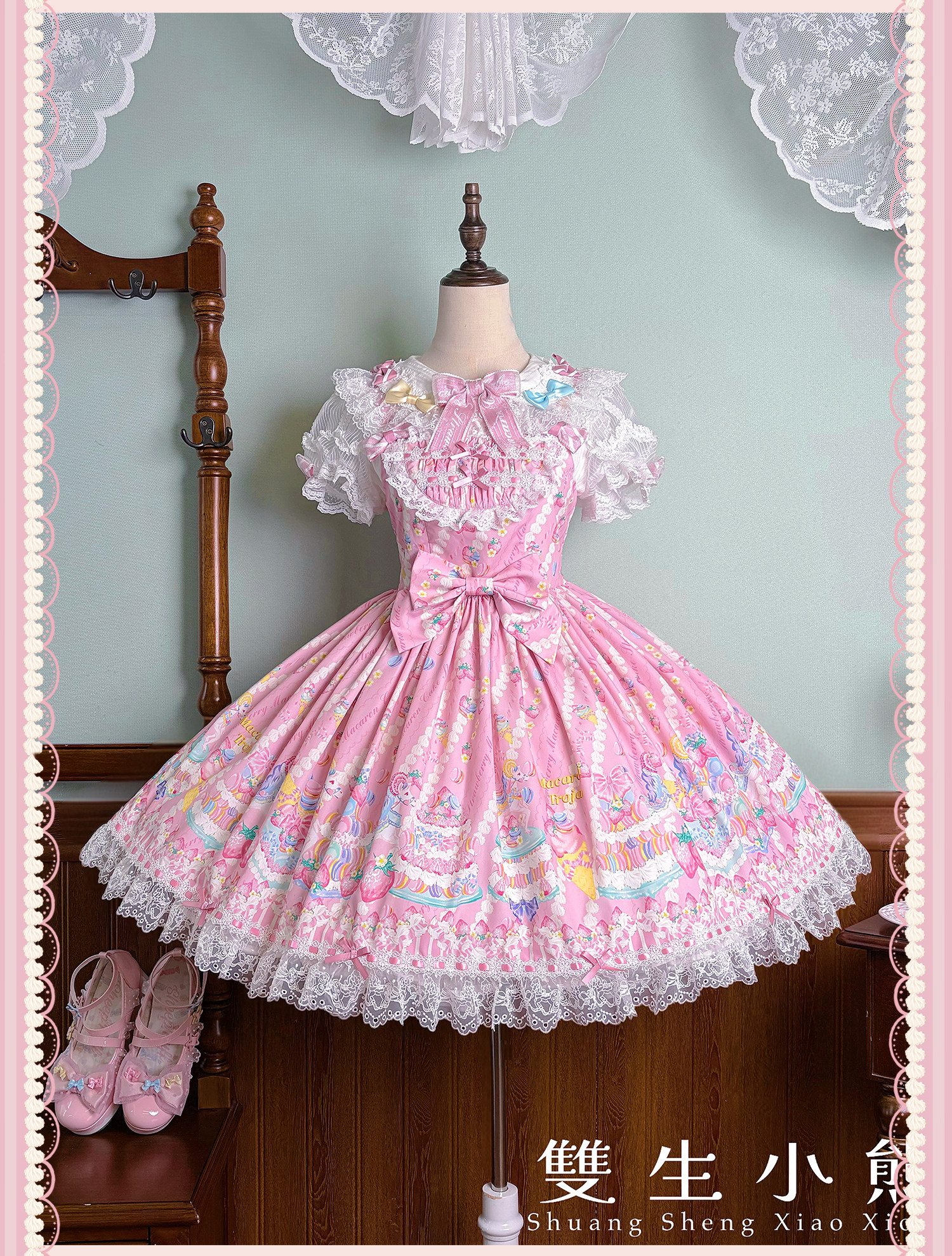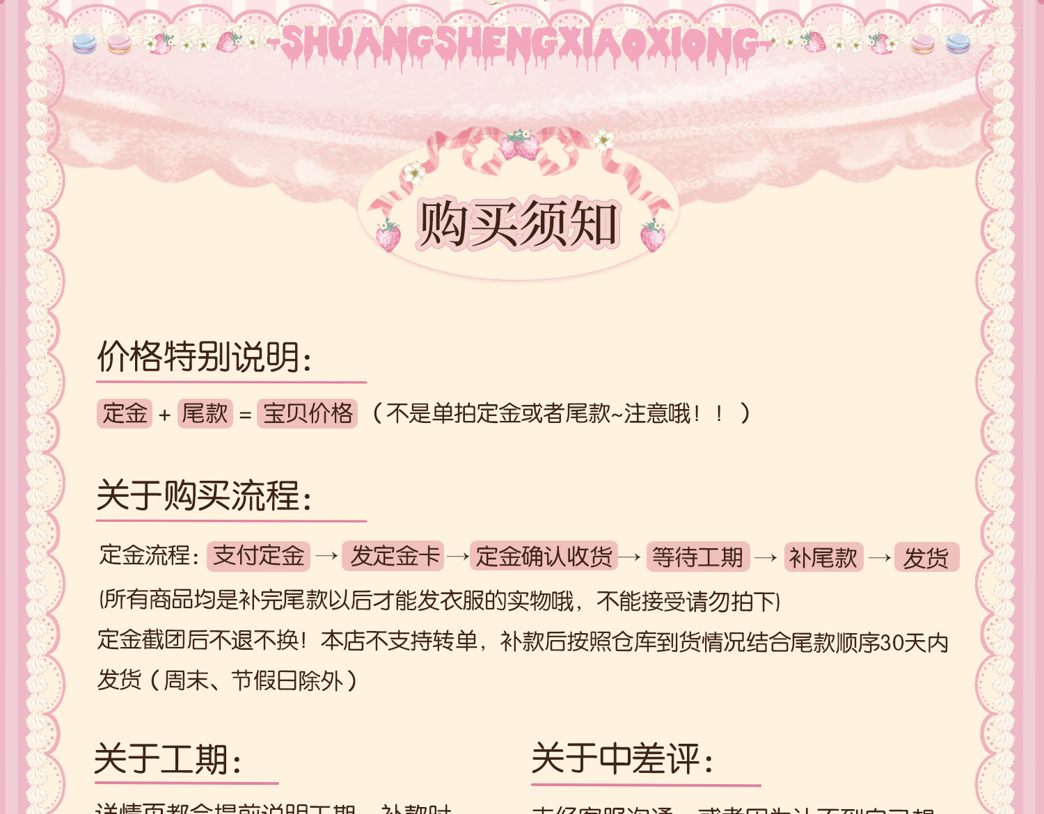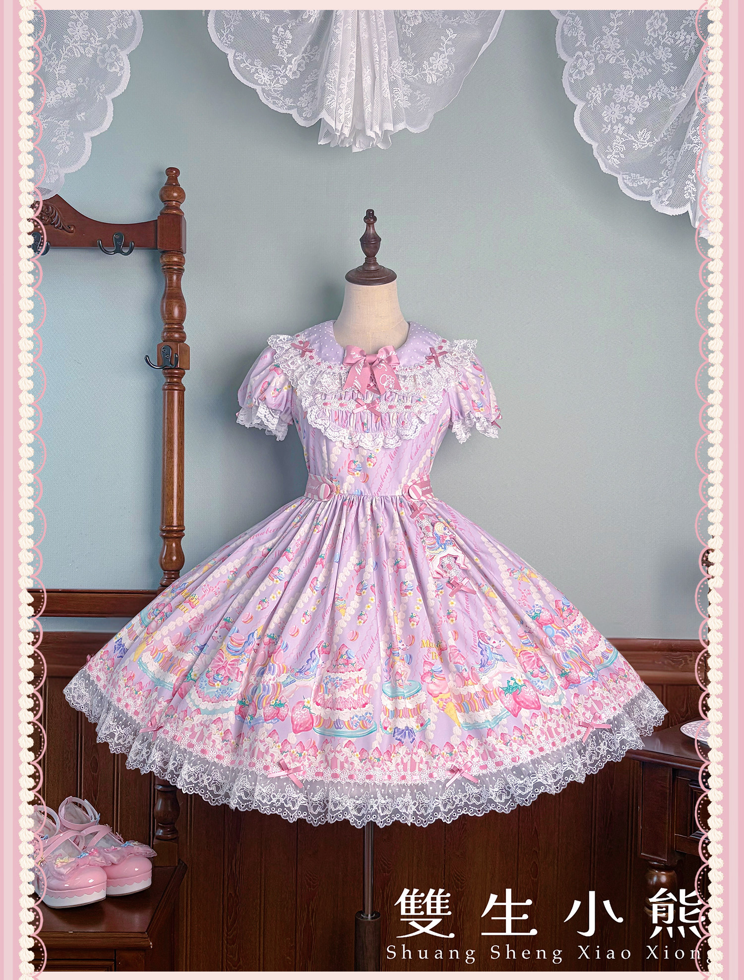 【定金】双生小熊原创新款 甜系Lolita 马卡龙系列 洛丽塔连衣裙 [Original Page Link]
