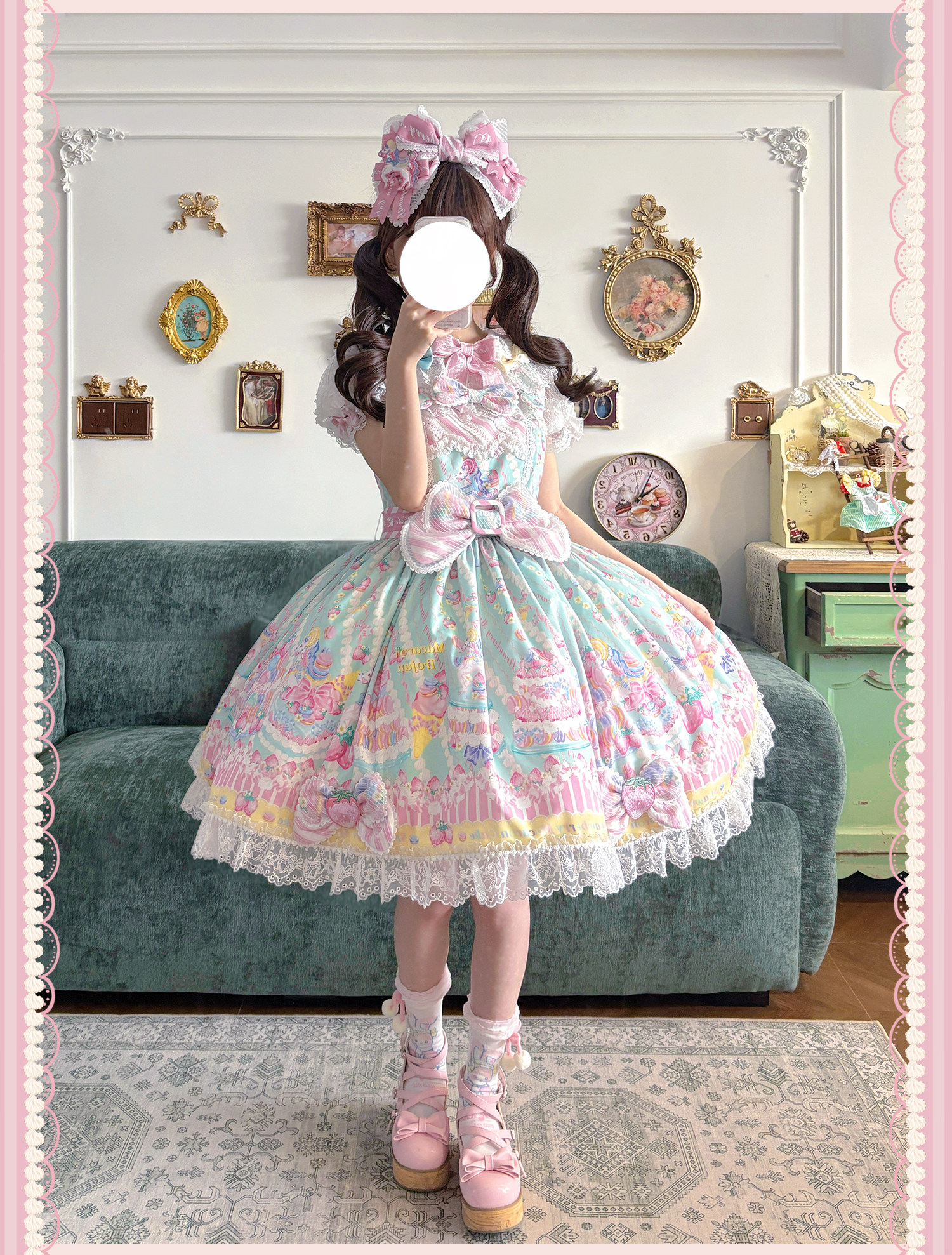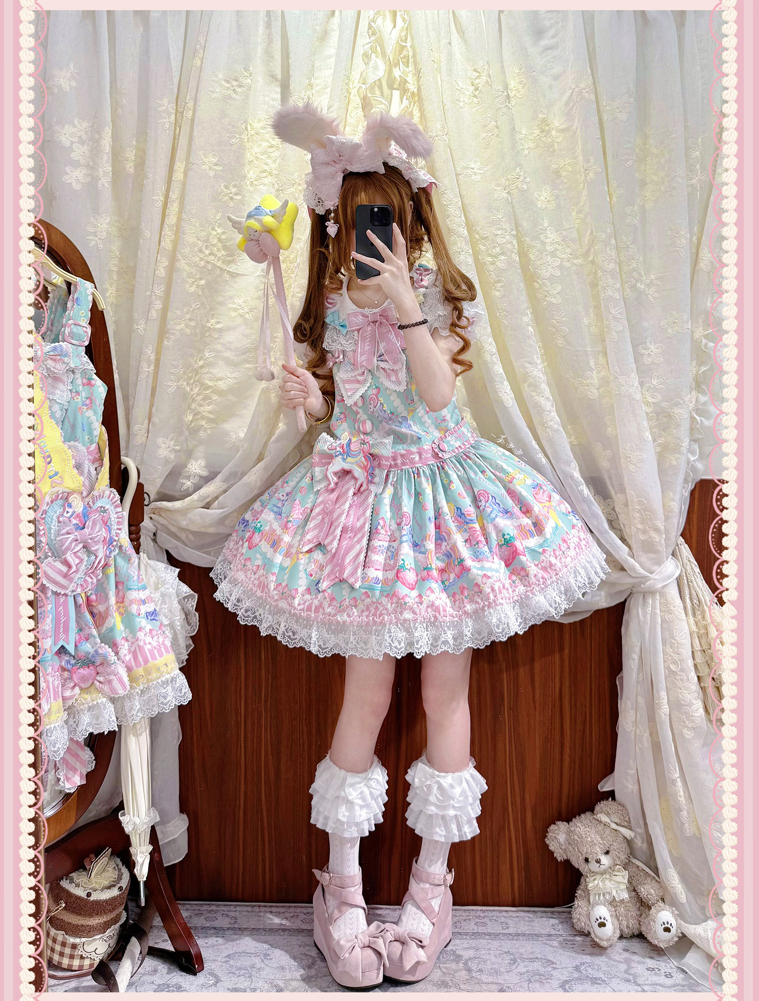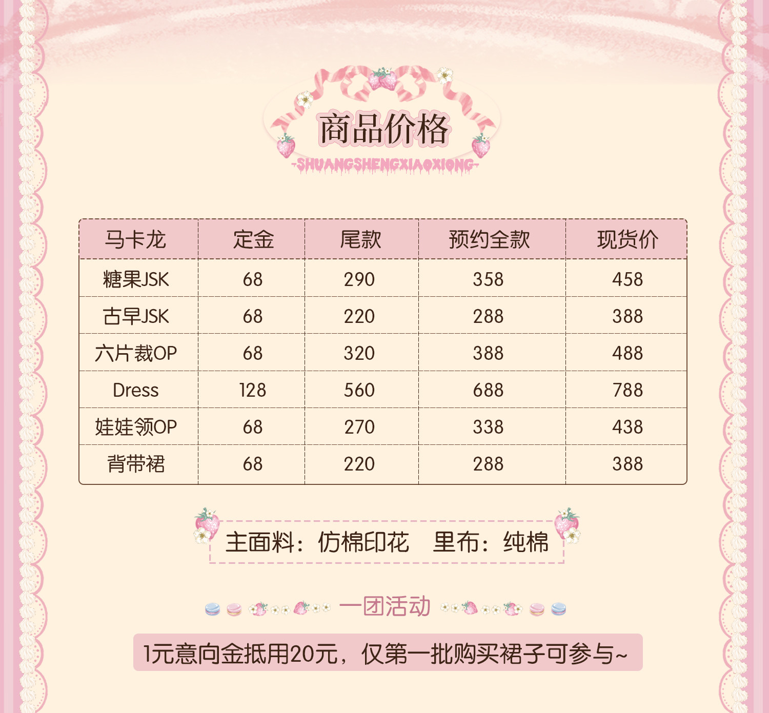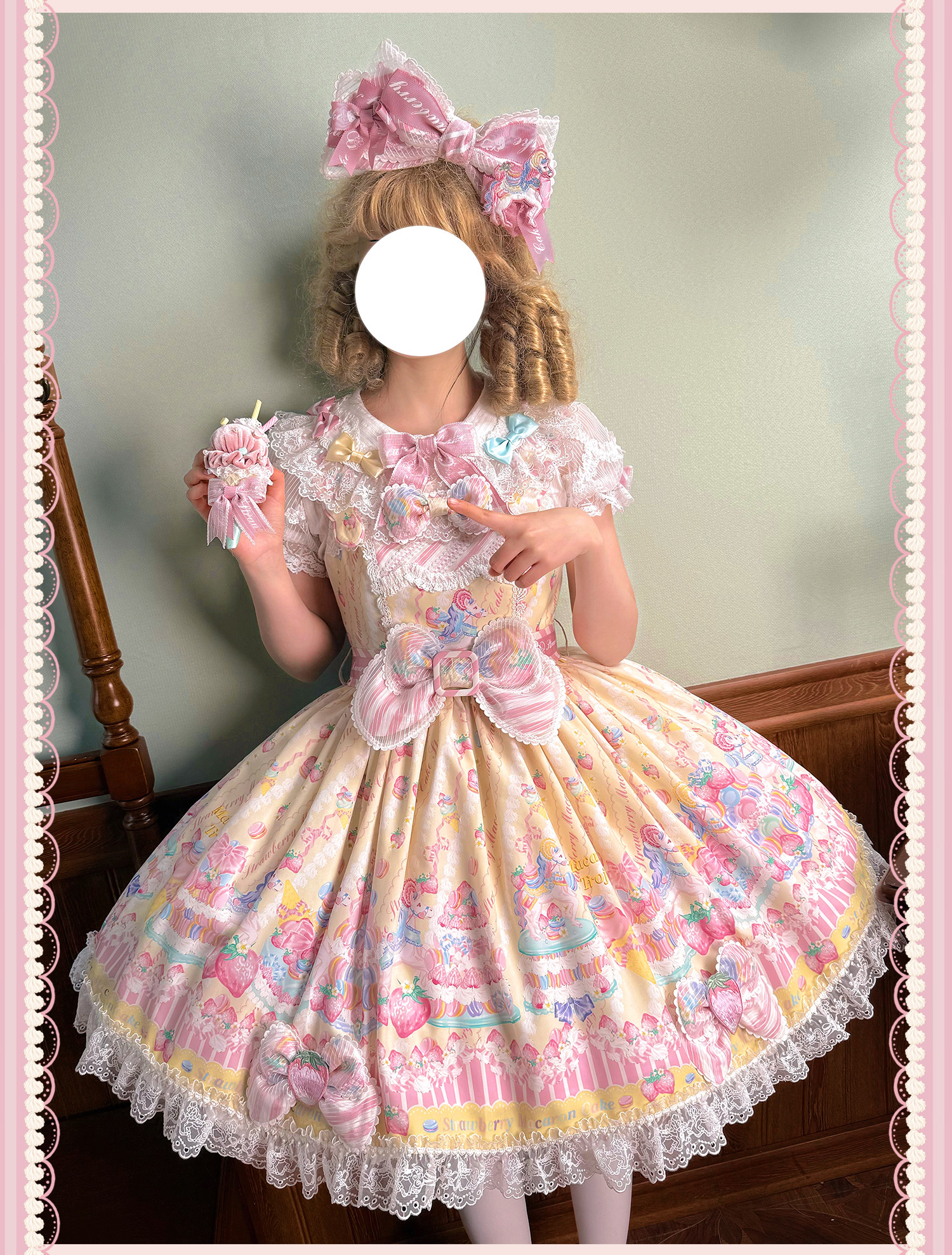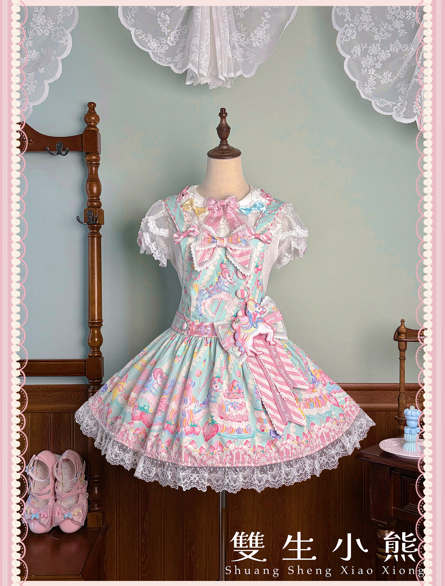 【定金】双生小熊原创新款 甜系Lolita 马卡龙系列 洛丽塔连衣裙 [Original Page Link]