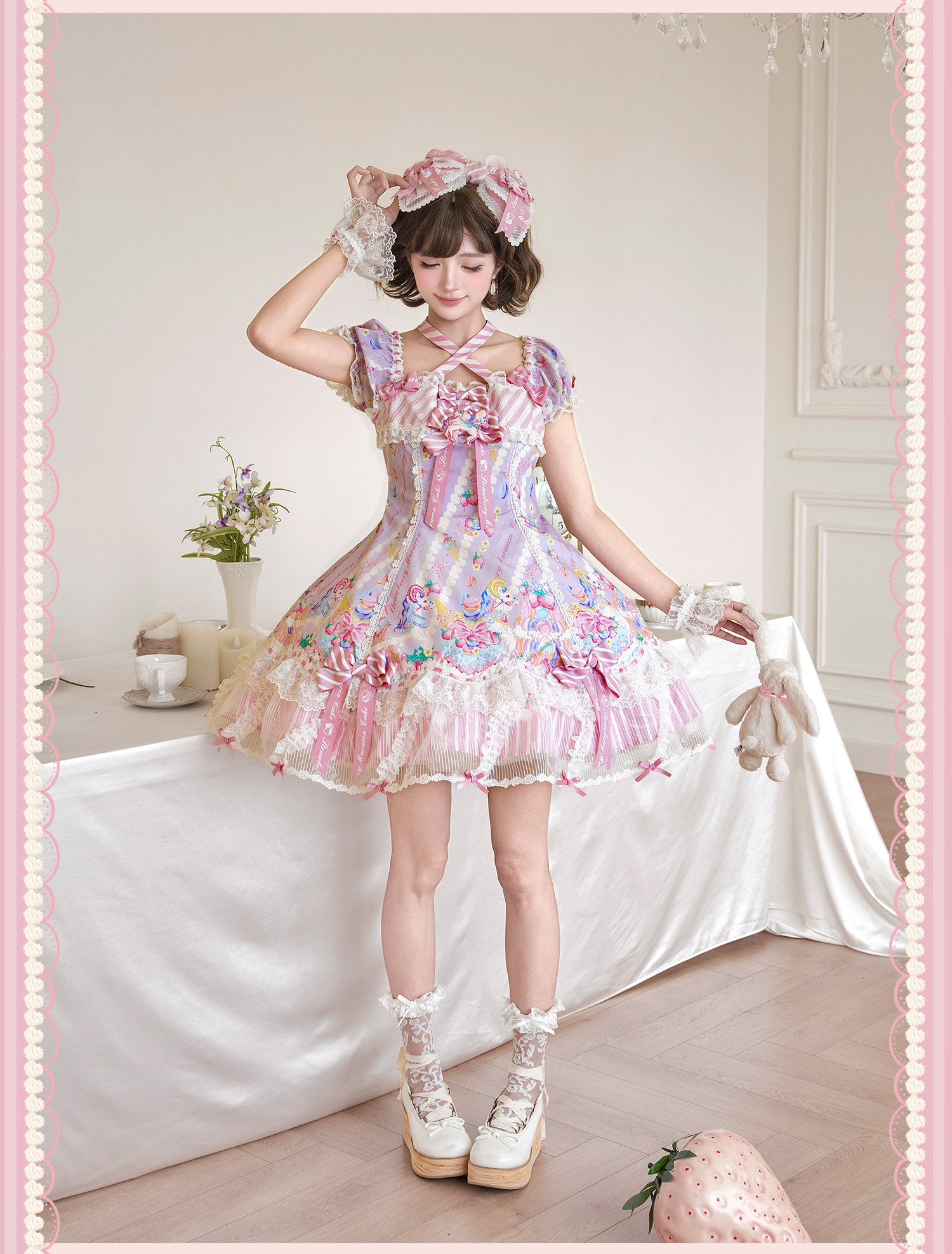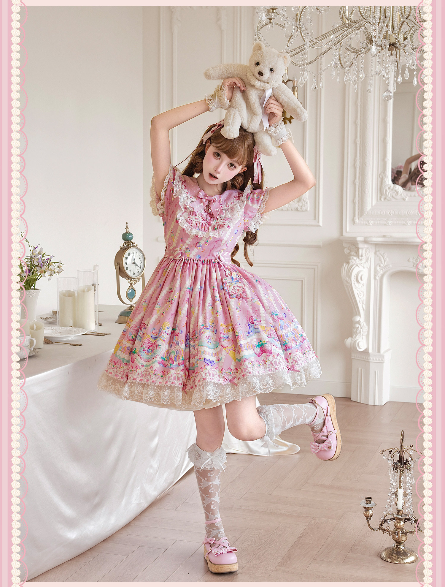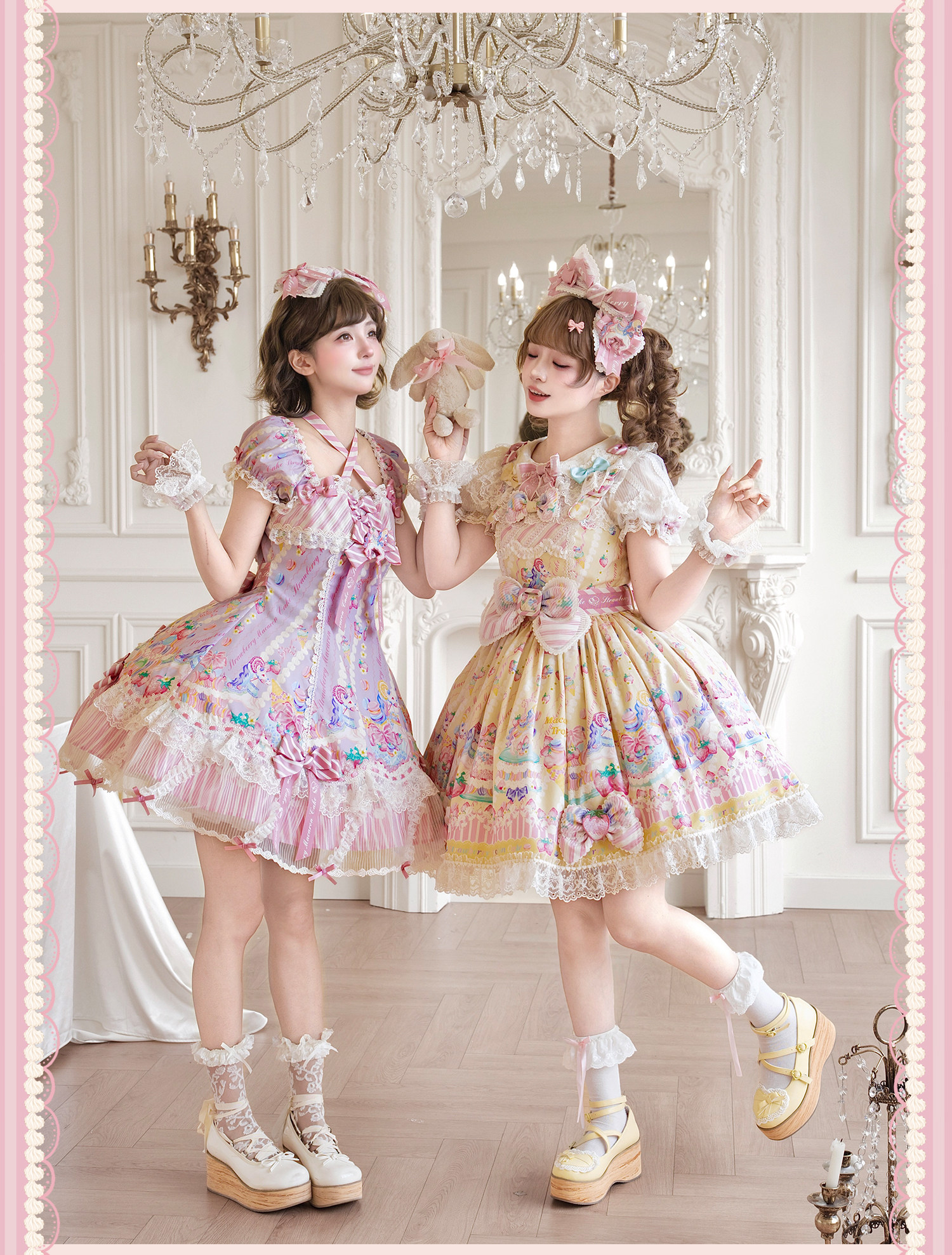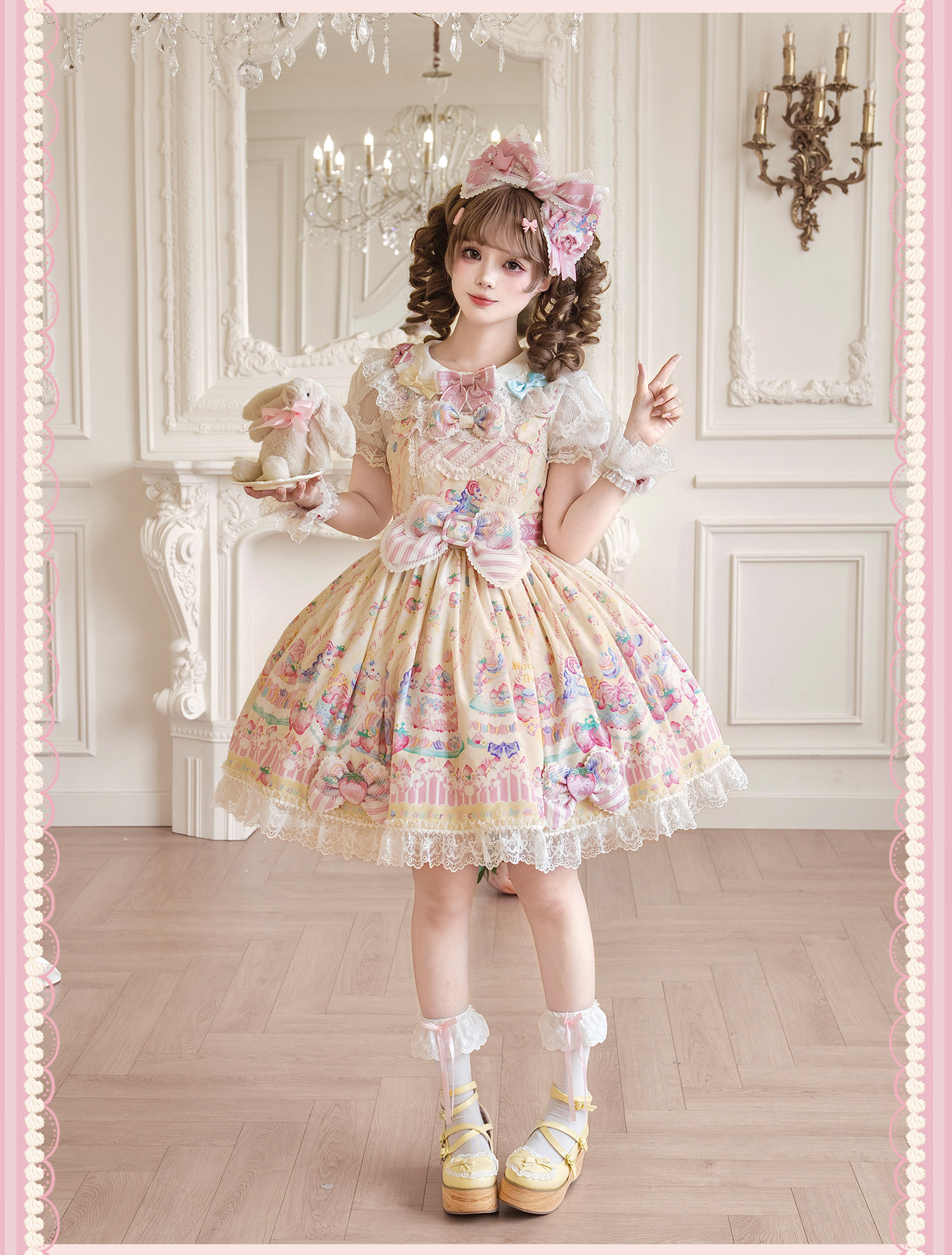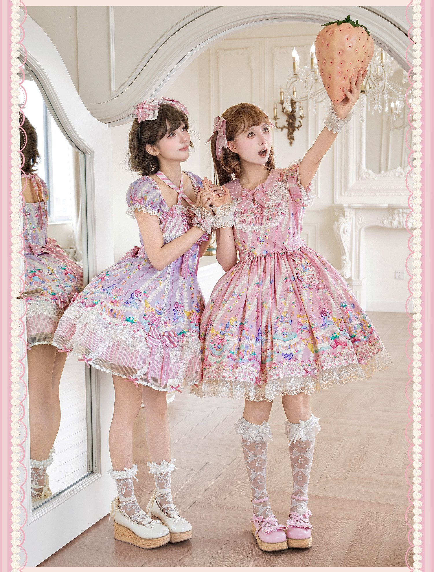 【定金】双生小熊原创新款 甜系Lolita 马卡龙系列 洛丽塔连衣裙 [Original Page Link]