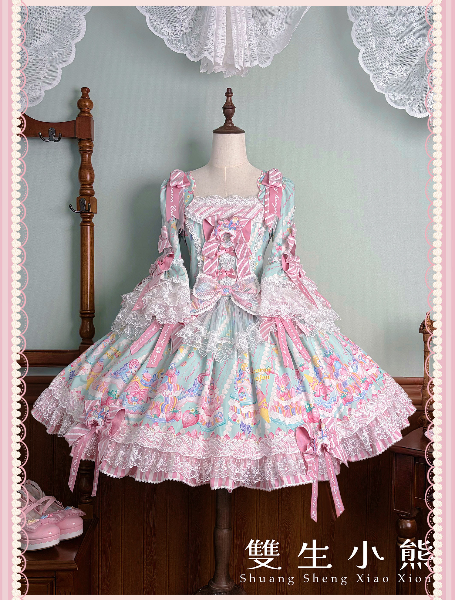 [Deposit Required] Twin Bear Original New Sweet Lolita Macaron Series Lolita Dress