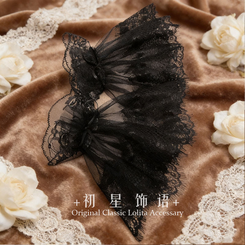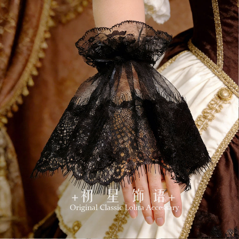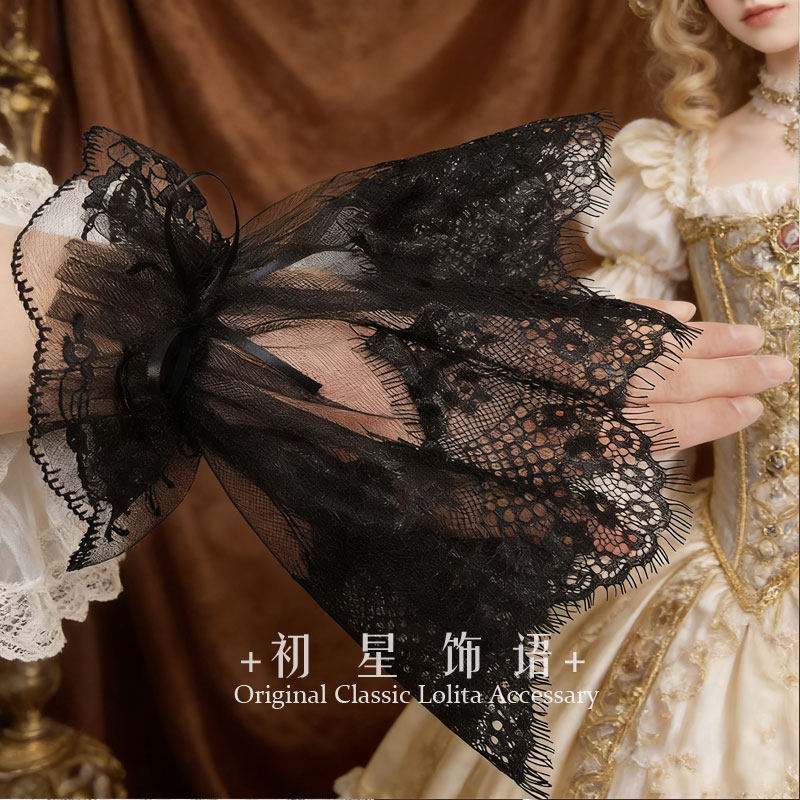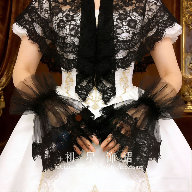 初星自制古典洛丽塔黑色蕾丝手袖lolita睫毛蕾丝袖套ins花边手套 [Original Page Link]