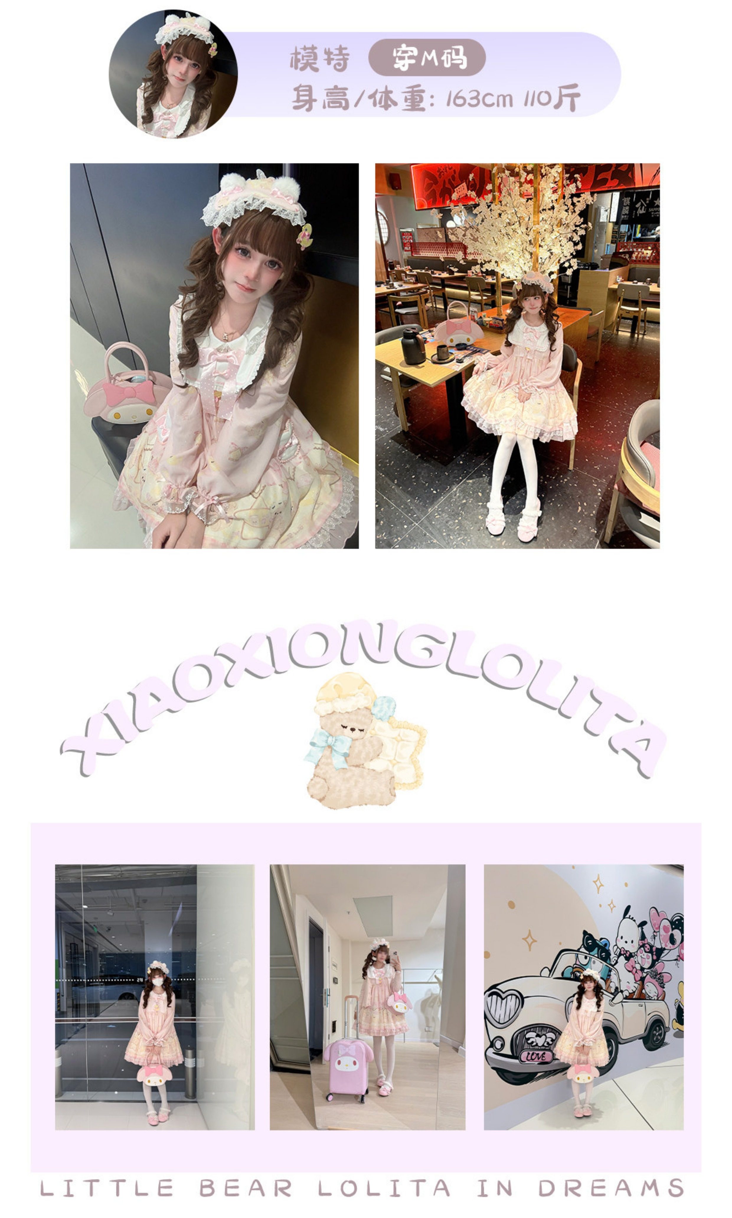 新品-梦中的小熊原创LOLITA娃娃领长袖雪纺op 小个子可爱显高穿搭 [Original Page Link]