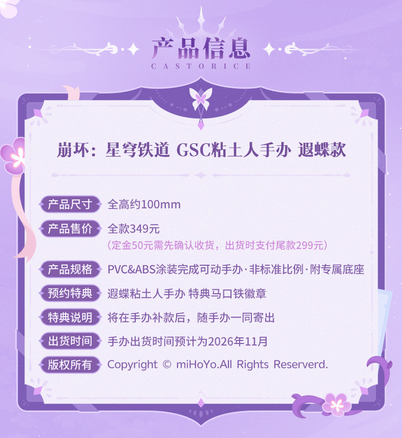 【米哈游/崩坏:星穹铁道/定金】遐蝶粘土人手办 miHoYo [Original Page Link]